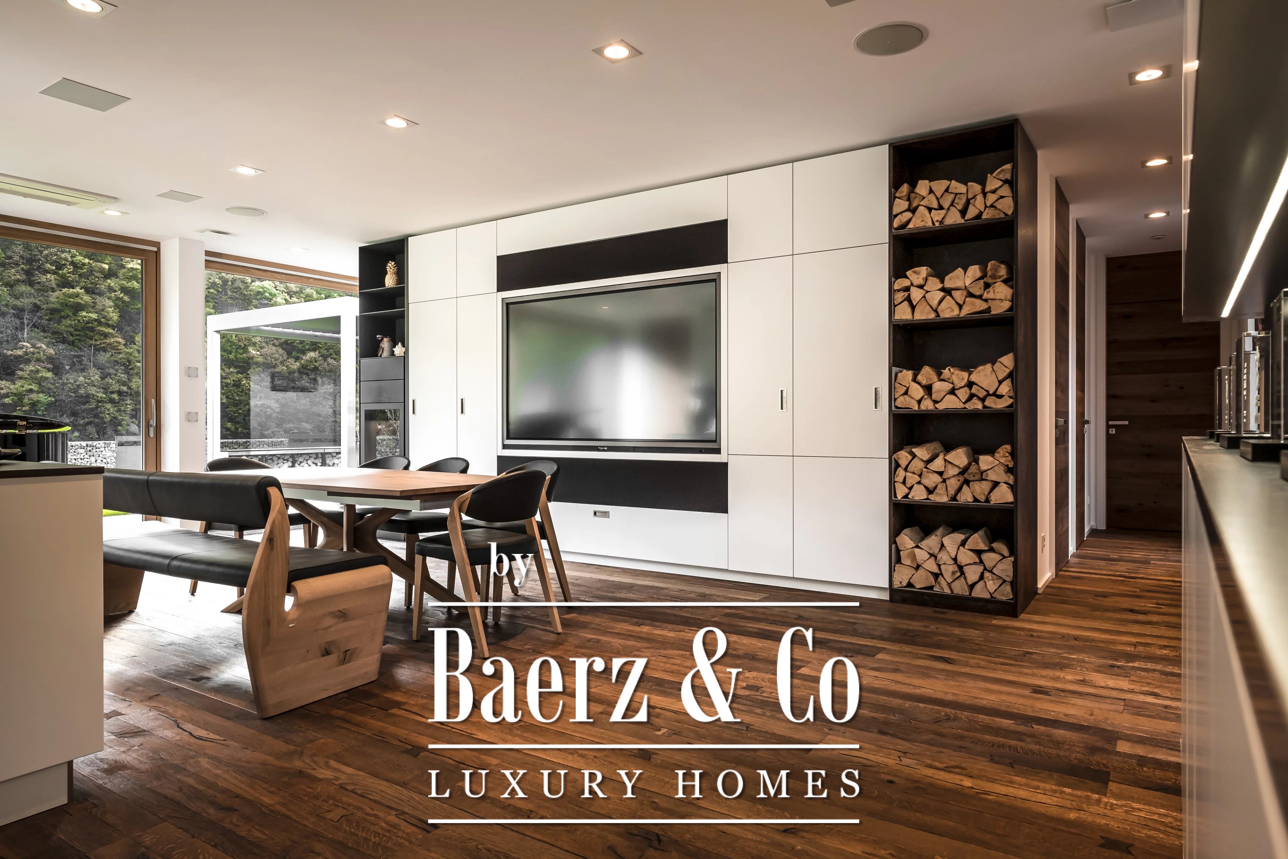 Interior appointments emphasise both comfort and precision. The residence is fully furnished and fitted with top-tier appliances including a refrigerator, dishwasher, oven, and microwave. Details such as triple glazing, a connected thermostat, electric blinds, and advanced home automation contribute to the home’s quiet efficiency. Air conditioning and dual-flow ventilation maintain a regulated climate, while the presence of fiber optic internet and a videophone system add modern convenience.