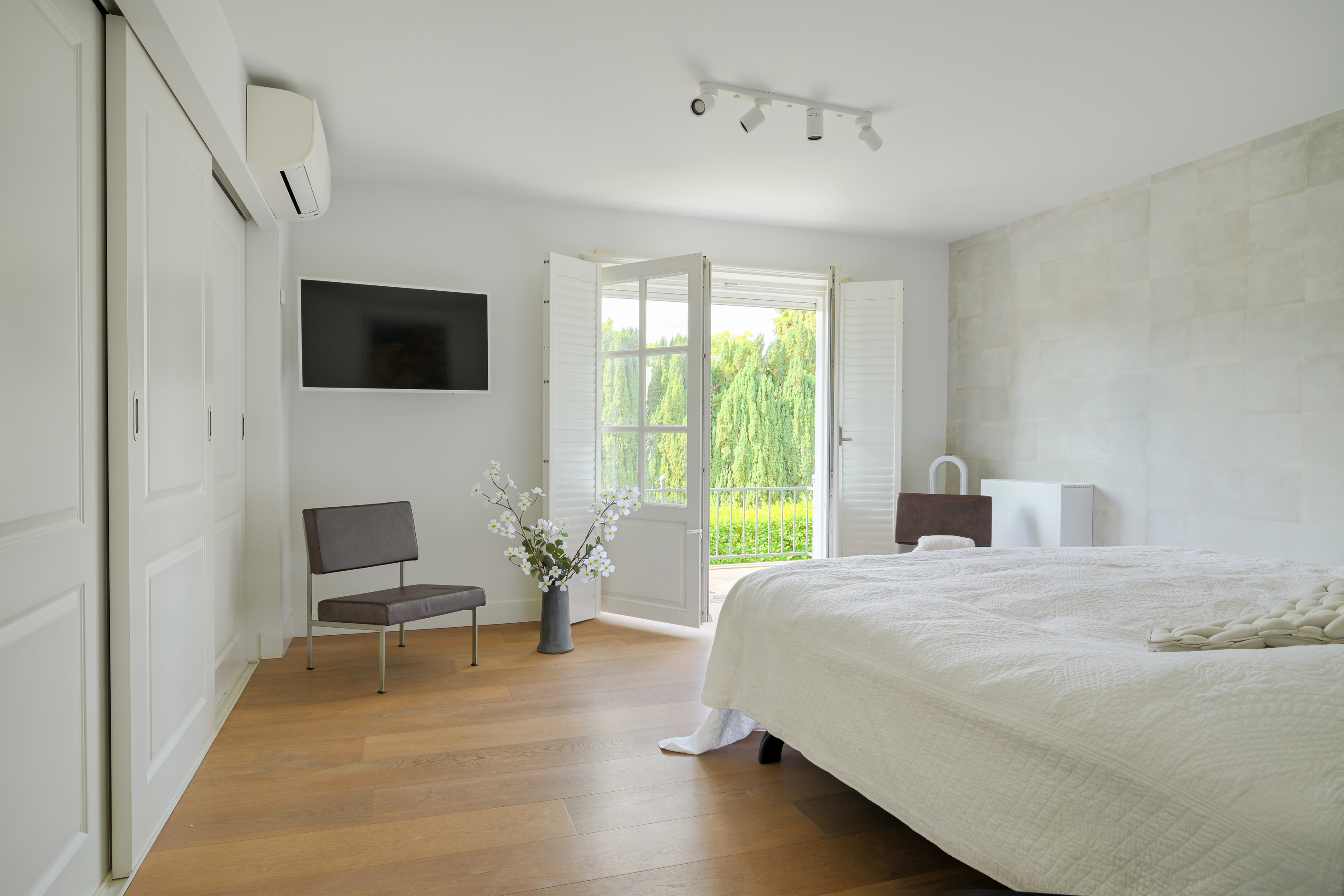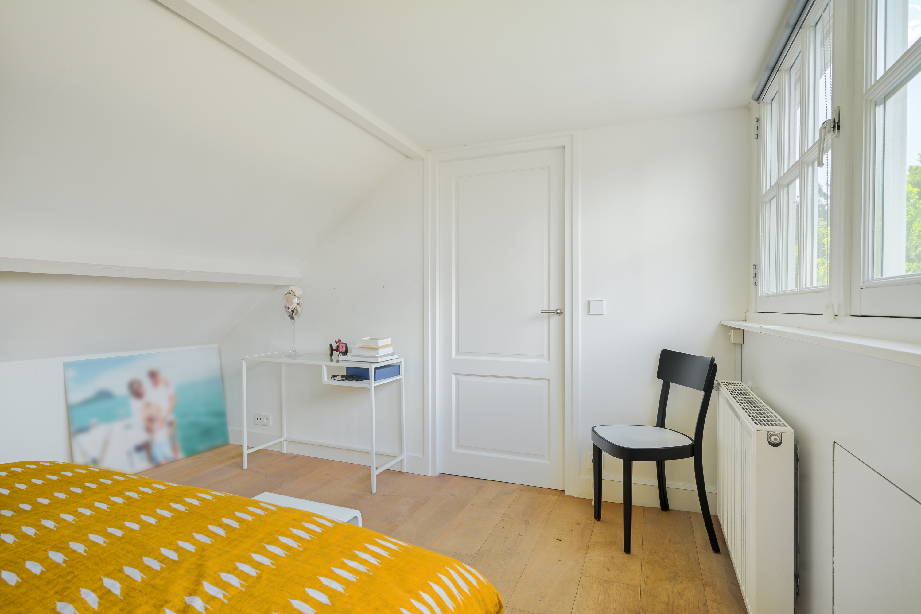 Main bedroom at the rear, offering beautiful views of the garden and adjacent park.