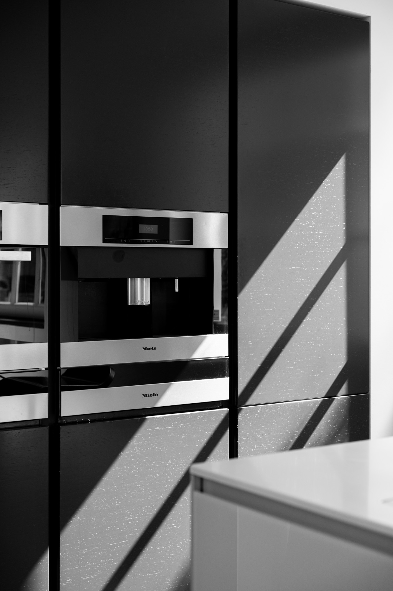 Luxury Valcucine kitchen featuring a central island with composite countertop, stainless steel sink, Quooker combi-tap, BORA induction cooktop with integrated extractor, breakfast bar, and ample cabinet space.