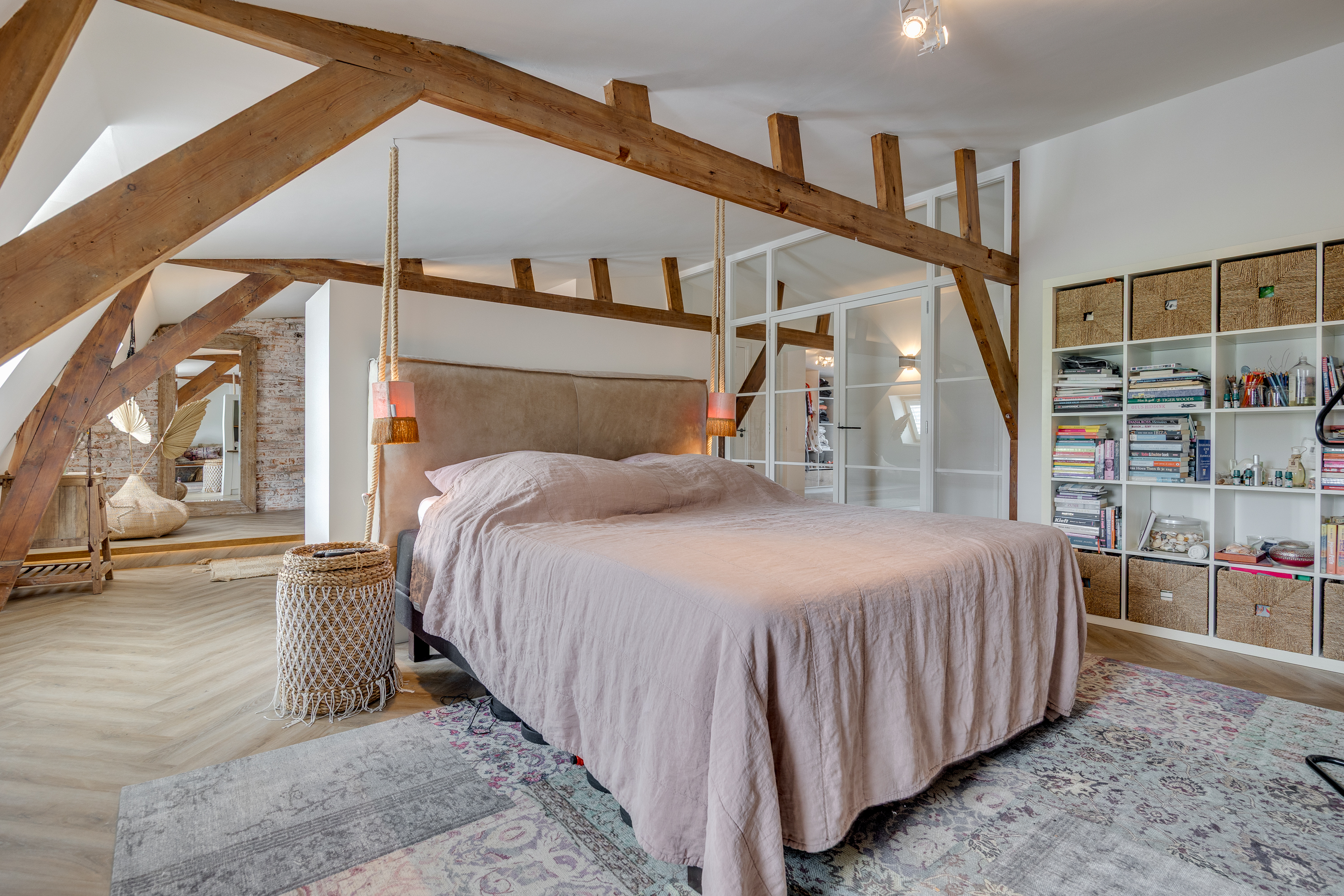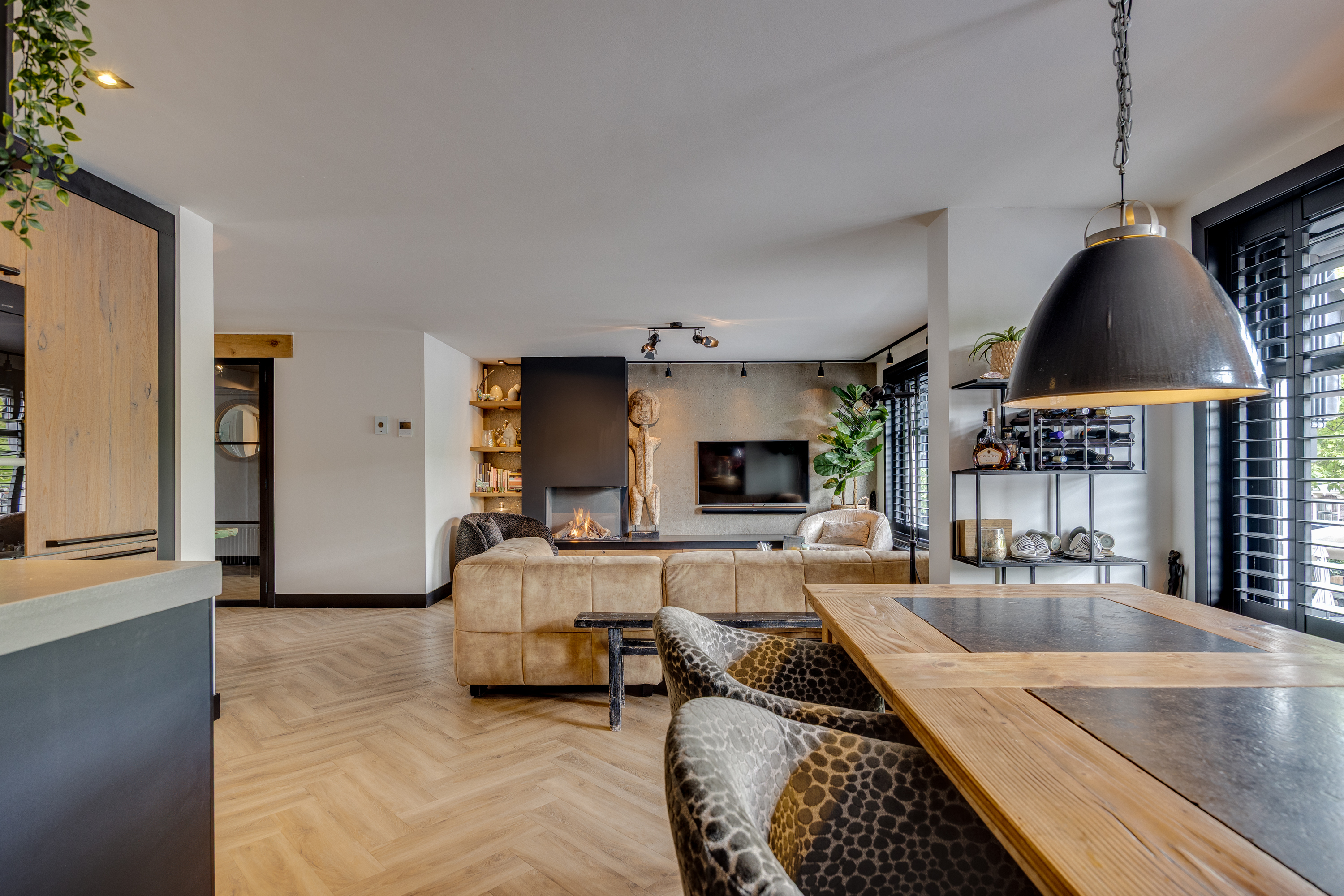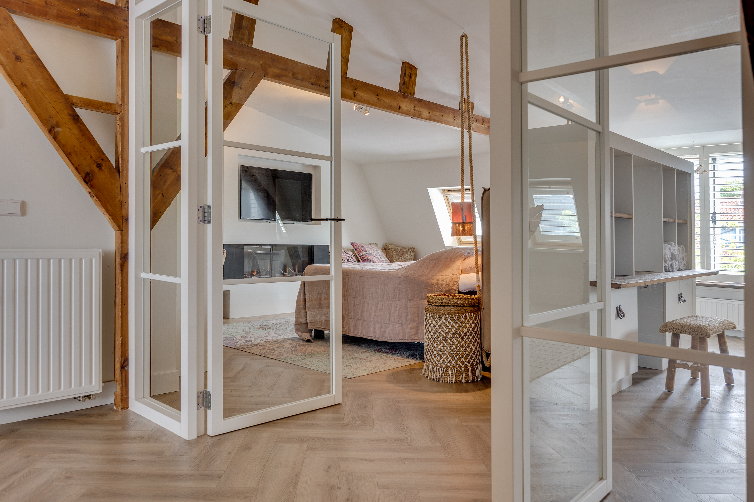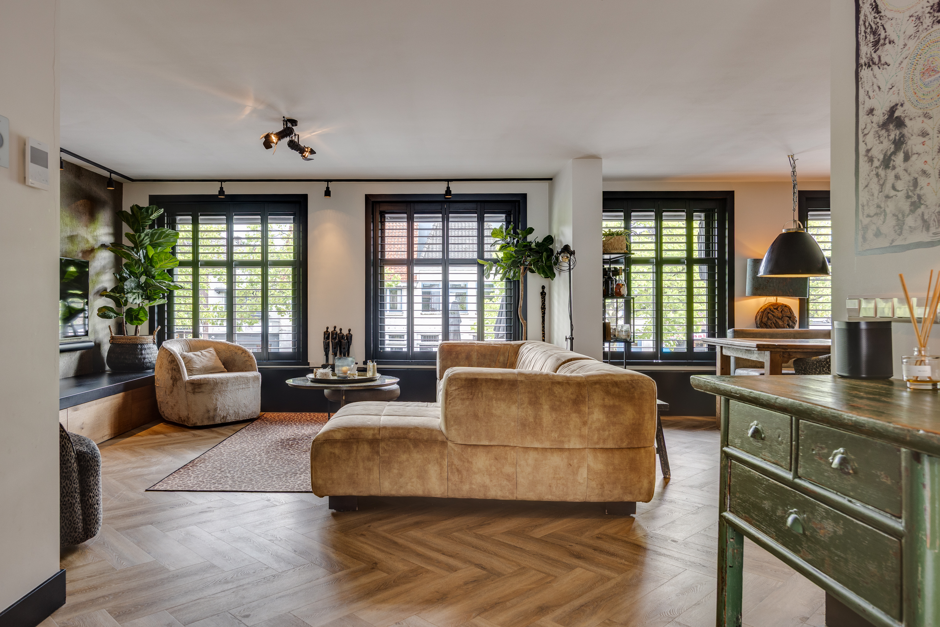 The spacious living room at the front is a real eye-catcher, with large windows that provide an abundance of natural light and offer a beautiful view of the lively Kerkbrink. The stylish PVC flooring that runs throughout the entire living area is immediately noticeable. This flooring combines a warm, soothing look with practical features such as durability and ease of maintenance. It forms the perfect basis for any interior. The modern gas fireplace creates a cozy ambiance, ideal for atmospheric evenings. In addition, the air conditioning ensures that the indoor climate remains pleasant throughout the year. Everything about this floor exudes comfort, style, and luxury.