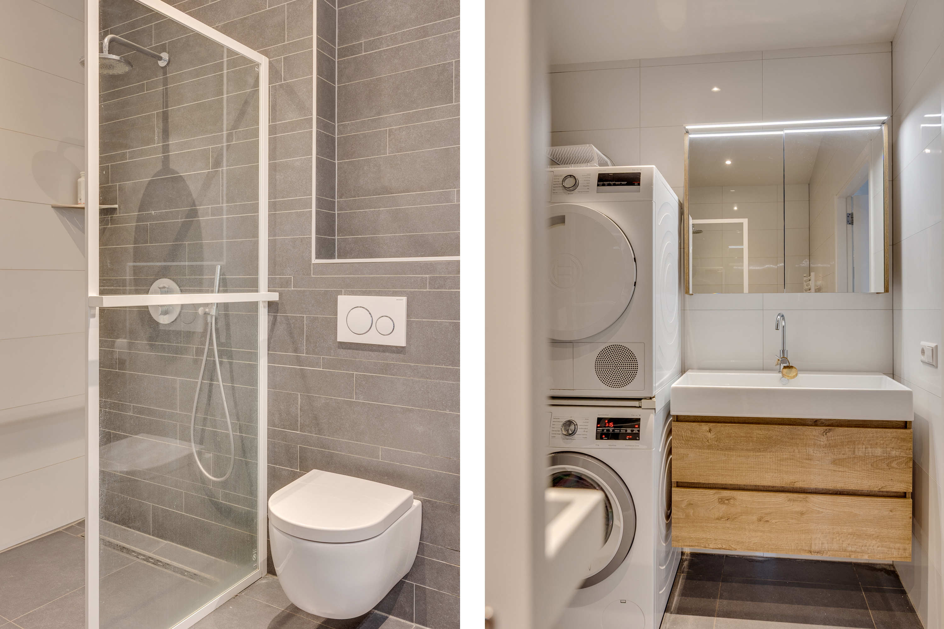 Through a hallway with built-in cupboards and space for an extra refrigerator, you step right onto the roof terrace. This spacious, sunny terrace is fully tiled and equipped with an attractive canopy, a fixed bench, and a custom-made table. Here you will experience complete peace and privacy, right in the center of town. A wonderful outdoor retreat, perfect for dinners, drinks, or a cup of coffee in the morning sun.