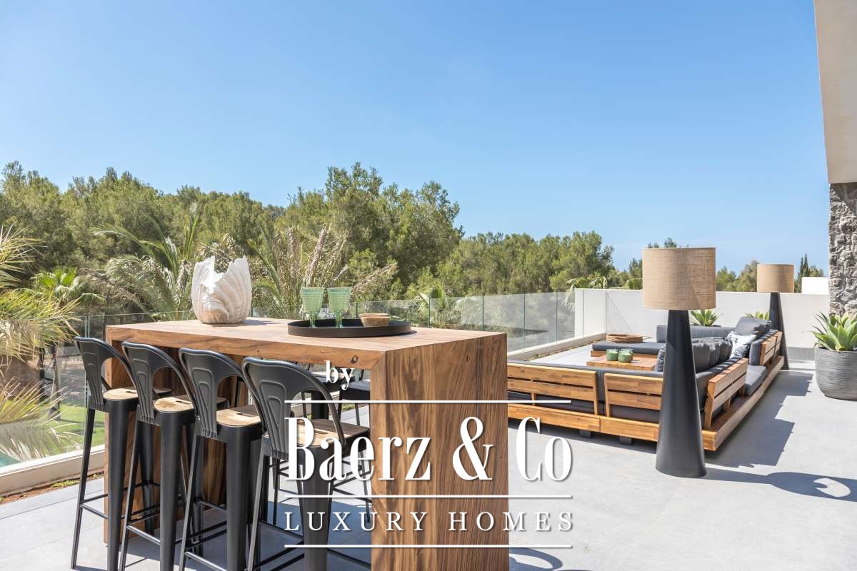 Modern villa Can Furnet invites refined living in one of Ibiza’s most coveted residential enclaves. This elevated home with 426m² of living space, thoughtfully designed by Blakstad, commands spectacular views over Dalt Vila. Set within a tranquil 1,404m² plot, it offers a rare combination of privacy and immediate access to the cultural pulse of Ibiza Town, the fashionable marina of Botafoch, and the sandy stretch of Talamanca Beach, each within minutes’ reach.