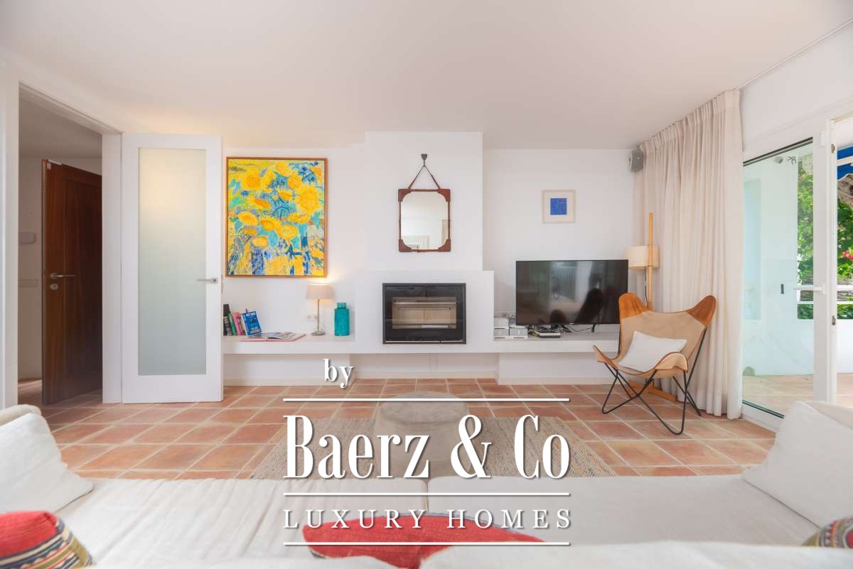 Villa Can Pep Simó Ibiza villa with sea views resides in one of Ibiza's most sought-after residential enclaves, renowned for its tranquility and sweeping perspectives over Dalt Vila, the harbor, and the Mediterranean Sea. This location, moments from Jesús and Ibiza Town, offers a rare balance: seclusion amid elegant surroundings with immediate access to vibrant local amenities, beaches, and the island's cultural pulse.