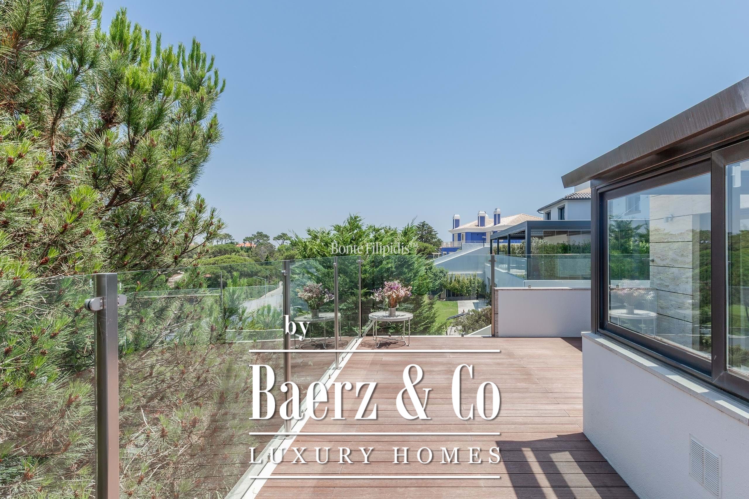 This semi-detached house Cascais e Estoril is set on a peaceful street in Monte Estoril, offering a refined four-bedroom retreat shaped by natural light and curated modern interiors. Recently renovated and fully furnished with new pieces, the home is move-in ready. Overlooking the Estoril Golf Course, the southwest-facing orientation fills the space with sun throughout the day.