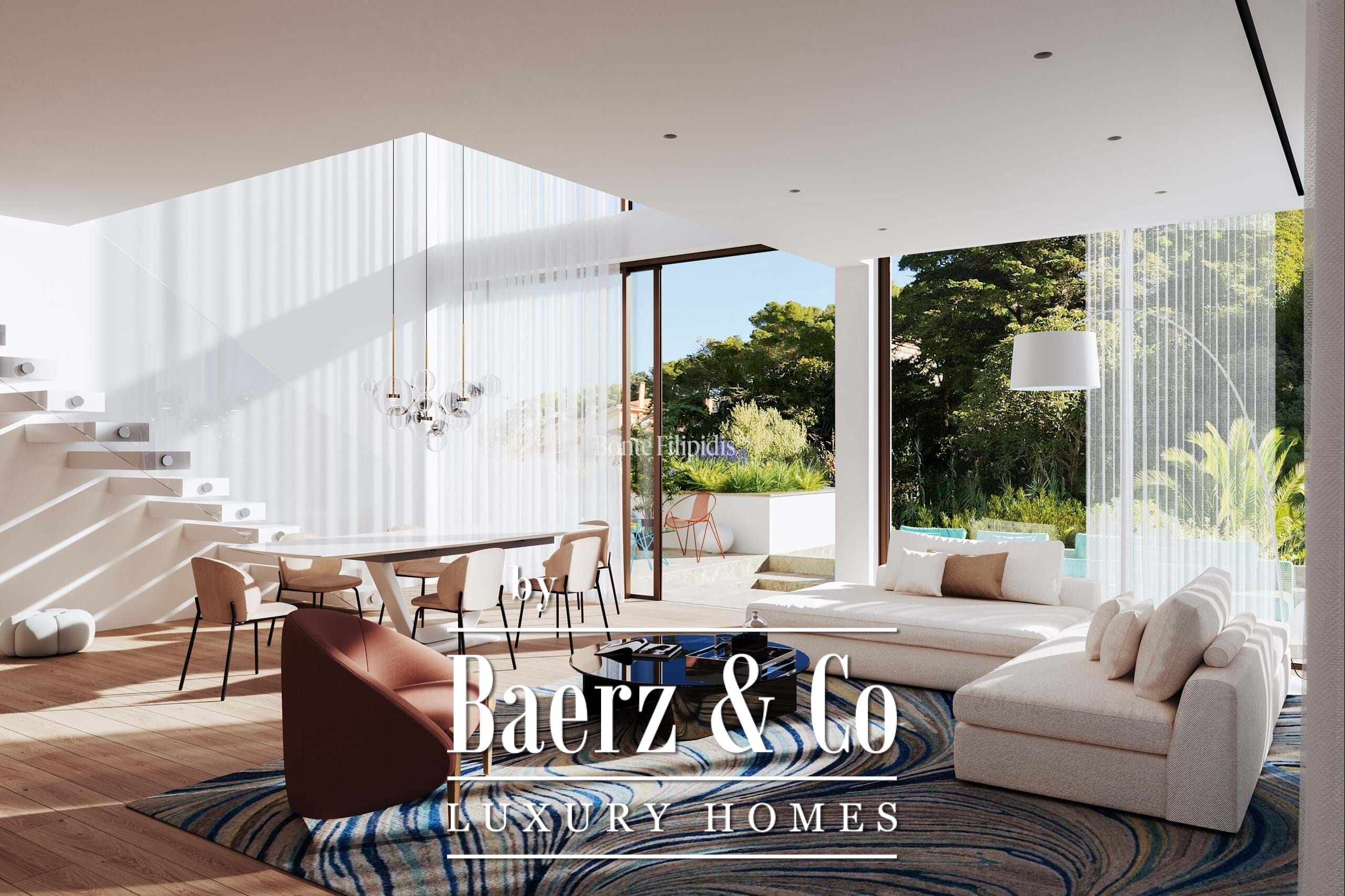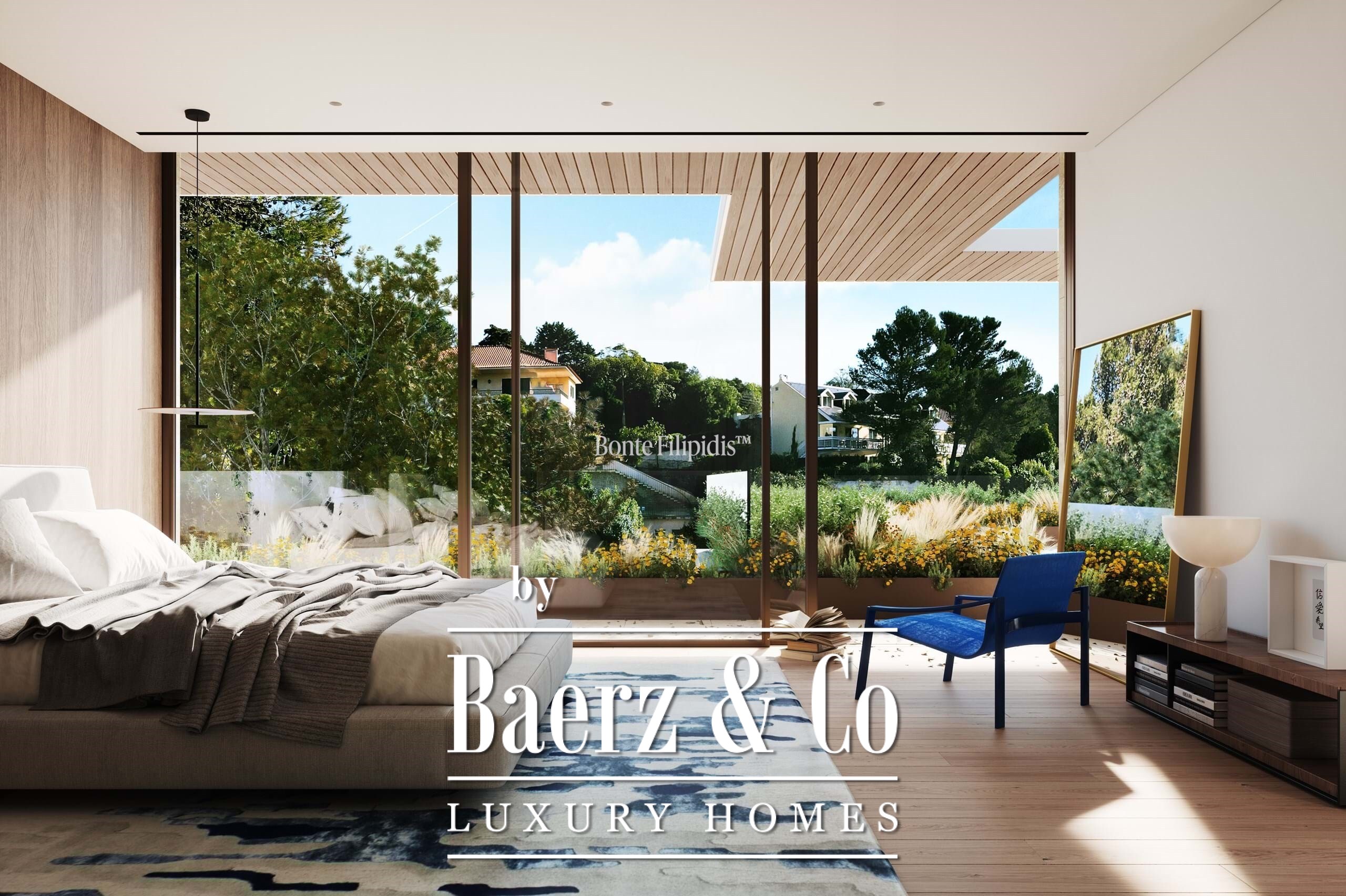 A landscaped garden and private swimming pool transition the living experience outdoors, offering a sense of calm and privacy within a secure condominium. Essential conveniences include an equipped kitchen and three interior parking spaces, solar panels for water heating, and pre-installation for electric vehicle charging. Residents benefit from concierge service, gym, and sauna, supported by a suite of security features and energy certification B. Alto Estoril places renowned international schools, restaurants, golf, beaches, and healthcare within easy reach, while Lisbon waits just 25 minutes away—a contemporary villa that balances destination living with refined ease. The rare combination of modern design, controlled light, and refined amenities makes this luxury villa for sale in Cascais e Estoril an exceptional proposition.