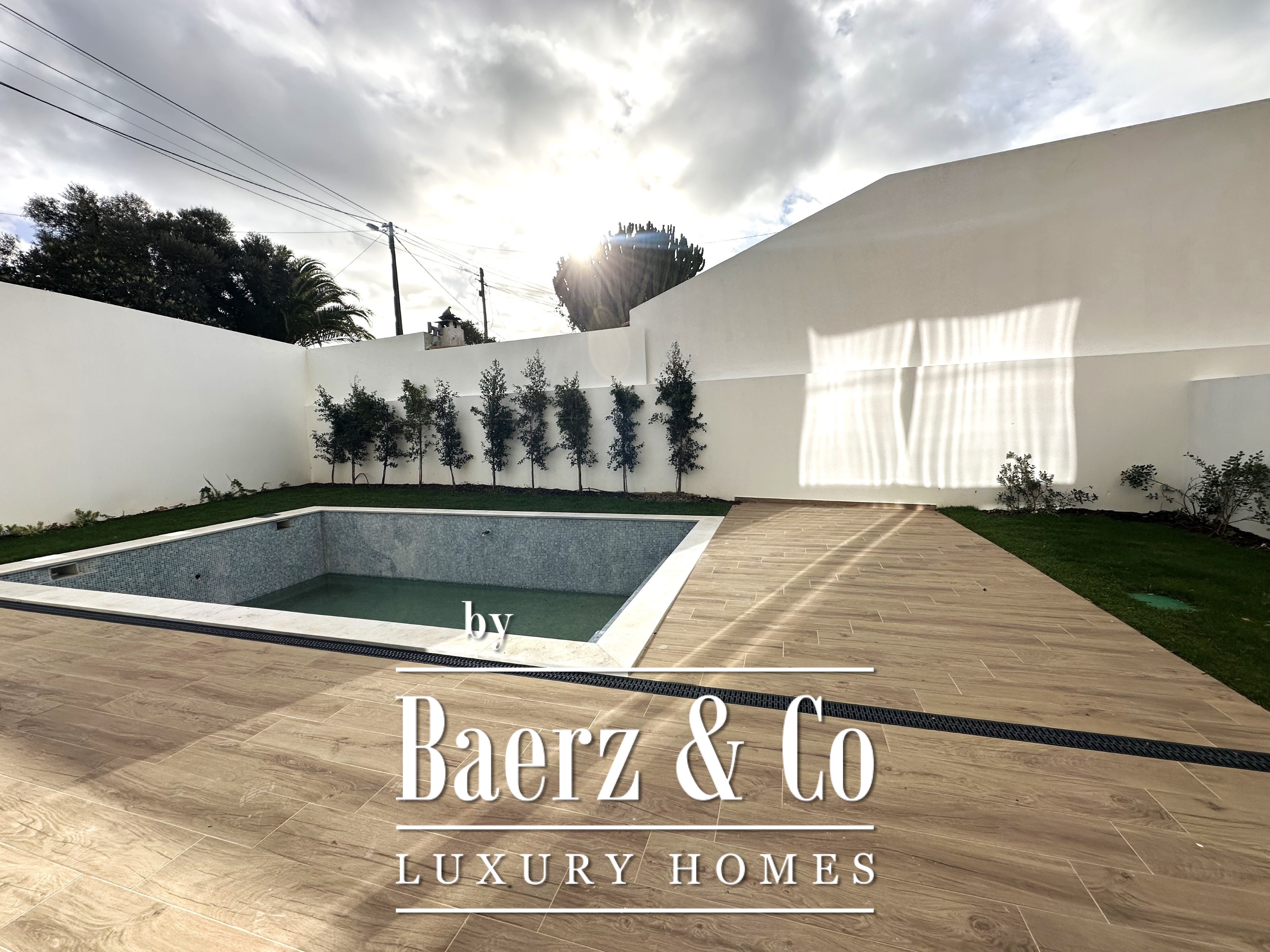 Outdoors, a 124 m² private terrace and exclusive swimming pool are embraced by thoughtfully landscaped gardens filled with fruit trees and native plantings. The 2,743 m² plot within the condominium guarantees both privacy and a sense of retreat, with garden spaces of notable scale and quality. Advanced smart home technology manages both household and garden, blending convenience with refined living. Every detail from materials to technical specifications is curated for a life of discreet elegance and functional sophistication. For those seeking sanctuary in Cascais, this villa presents a rare synthesis of nature, privacy, and modern design.