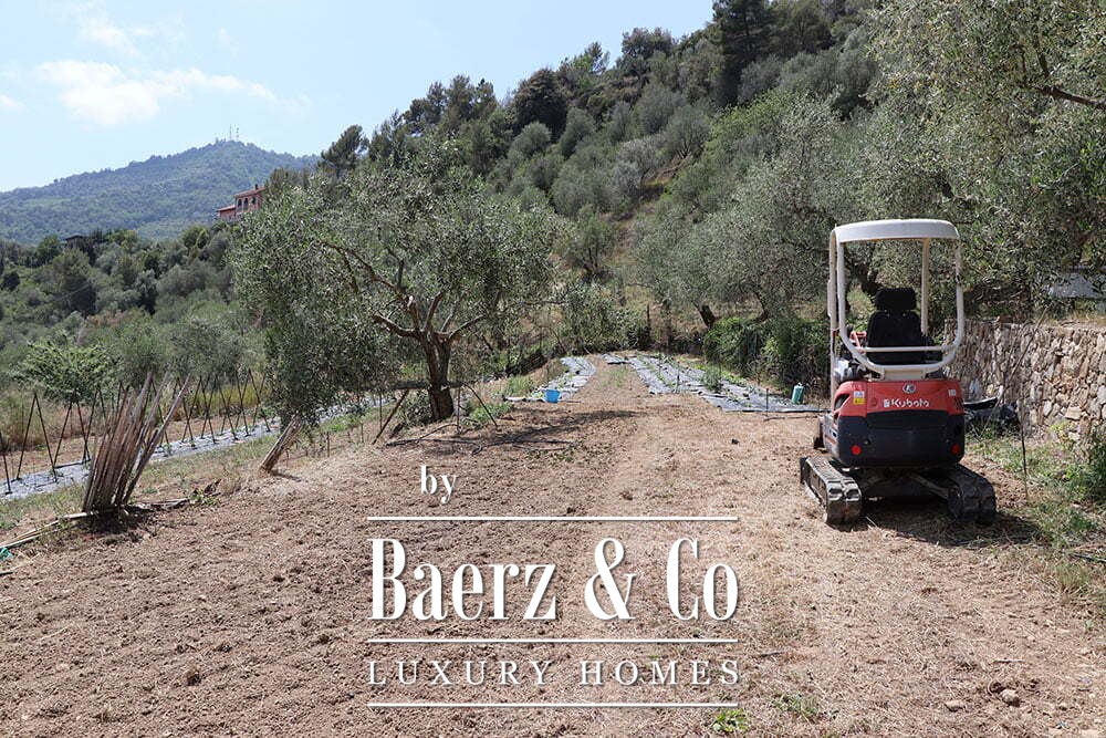 Both main buildings are equipped with solar panels, integrating eco-conscious technology into the tranquil pace of rural life. The expansive 12,000 m² garden features a bio-swimming pool designed to preserve the environment, crafted from quartz sand and resin. This country house for sale in Dolceacqua harmonizes hospitality and seclusion, offering a rare Ligurian retreat for those seeking authenticity and quiet grandeur.