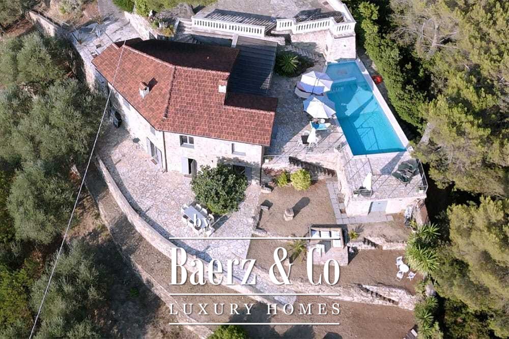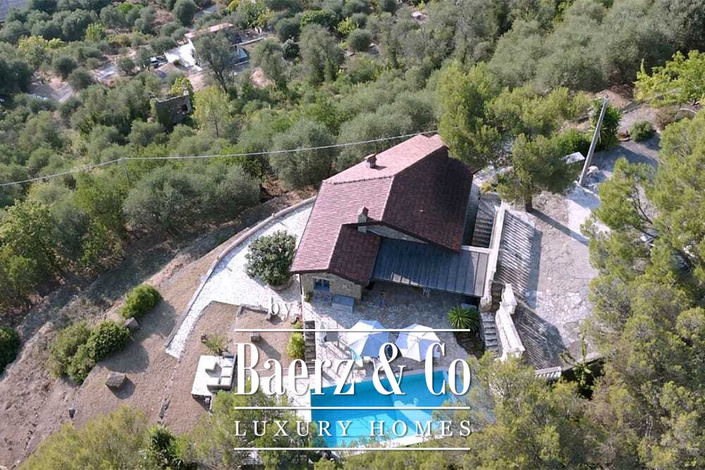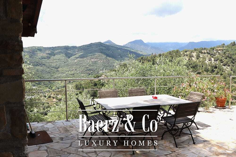 Access is through a private road with a remote-controlled gate, ensuring privacy and quiet. There is parking for several cars. The medieval village of Dolceacqua is less than ten minutes away, with the coast and towns such as Ventimiglia, San Remo, and Monte Carlo within easy reach. Direct hiking routes lead from the property into the surrounding hills and picturesque villages, while beaches and cultural events remain close at hand. This luxury villa for sale in Dolceacqua offers peace, provenance, and a distinct sense of place, allowing owners to embrace both seclusion and the richness of Ligurian life.