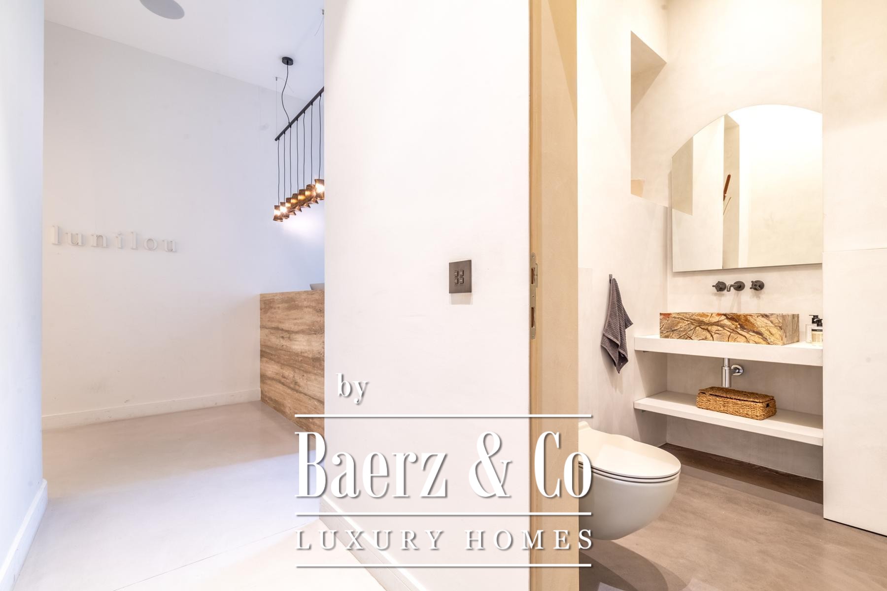 The interiors have undergone a complete transformation, introducing reinforced concrete slabs, seamless epoxy floors, advanced carpentry, underfloor heating, and comprehensive air conditioning. Natural light flows throughout both units, enhanced by high ceilings and a representative entrance, amplifying a sense of generosity and calm. Currently purposed for sophisticated business activity, the space readily lends itself to use as offices, consulting rooms, or medical suites. Should one wish, the property can easily be reconfigured into a substantial luxury residential apartment, offering four bedrooms and four bathrooms.