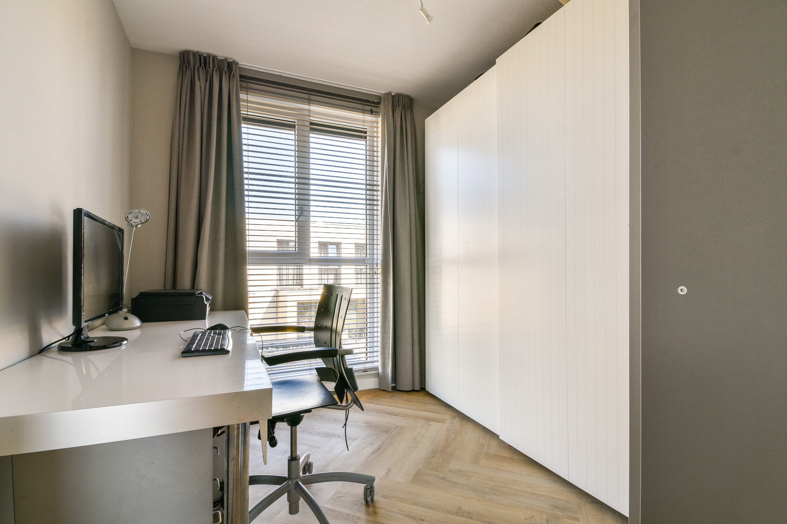Located on the first floor for optimal panoramic views of the river and the future Wervenpark. Large windows provide abundant natural light. Finished with herringbone PVC flooring.