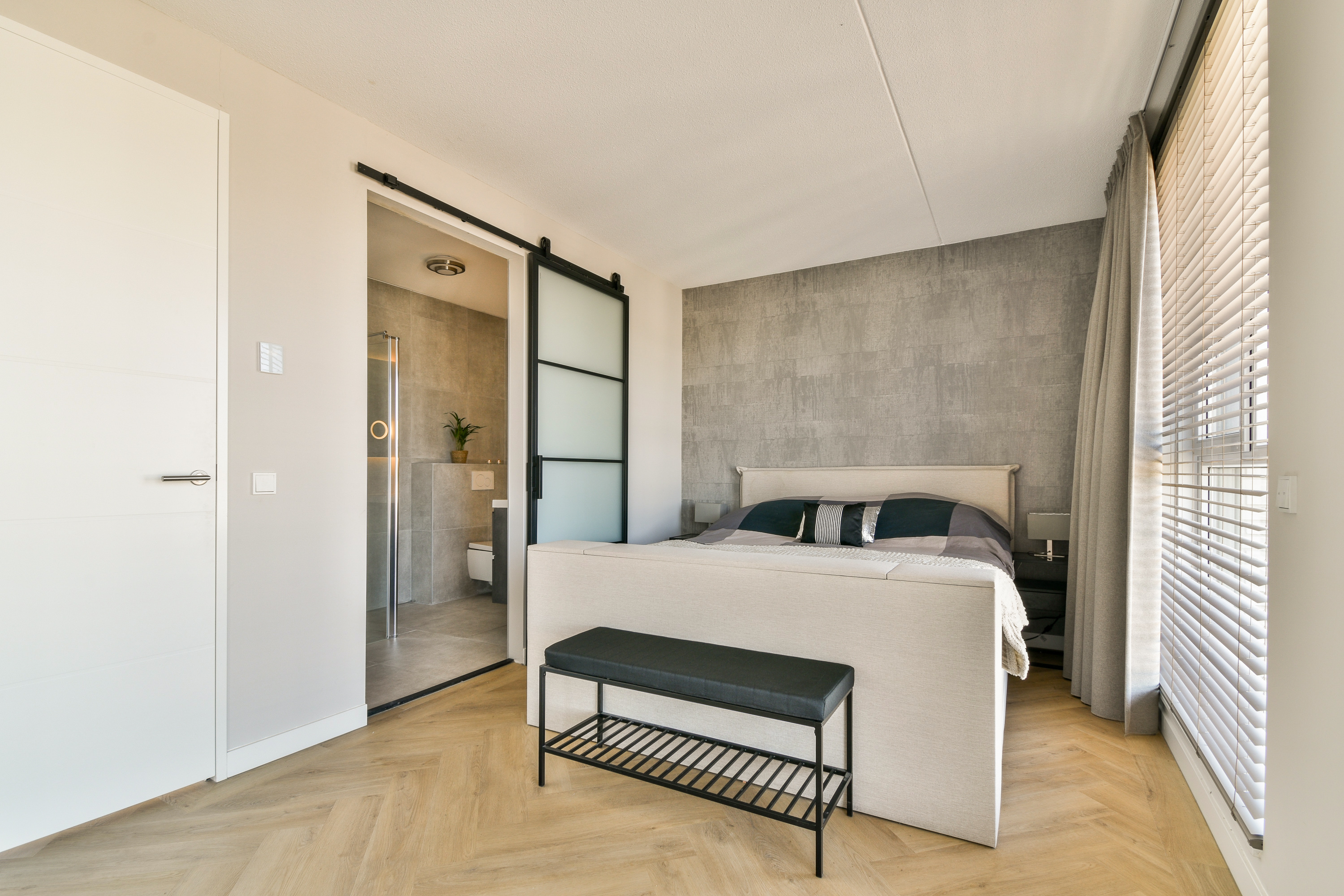 Third floor: master bedroom with en-suite bathroom and access to a spacious rooftop terrace with stunning views over the Stadswerven area.
