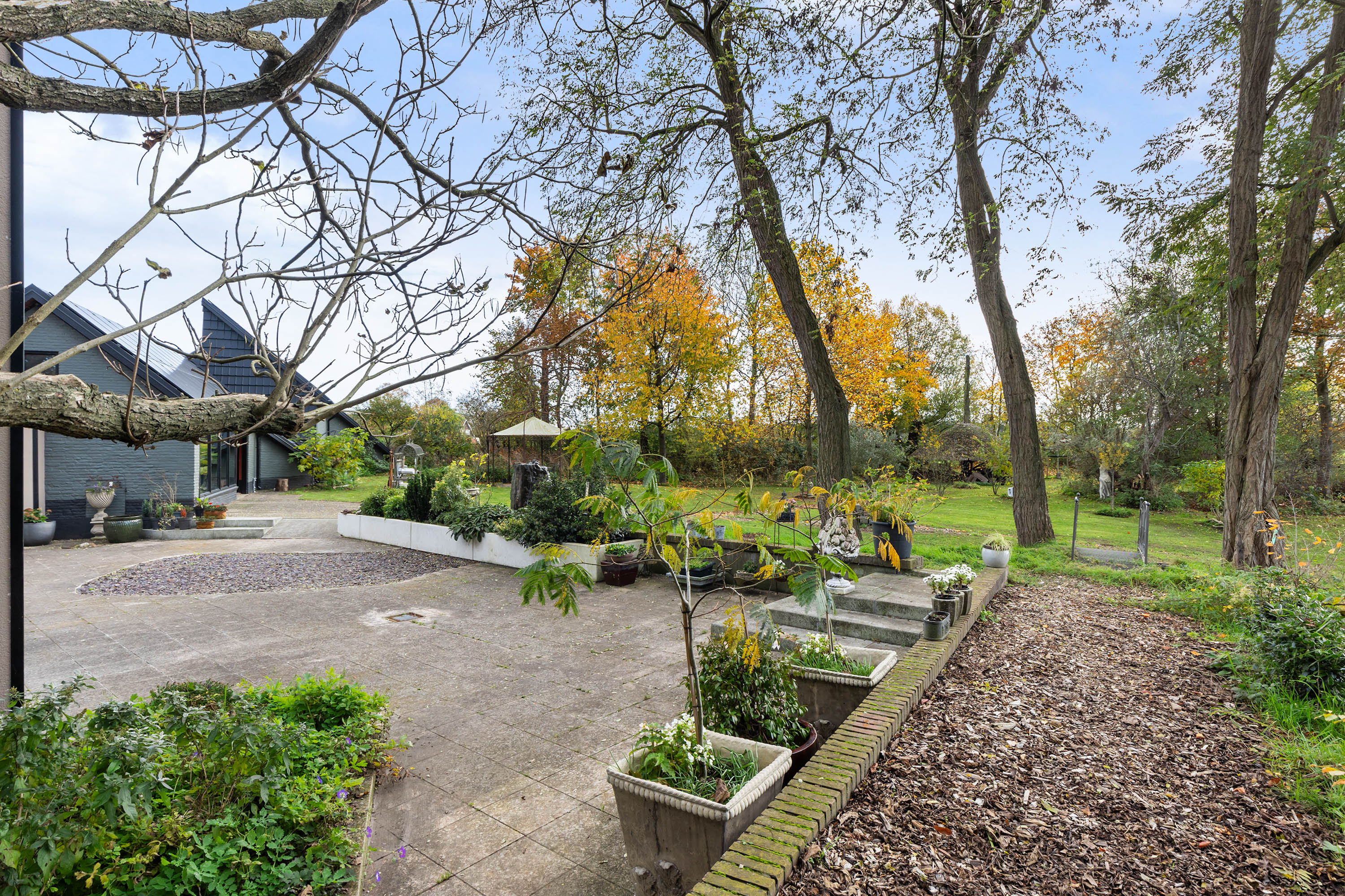 The property is located on a quiet lane with only local traffic. Thanks to the natural height difference with the A1 and sound-reducing asphalt, the garden remains remarkably peaceful. The village of Gorssel is a five-minute drive away, while Deventer and Zutphen can be reached within fifteen minutes. The Randstad is accessible in under an hour, and public transport connections are excellent.