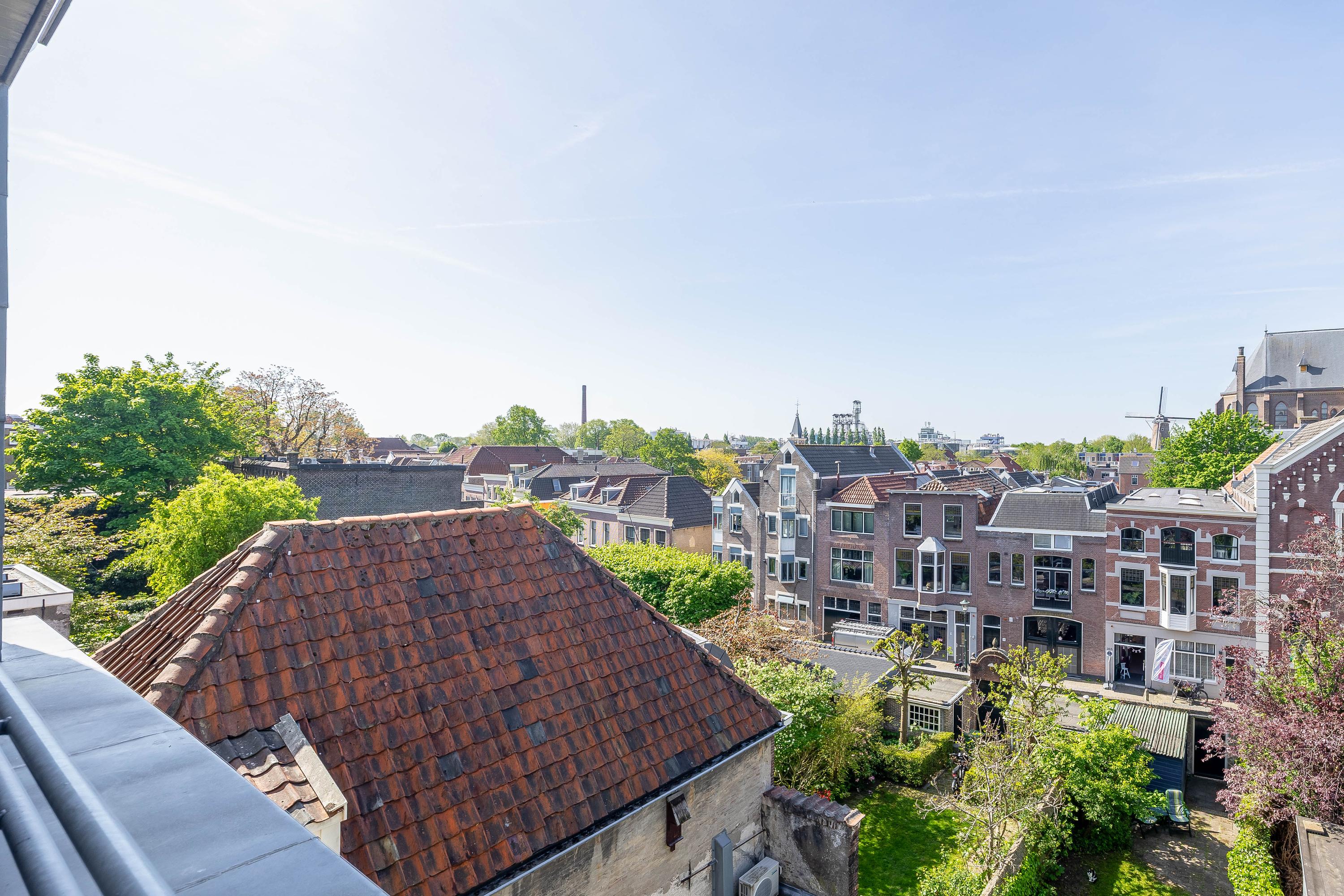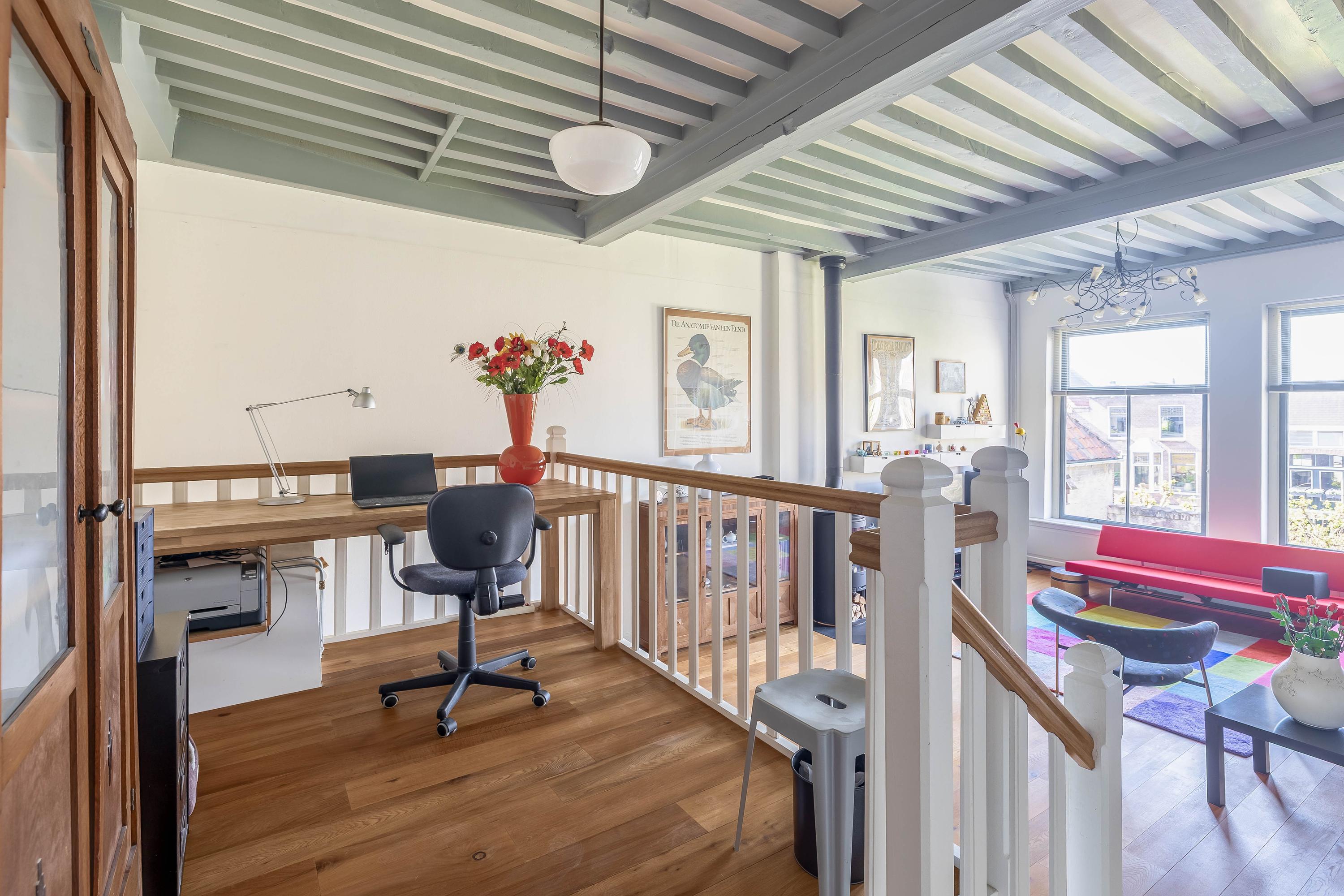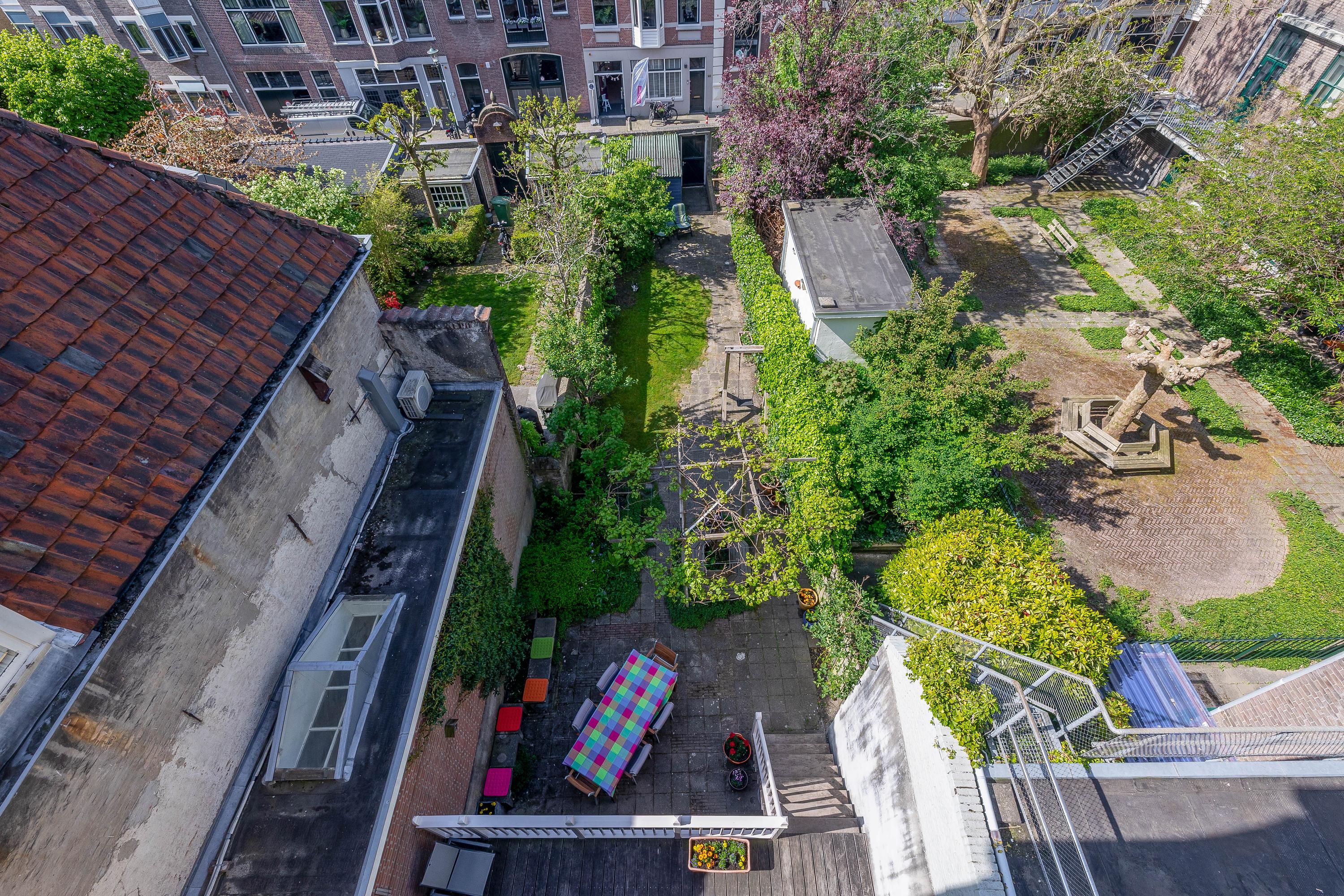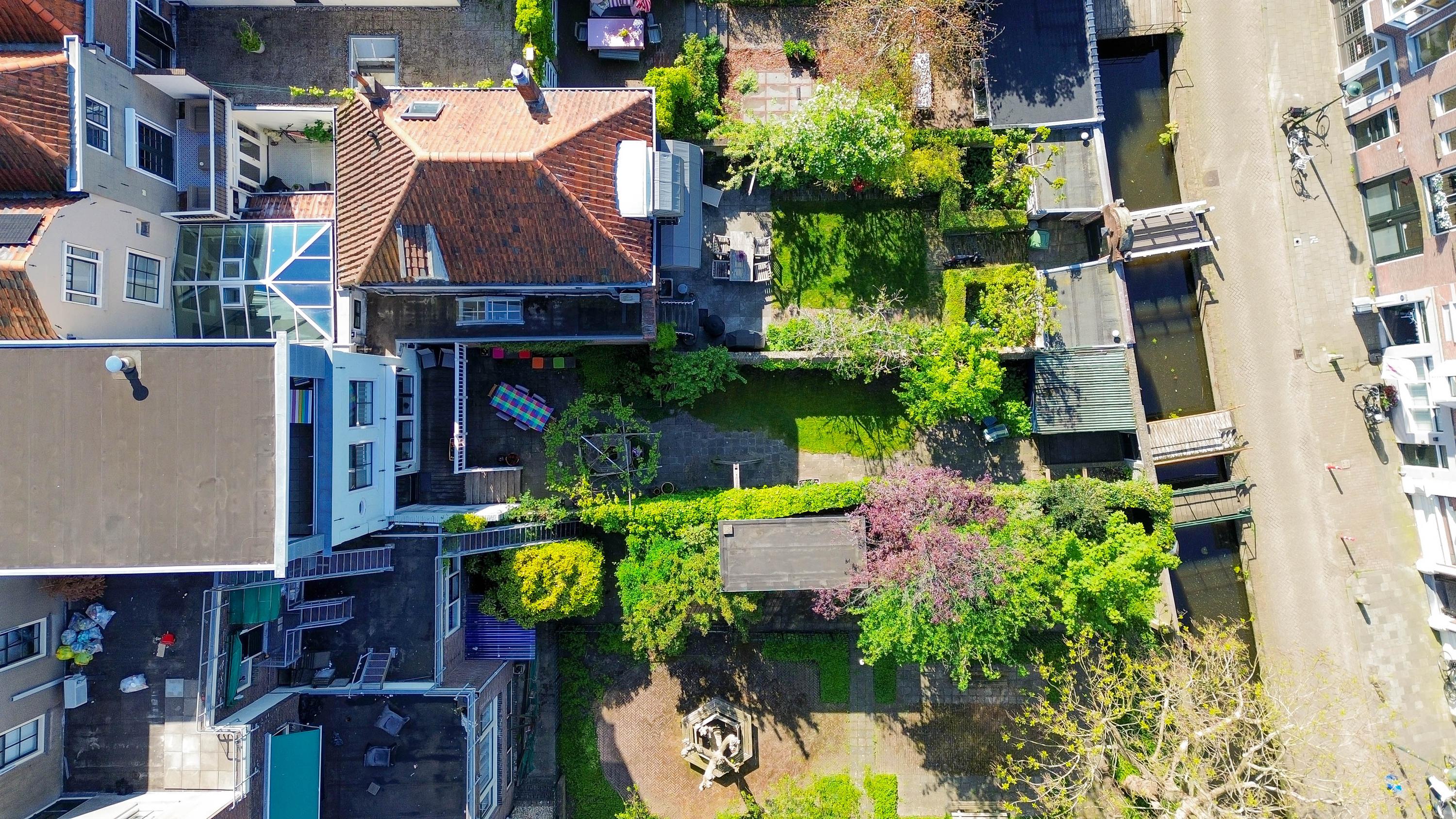 The sunny and charming garden is over 25 meters deep and includes multiple terraces, access to the cellar, a shed at the rear of the garden, a wooden footbridge at the rear (accessible via Peperstraat), and a restored city wall. From both the garden and the house, you have a fantastic view of monumental Gouda.