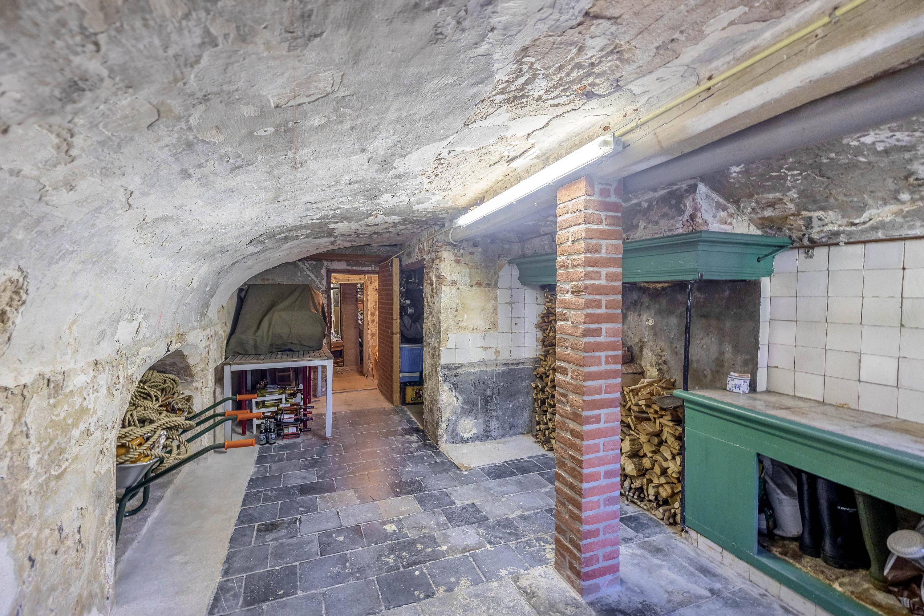 Cellar: Masonry barrel vault with authentic kitchen including stone sink, original water pump, and abundant storage space