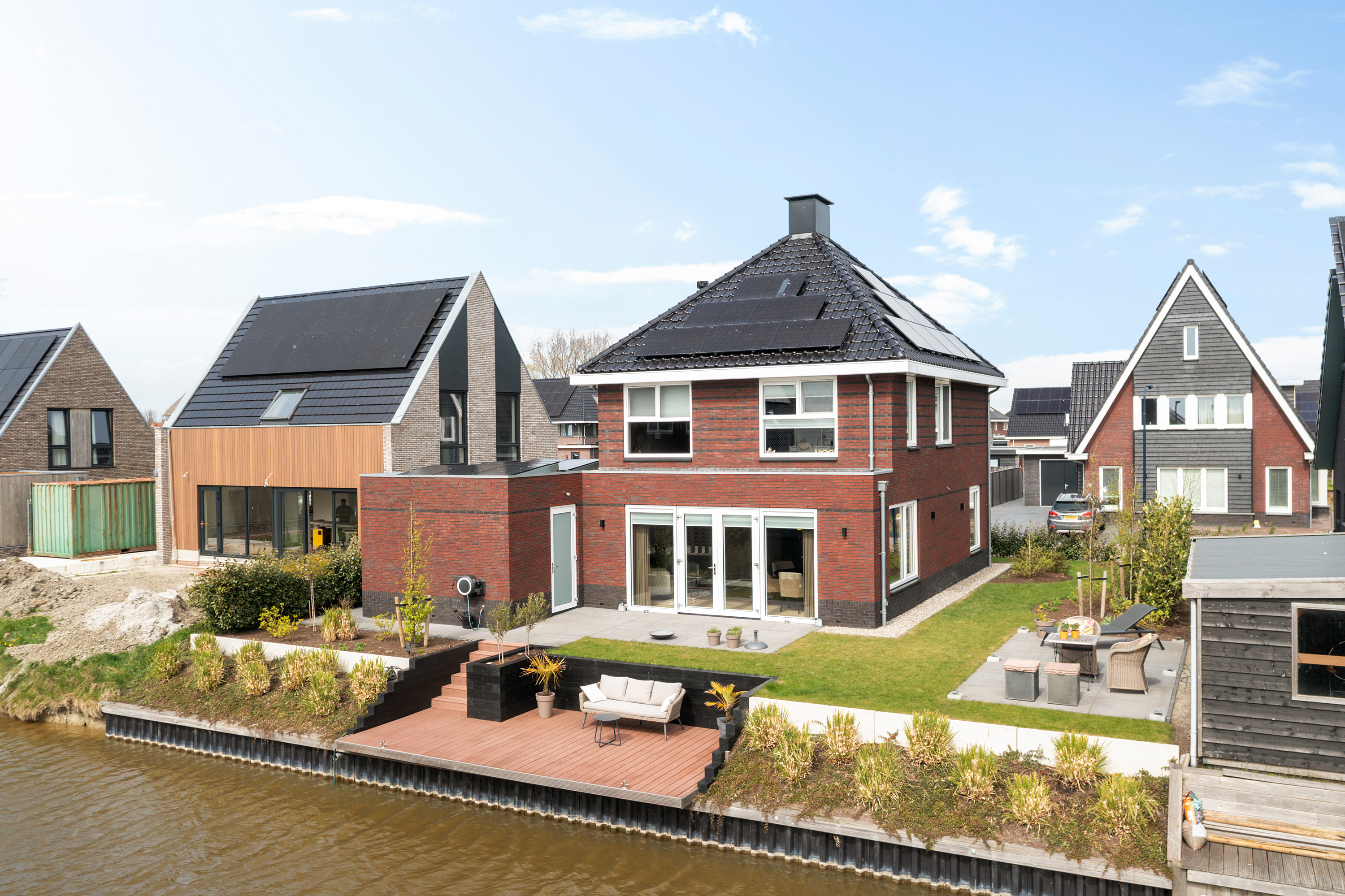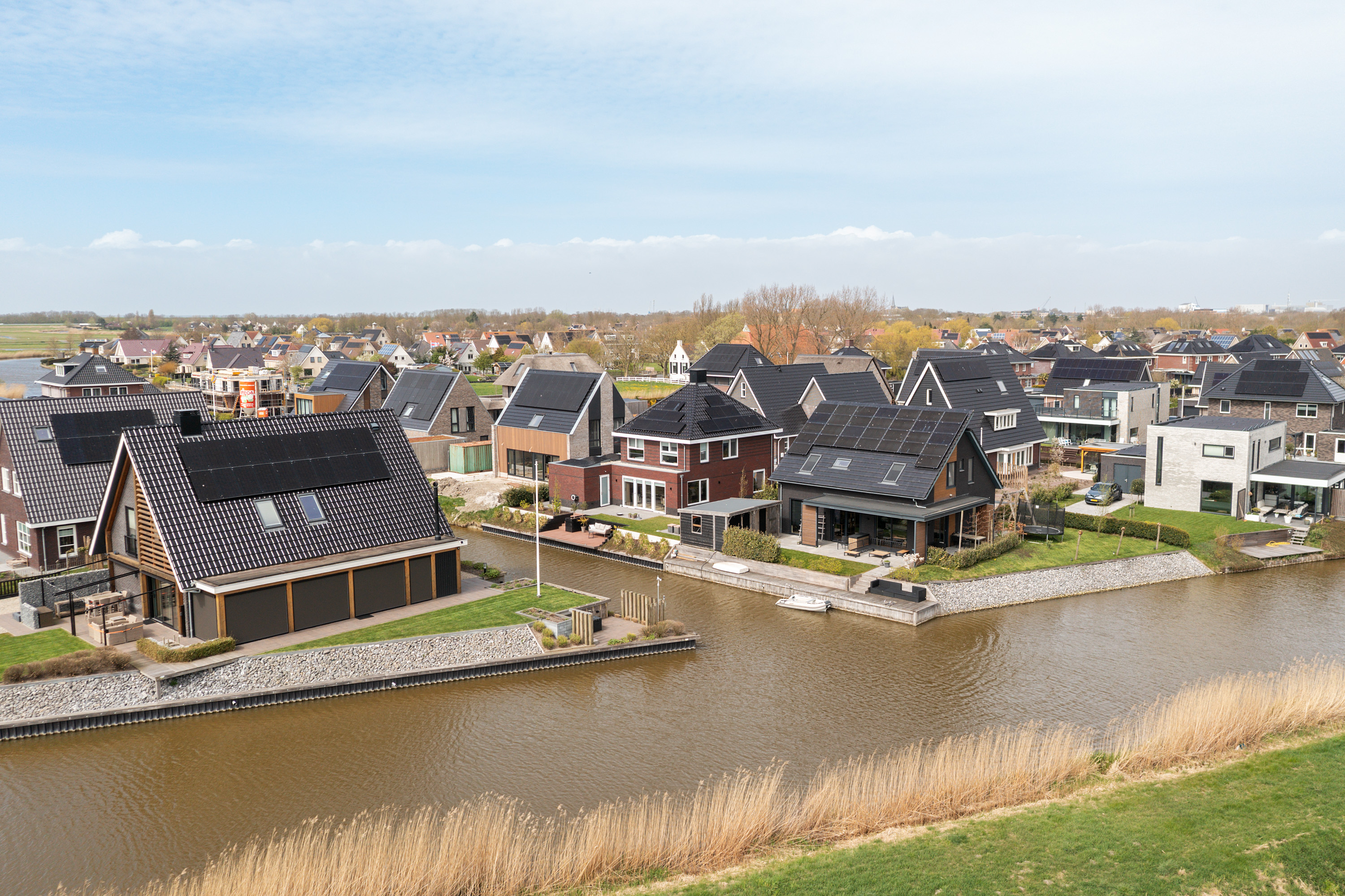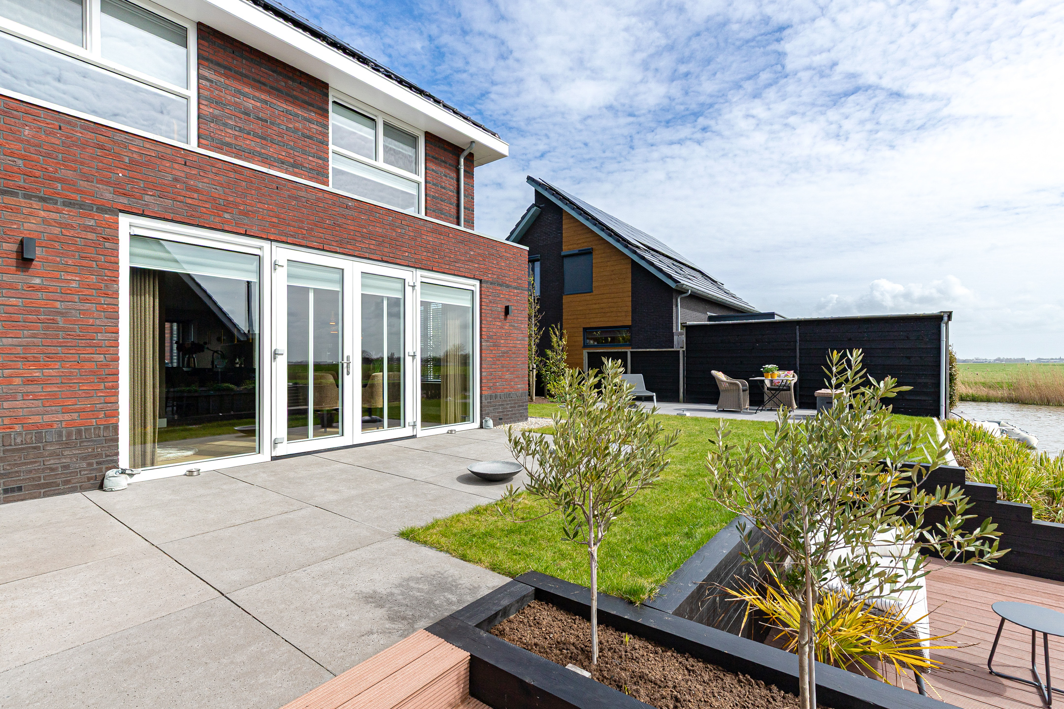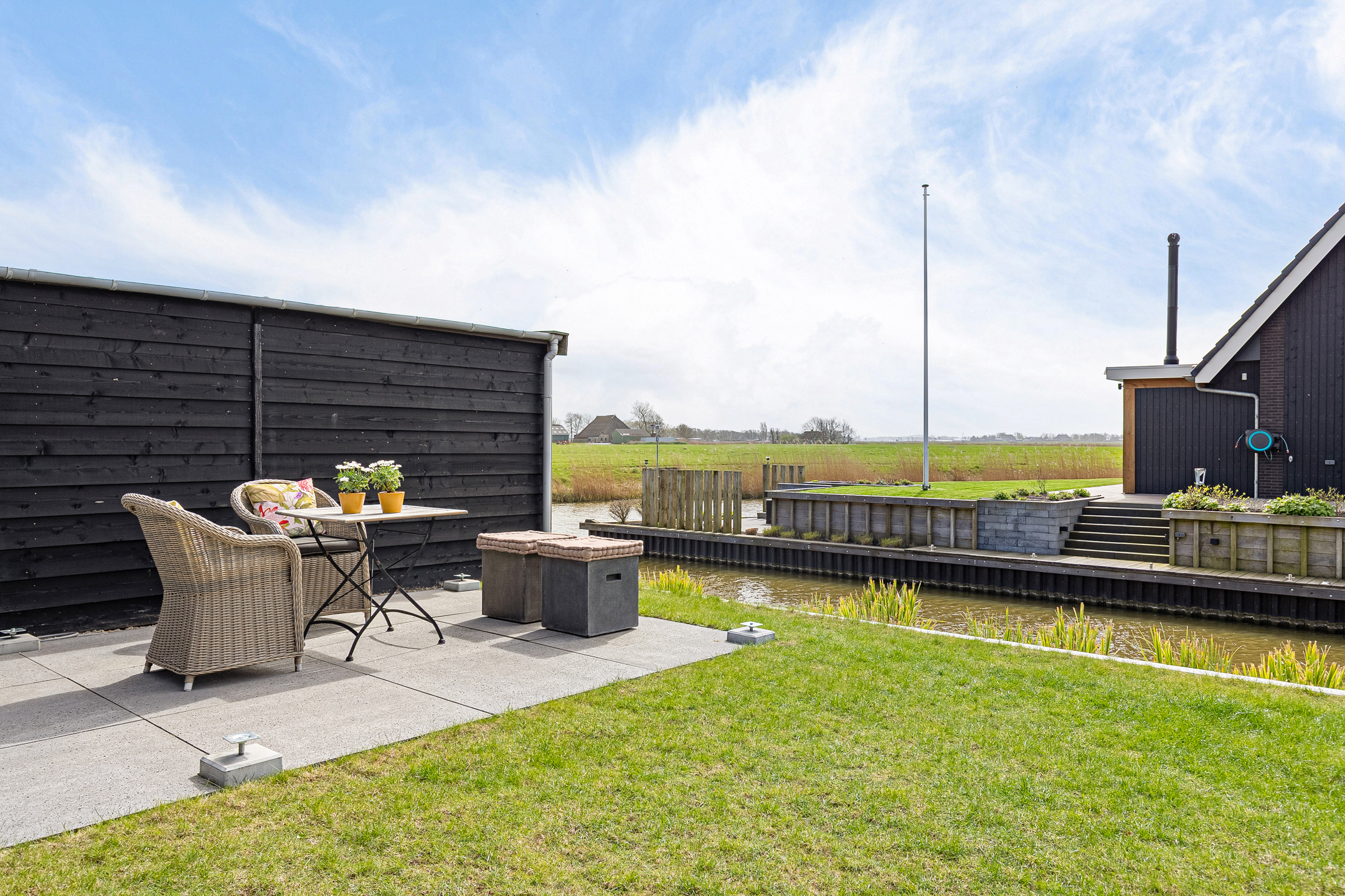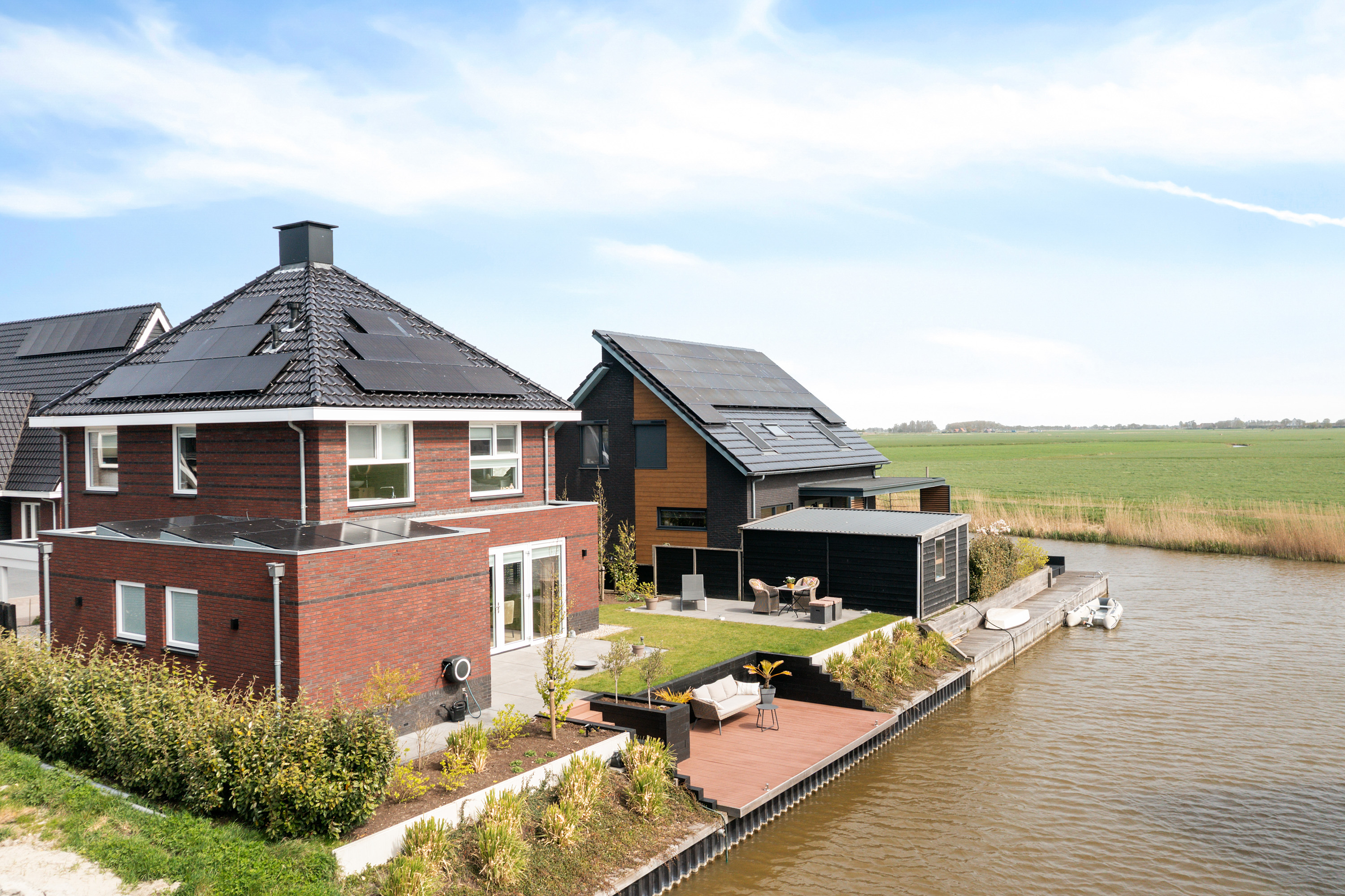 The architect-designed waterfront garden has been beautifully landscaped and features several terraces, stylish planting, and a generous composite mooring jetty. From your private water access, you can directly enter a branch of the famous Eleven Cities Route (Elfstedentocht).