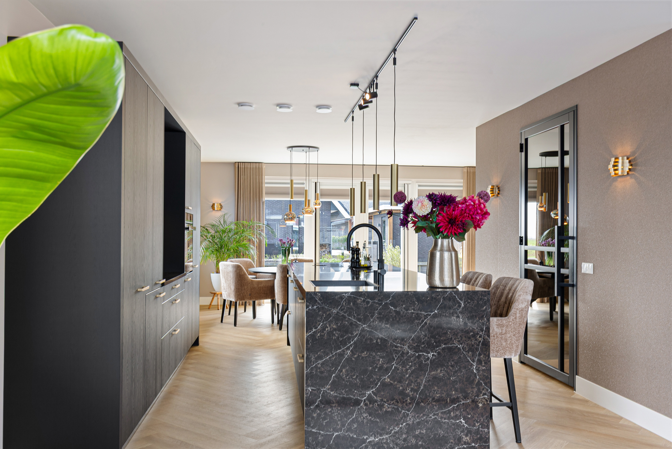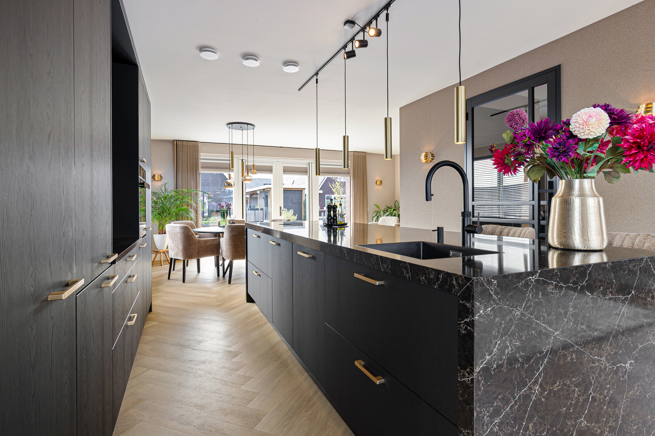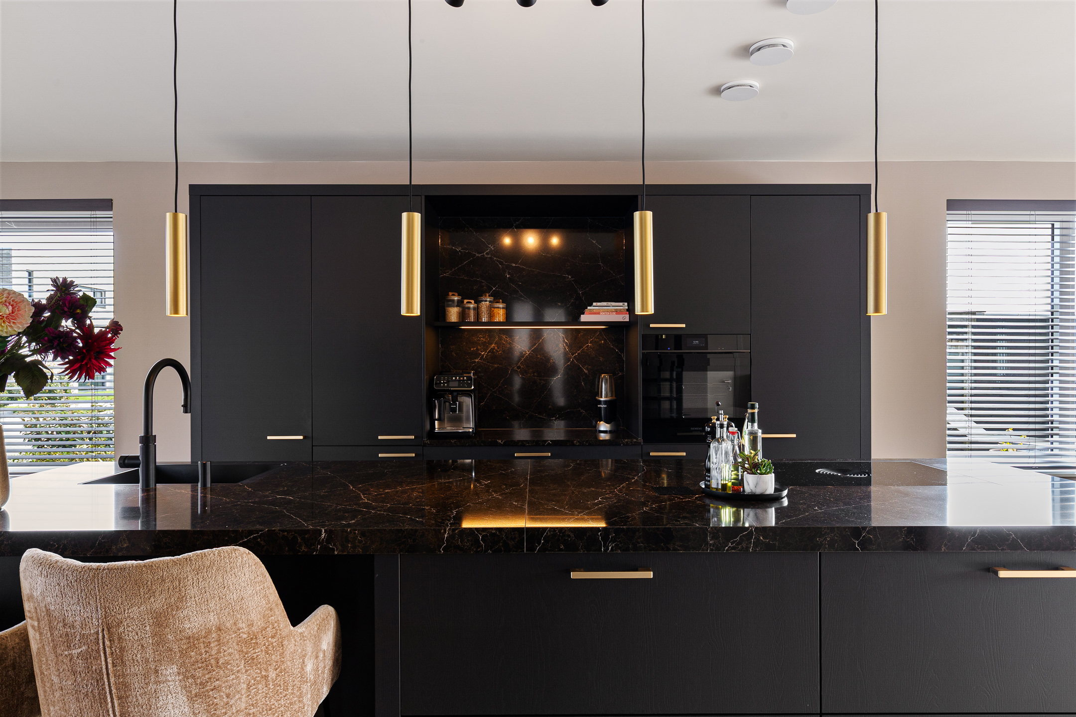 The luxury kitchen forms the heart of the home and features a spacious cooking and washing island along with a wall unit. It is equipped with high-quality built-in appliances, including: Siemens refrigerator, Siemens freezer, Siemens oven, Miele dishwasher, Bora induction hob with integrated extraction, Quooker boiling-water tap. All appliances remain under manufacturer’s warranty.