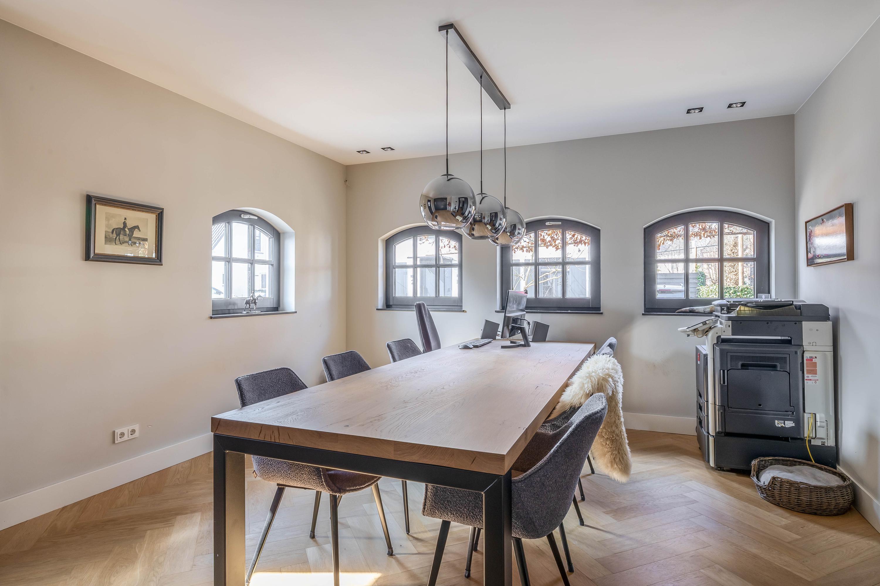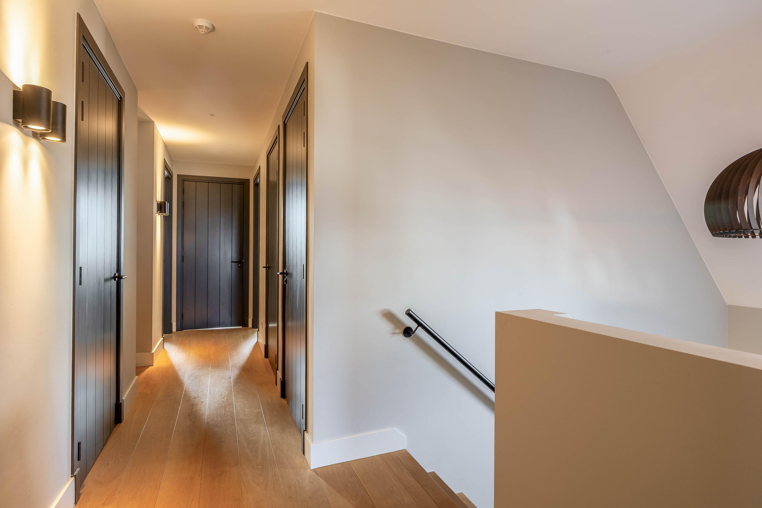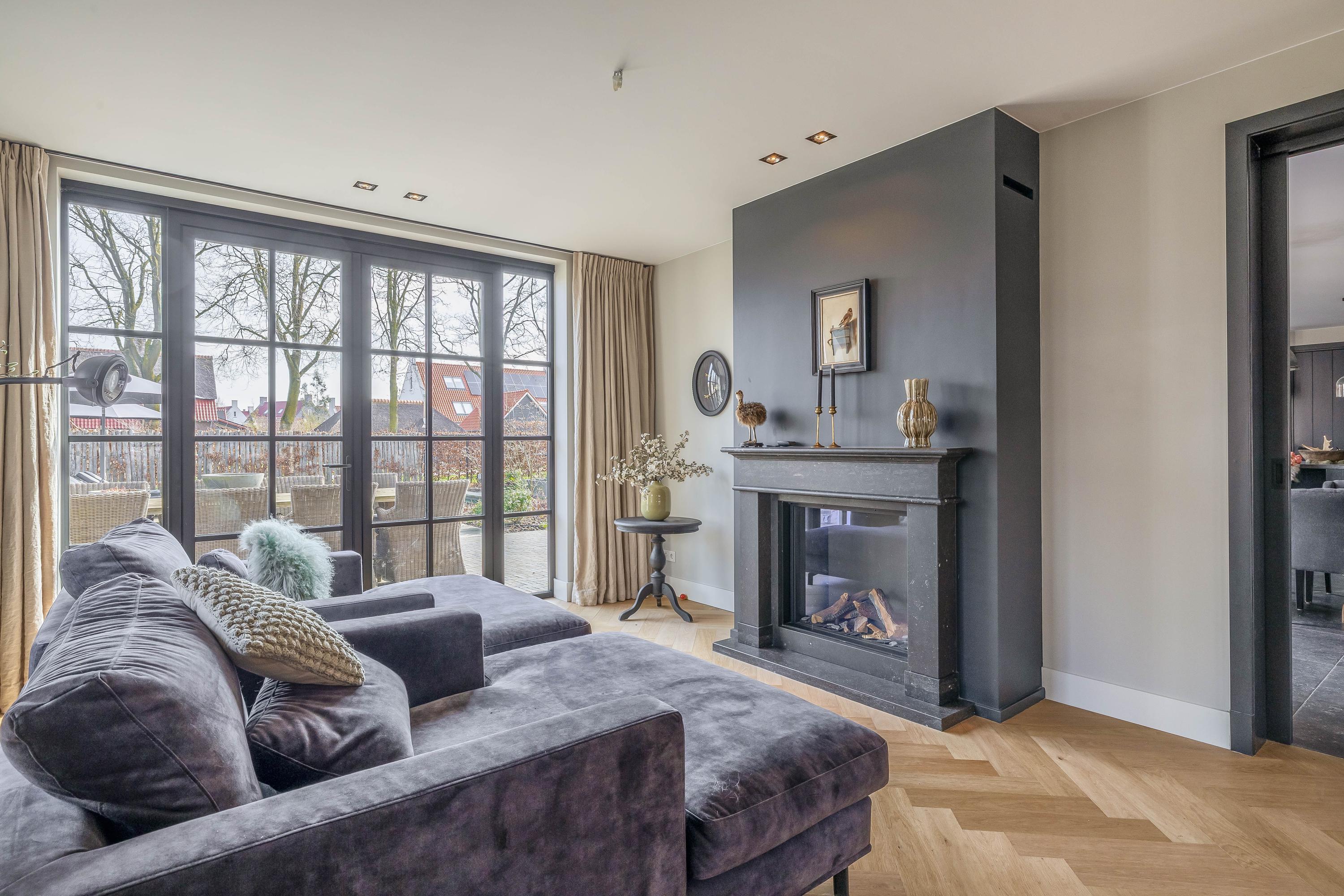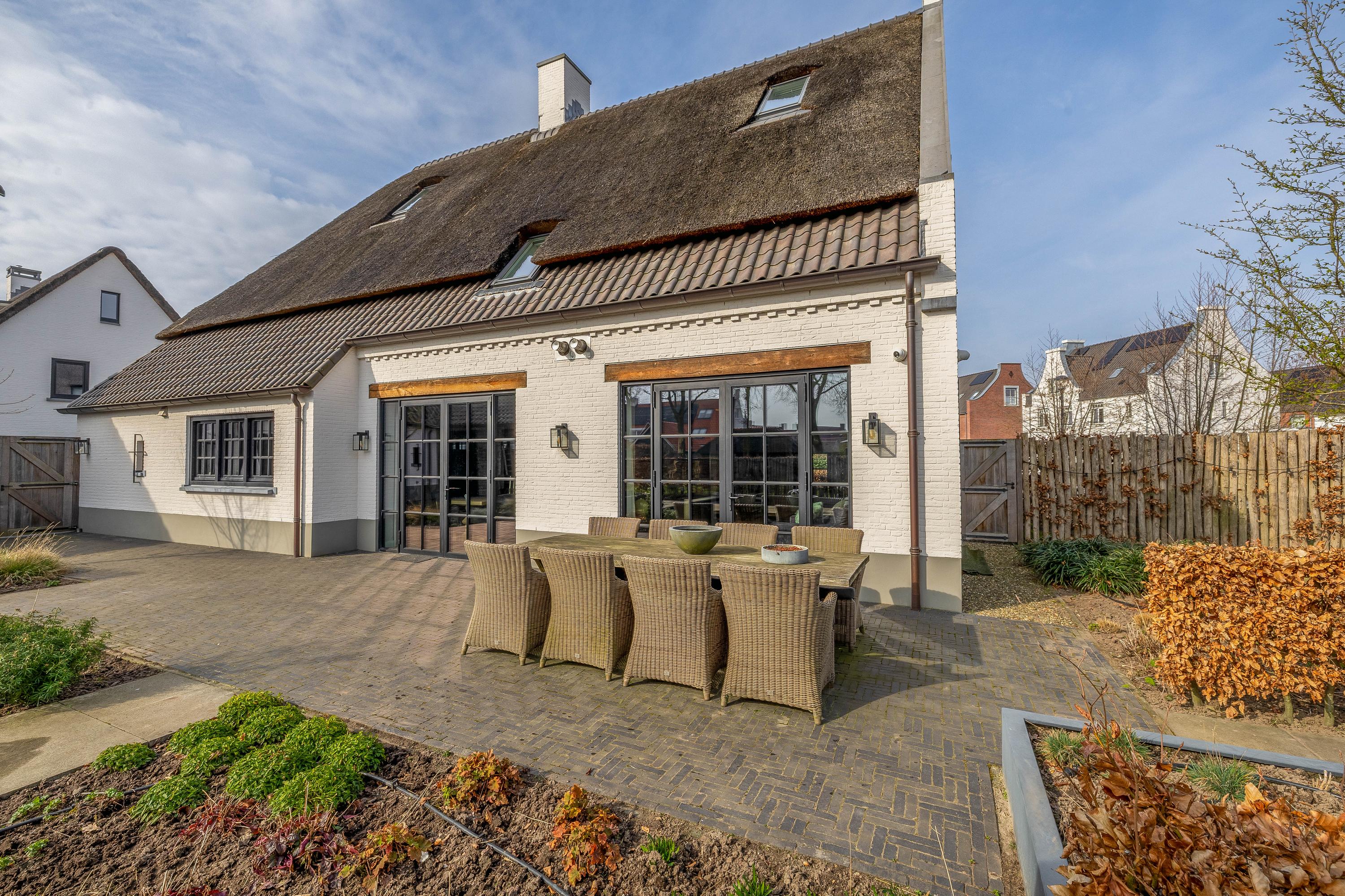 This farmhouse offers you a rare opportunity to live in an oasis of luxury, comfort, and privacy. With attention to detail, high-quality materials, and a thoughtful layout, every floor showcases a cohesive design where ceramic tiles, an oak herringbone floor, and meticulously applied stucco unite to form a warm and elegant whole. The seamlessly coordinated materials and finishes give every space a refined, consistent look.