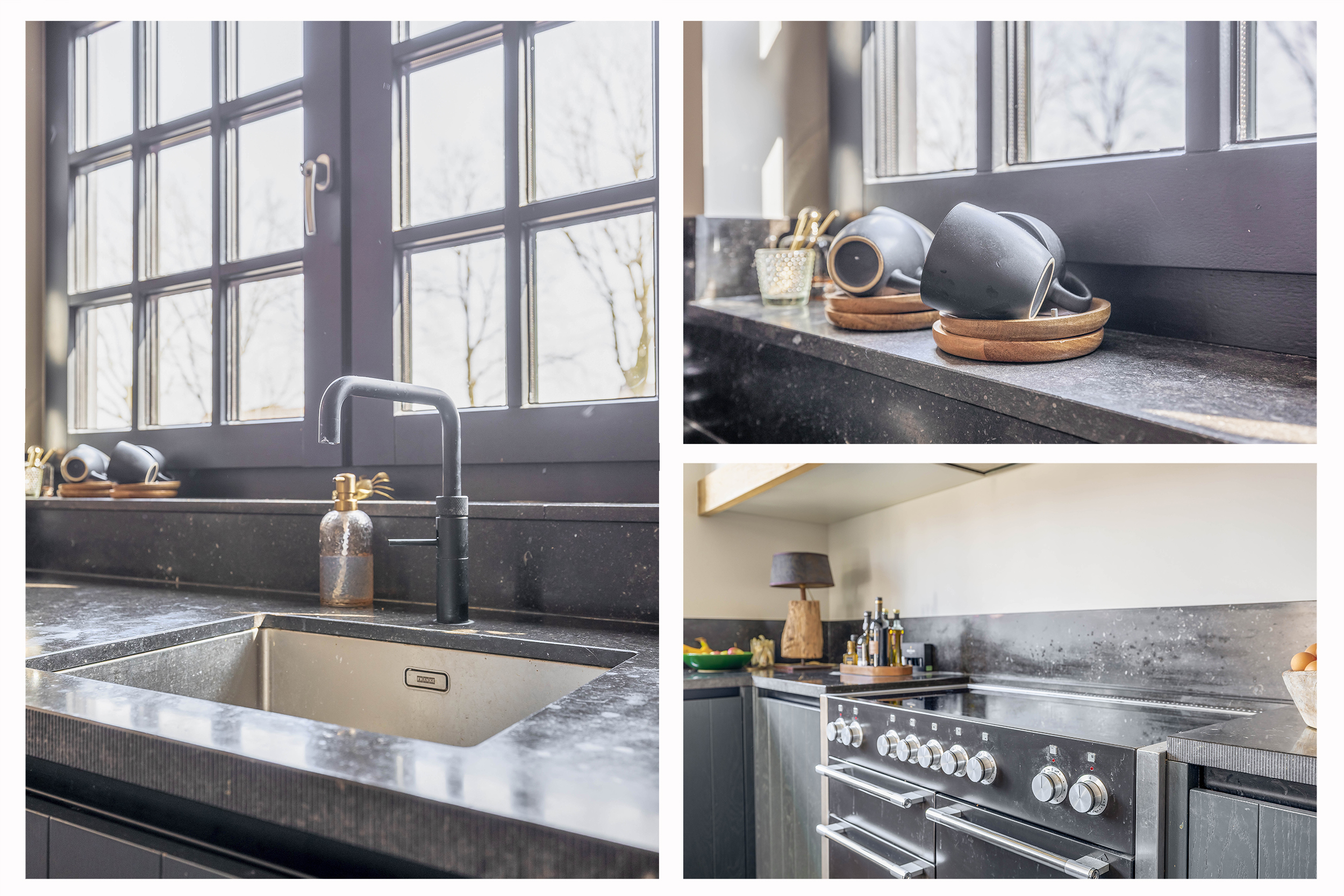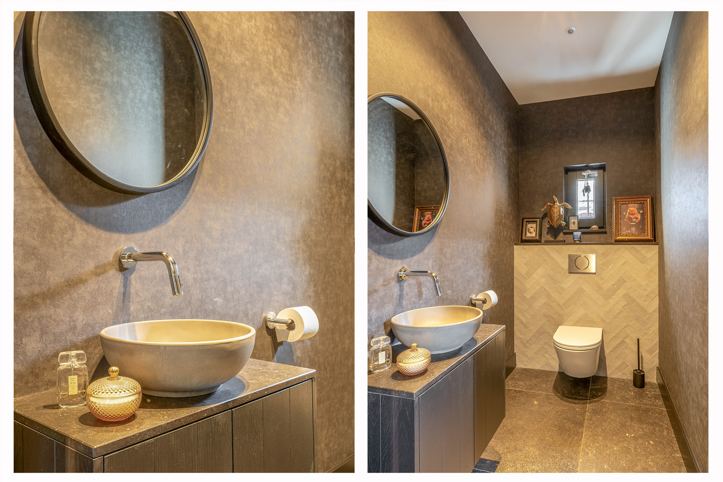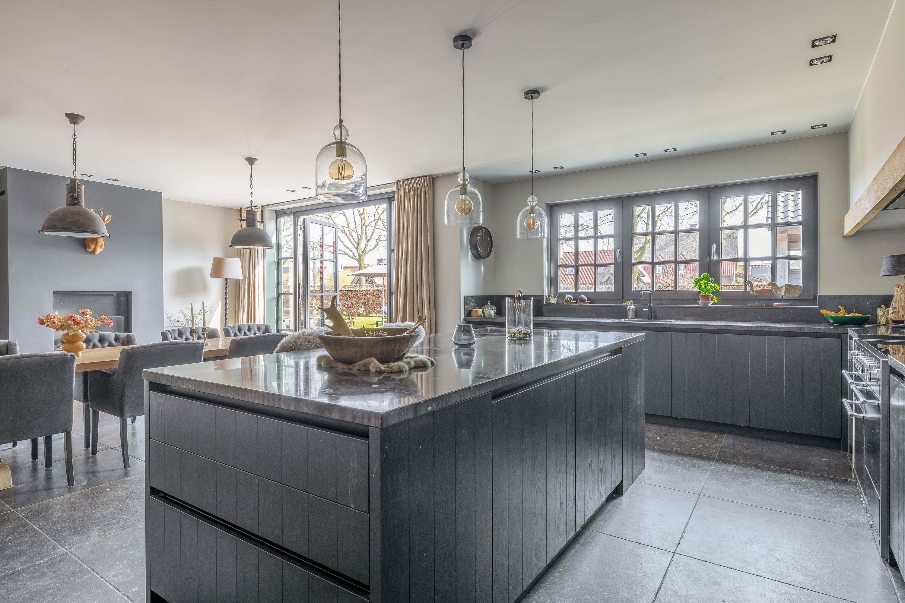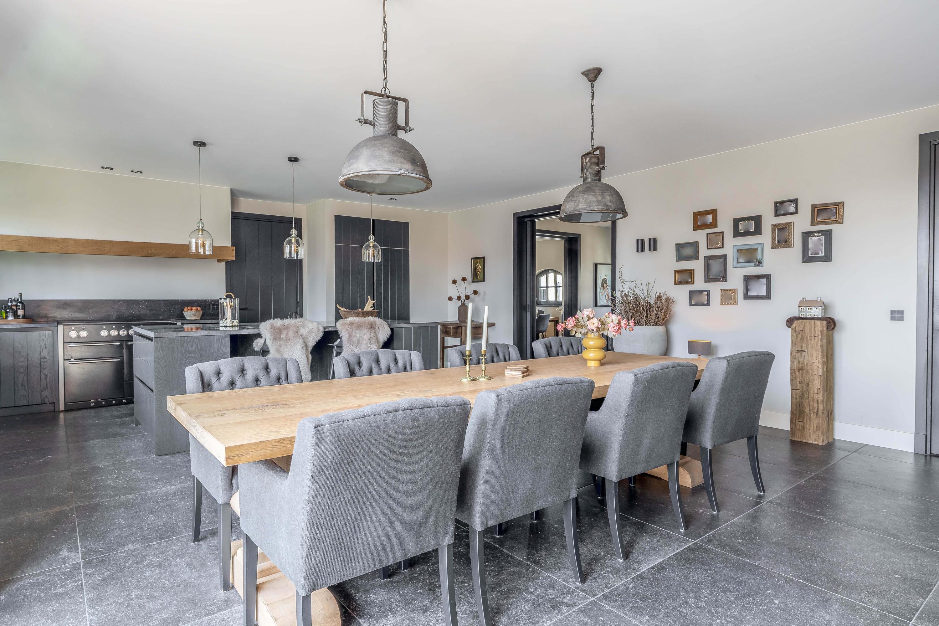 This farmhouse offers you a rare opportunity to live in an oasis of luxury, comfort, and privacy. With attention to detail, high-quality materials, and a thoughtful layout, every floor showcases a cohesive design where ceramic tiles, an oak herringbone floor, and meticulously applied stucco unite to form a warm and elegant whole. The seamlessly coordinated materials and finishes give every space a refined, consistent look.