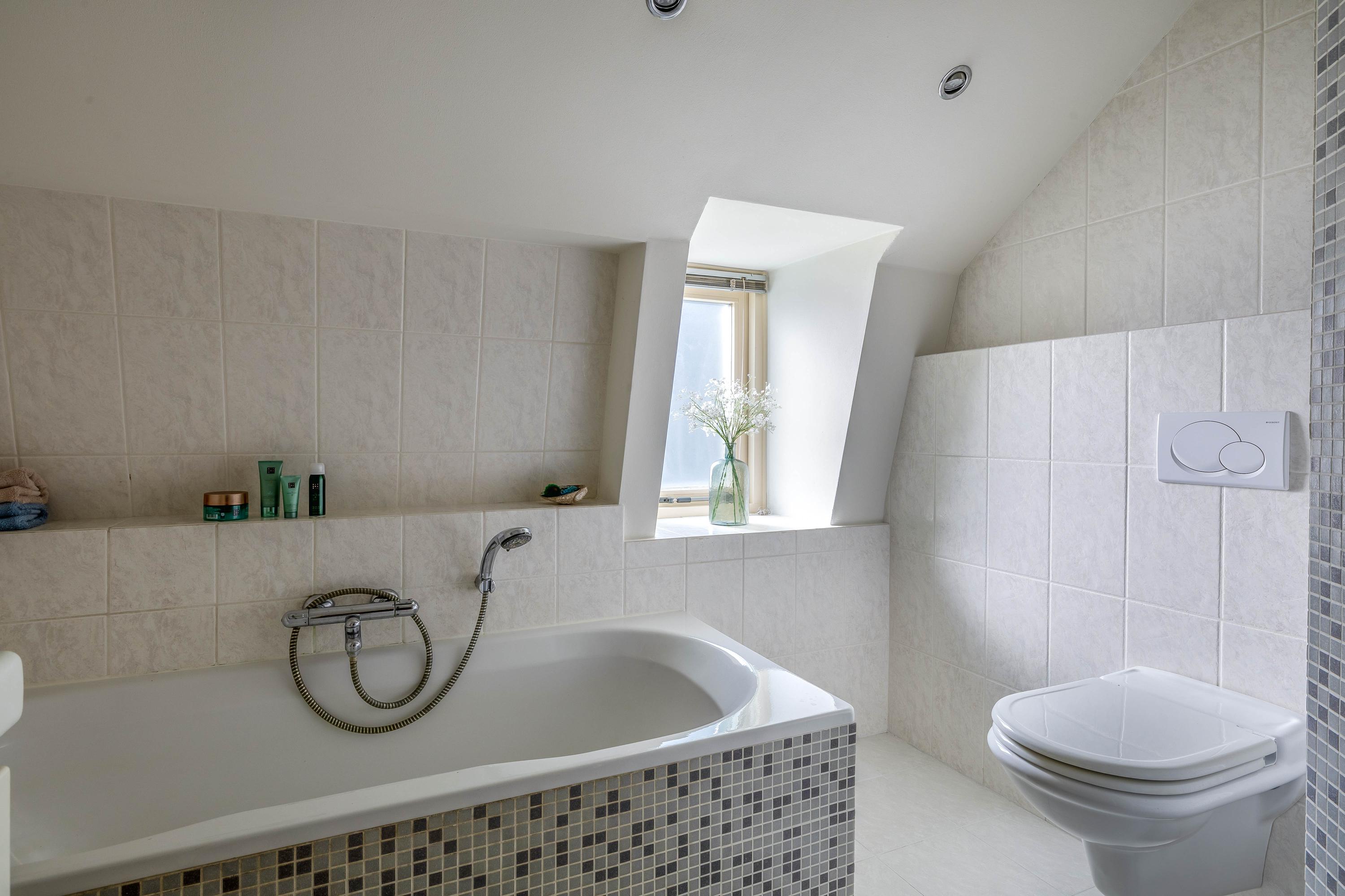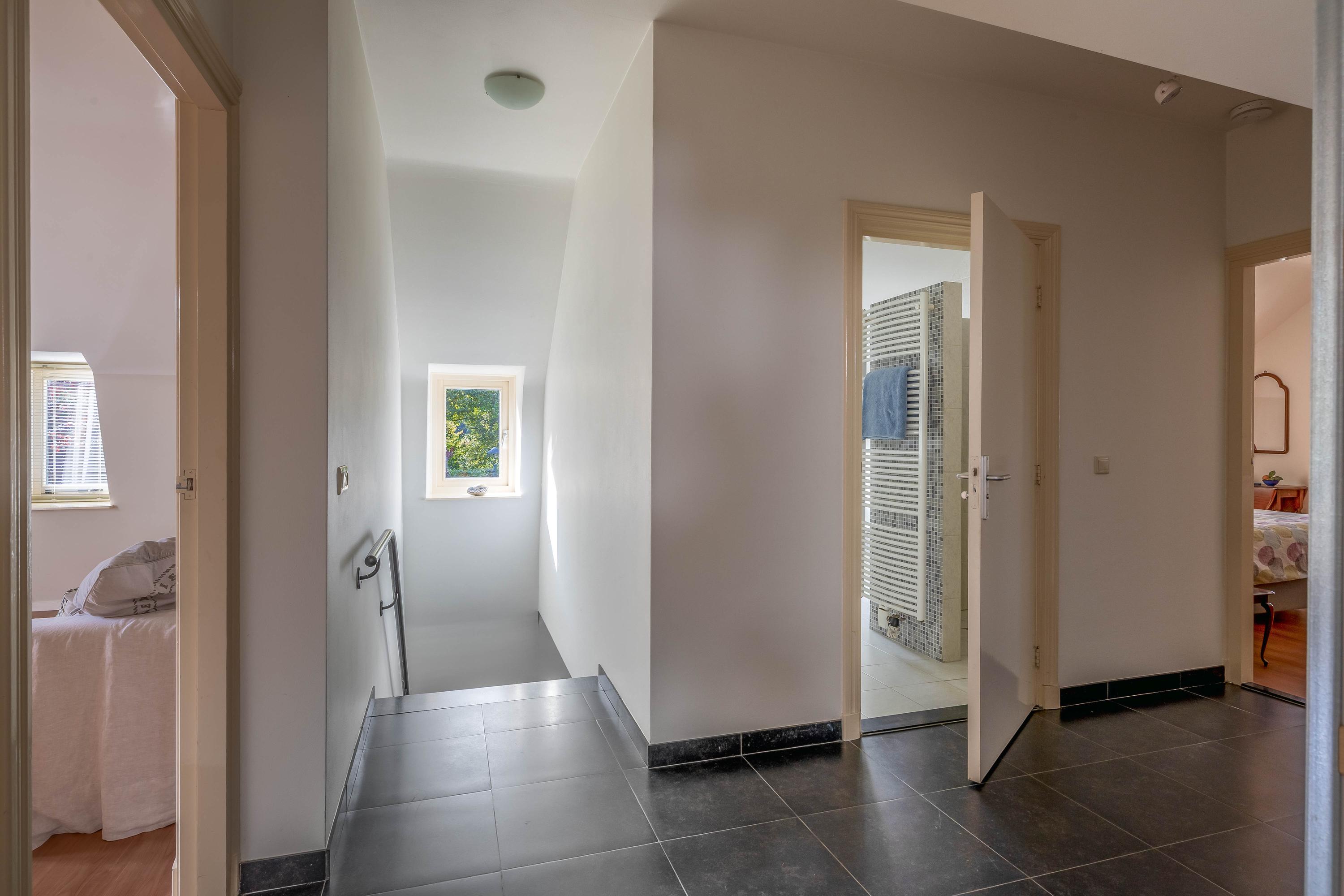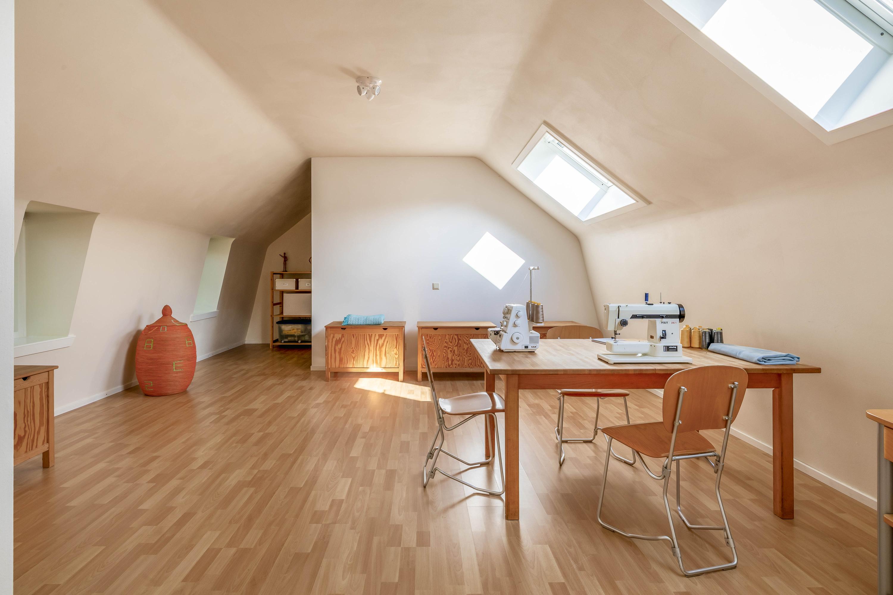From the landing, you have access to two comfortable bedrooms, which are finished with laminate flooring and stucco walls and ceilings. A dormer window and two sets of windows provide natural light and ventilation. The second bathroom is also fully tiled and equipped with a walk-in shower, a washbasin and a floating toilet. A skylight provides sufficient natural light and fresh air. The practical central heating room/storage room has the central heating boiler (Nefit, Topline).