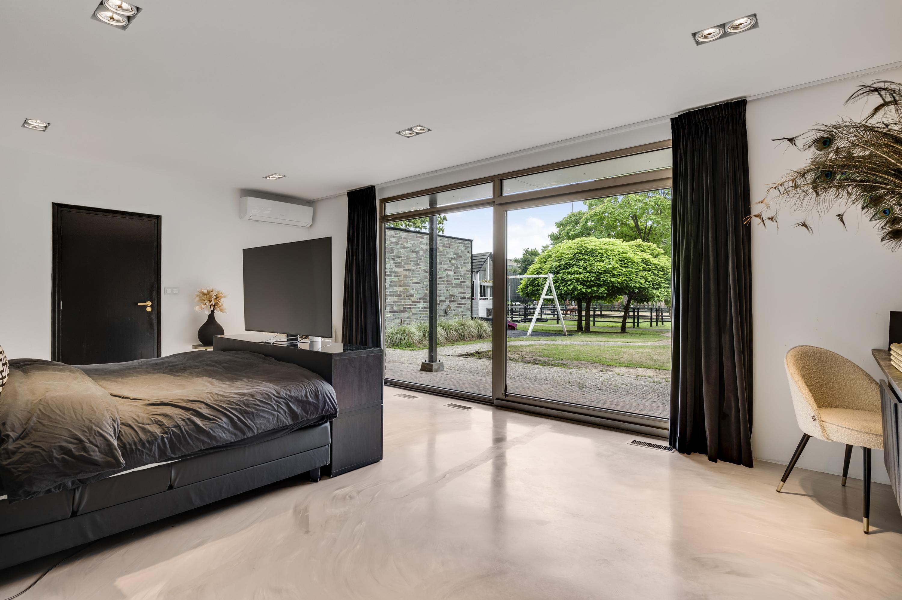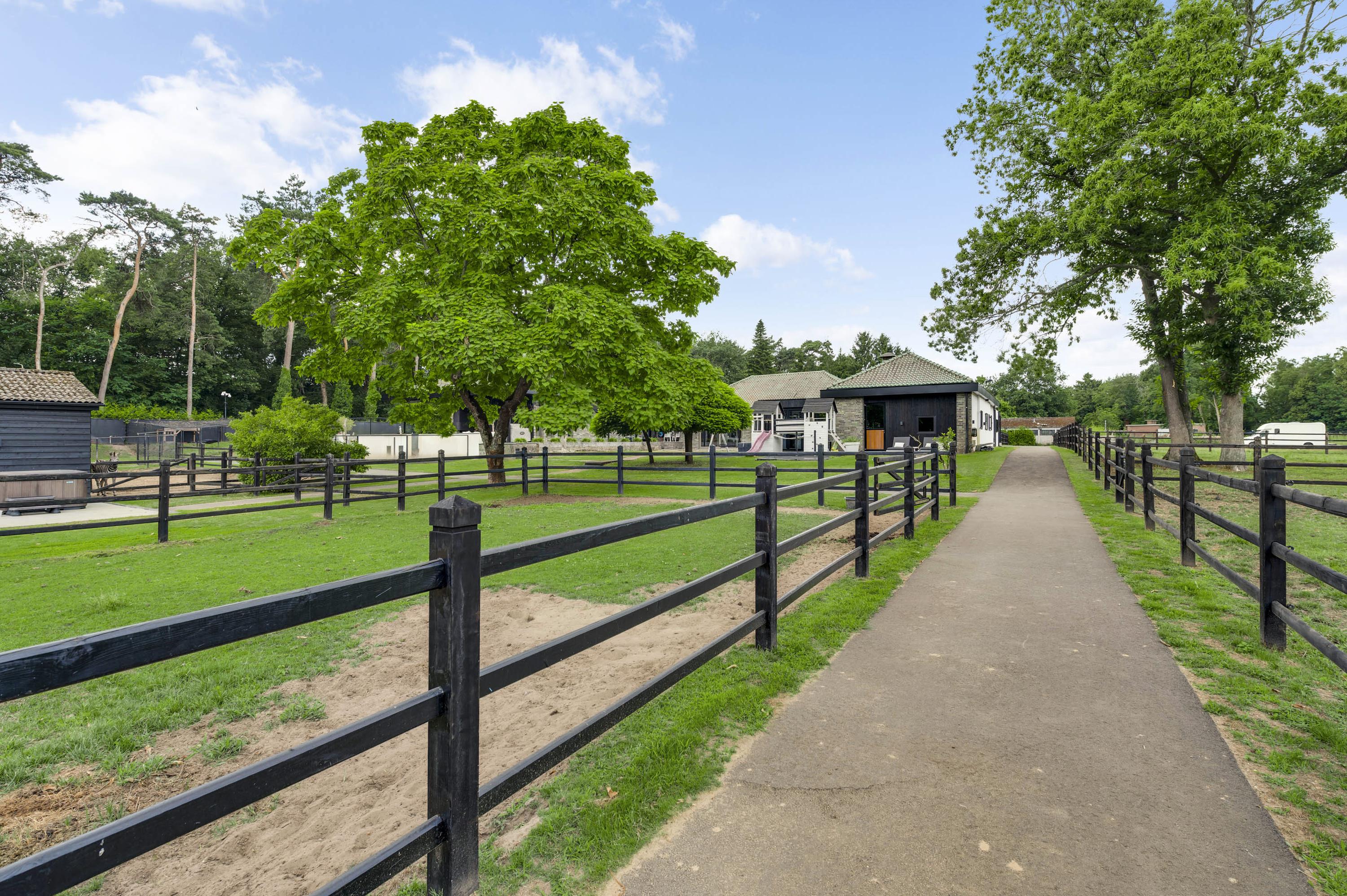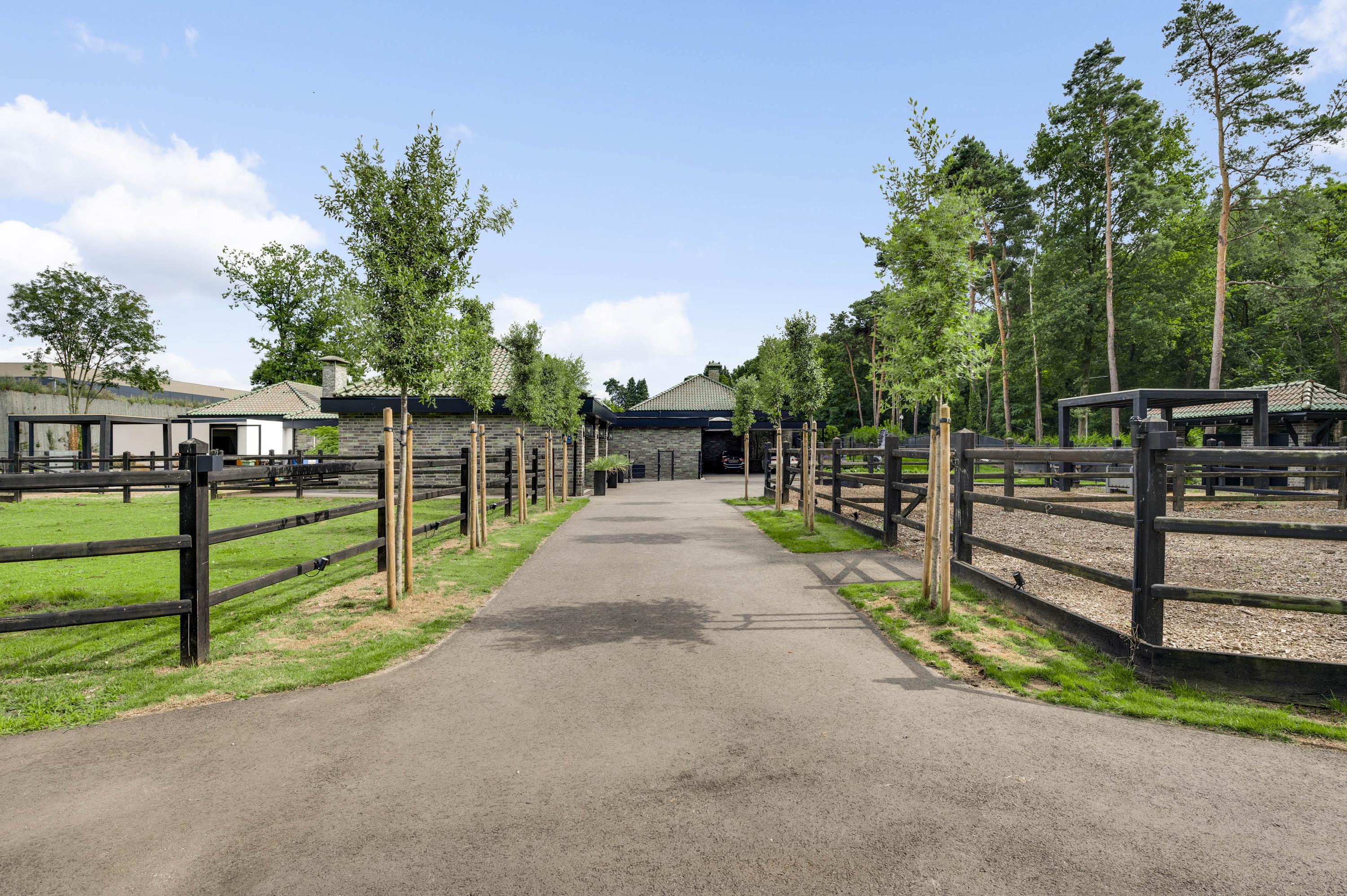 In a breathtaking location, adjacent to De Meinweg National Park and a stone's throw from De Herkenbosche Golf Course, this exclusive and fully modernized villa is situated on a spacious plot of no less than 11,171 m². A unique living experience where luxury, comfort, and tranquility come together with the outdoors. Thanks to the extensive horse facilities, including a lighted riding arena, 6 luxurious horse stalls, tack room, wash area, and several surrounding pastures, this is a dream location for horse lovers or offers plenty of space for other uses such as an indoor swimming pool or wellness center.