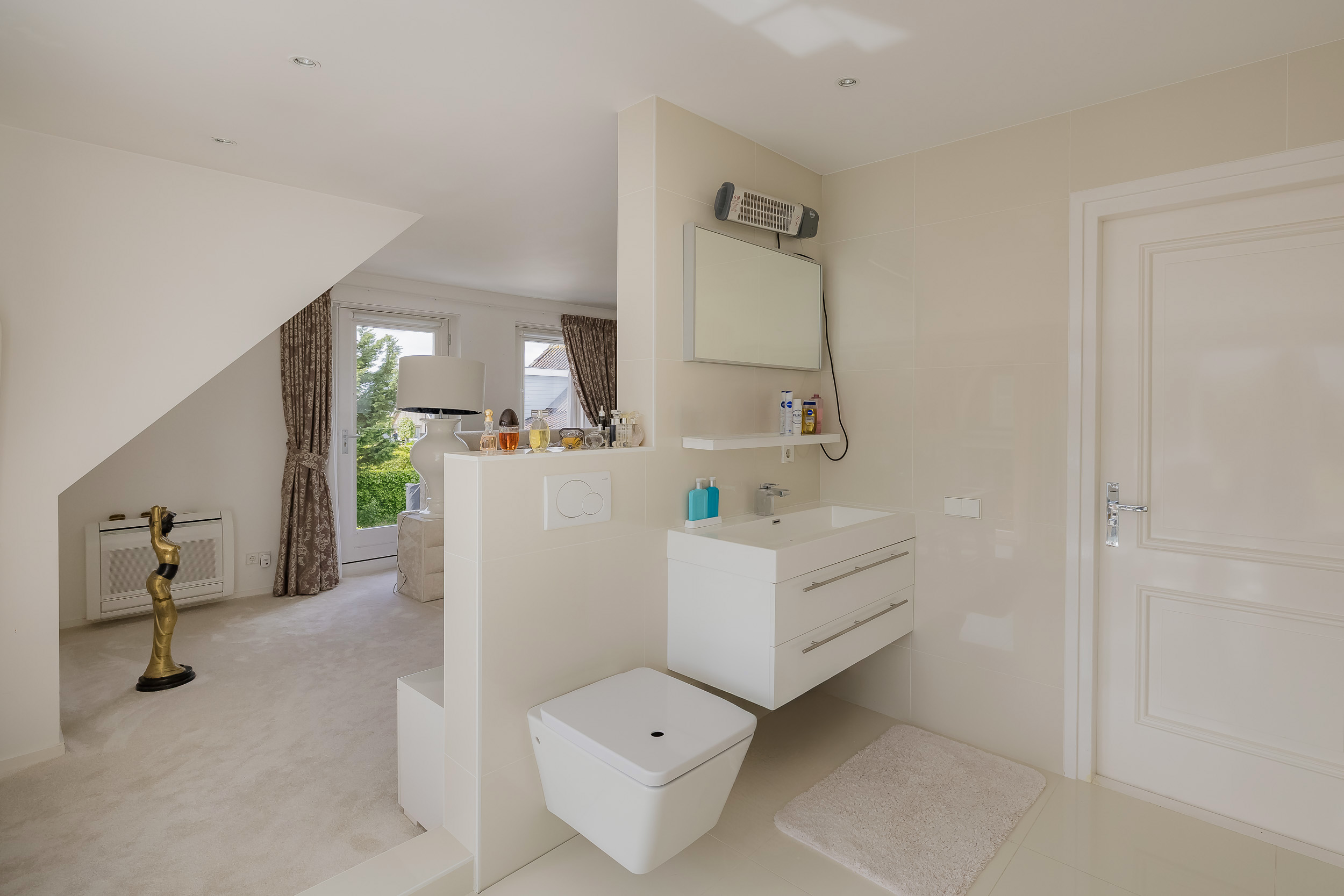 On the second floor you will find access to the attic, three spacious bedrooms and a bathroom. All rooms have a dormer window for extra headroom and a spacious feeling and the doors have a charming French balcony. The luxurious bathroom, accessible from both the master bedroom and the landing, is a place of relaxation that includes a soaking tub/jacuzzi.