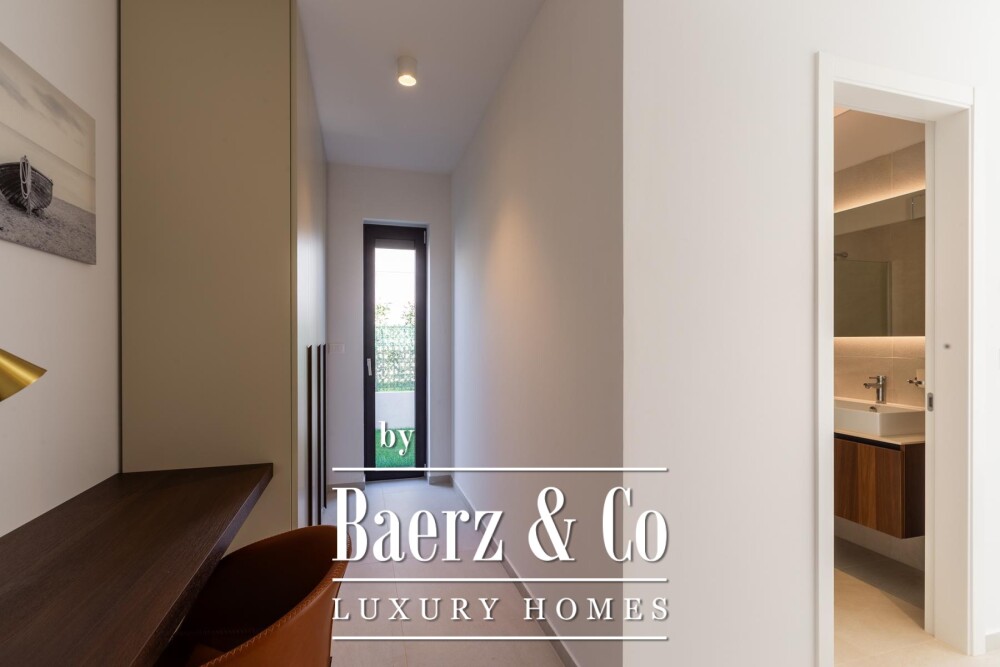 The townhouse Kaštelir-Labinci embodies a composed blend of modernity and functionality, offering 147 m² of living space in a region renowned for its desirability. This single-story residence delivers a spatial experience defined by clarity and comfort. An open kitchen with island flows seamlessly into the dining and living area, inviting natural light while offering direct access to a covered terrace and pool. Three bedrooms, each with a private bathroom and direct garden access, anchor the sense of calm and privacy throughout the home.