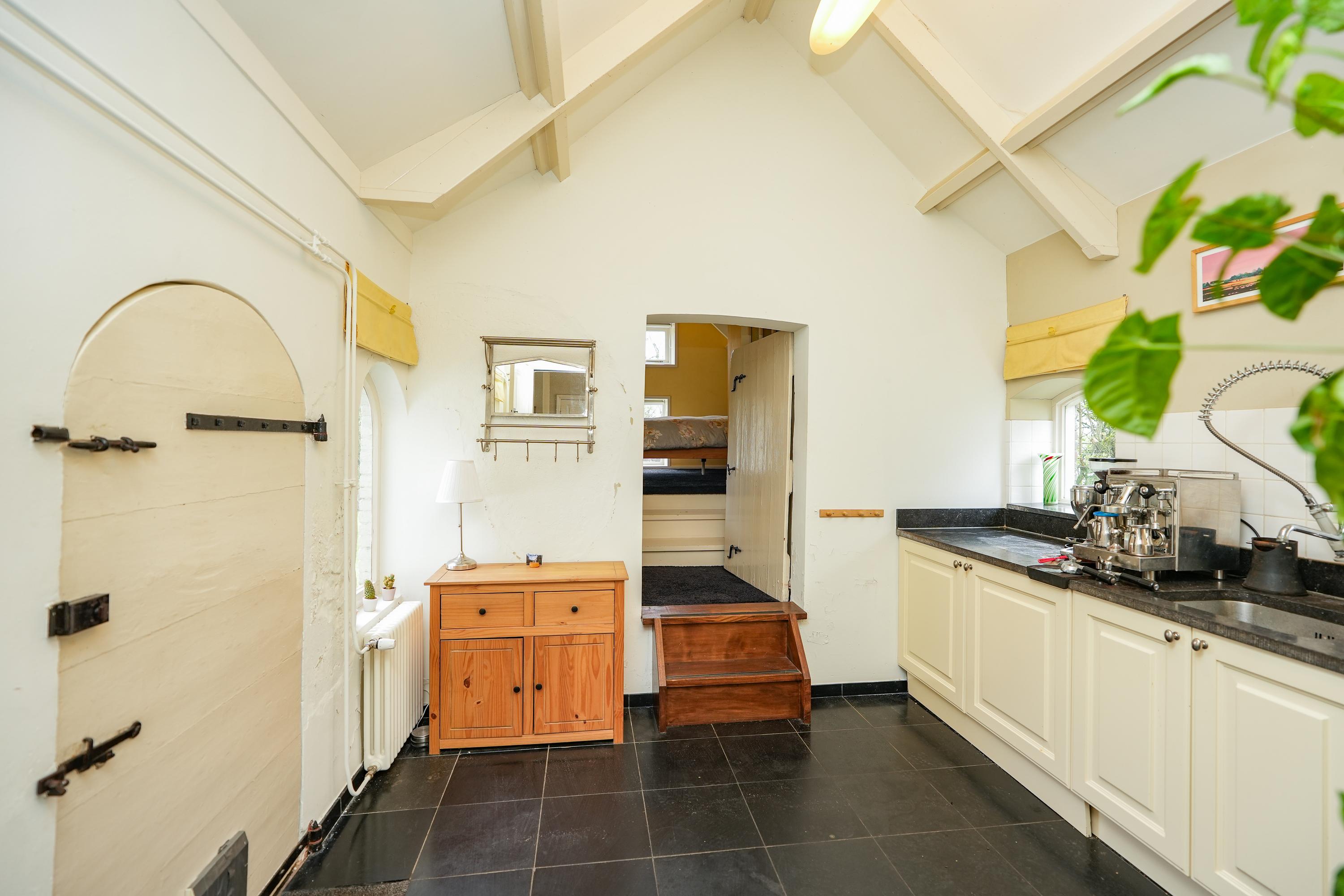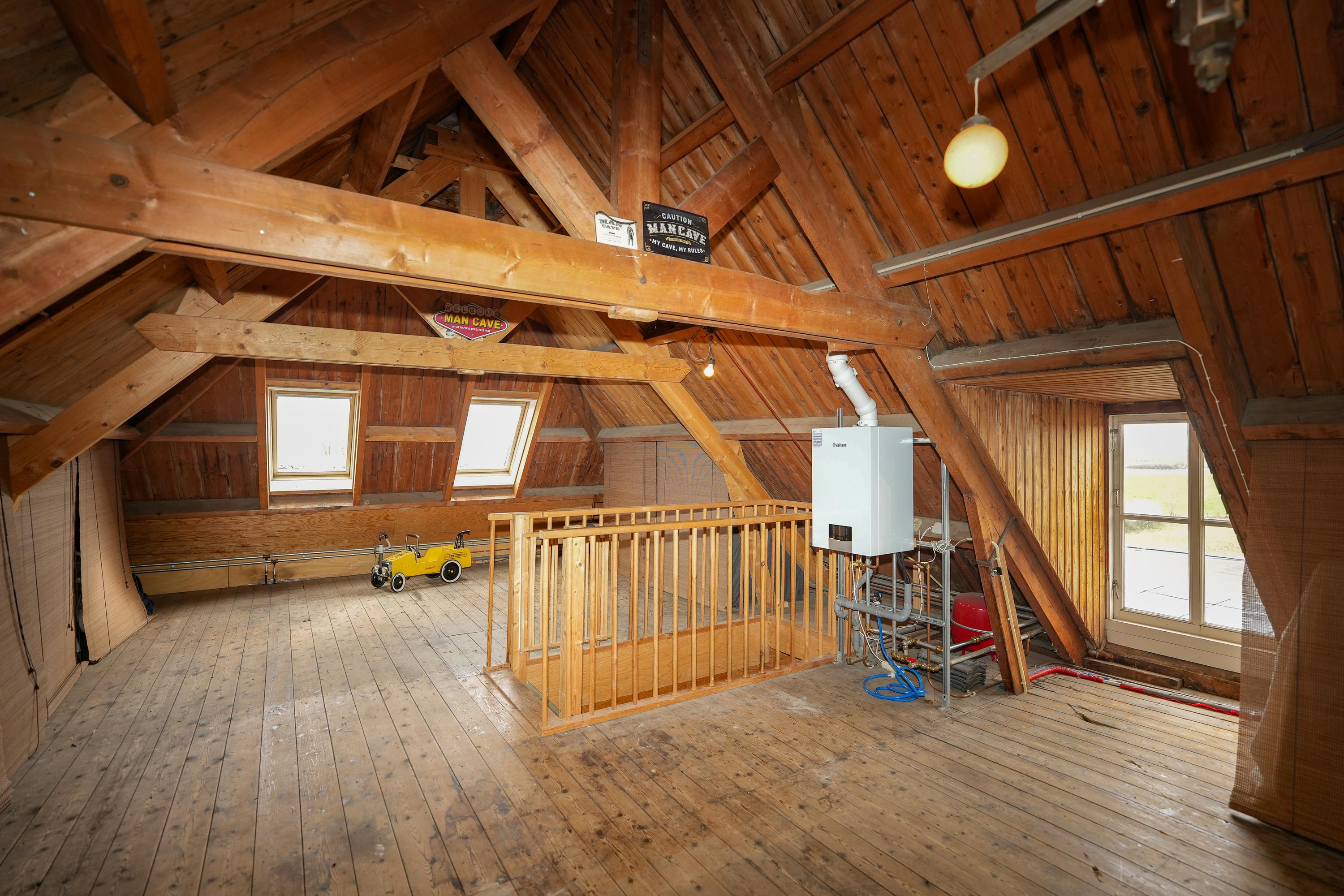 The property is defined by its connection to nature: views reach toward the iconic Sint-Laurentiuskerk on one side, while the opposite aspect opens to wild meadows where horses, cattle, and nesting storks add to the setting’s authenticity. Historic village life and sweeping river landscapes coexist here, creating a unique residential atmosphere. The old orchard and wild garden, complete with private water, further enhance the experience of space and tranquility.