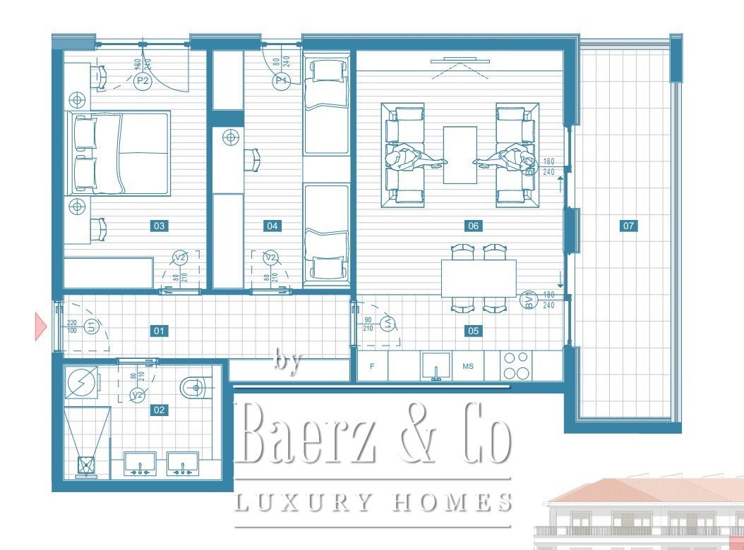 Finishes are move-in ready, with completed floors, tiles, bathroom, and equipped air conditioning. Residents benefit from access to a shared pool and proximity to well-established amenities; eclectic restaurants and grocery shops sit within walking distance. Tivat Airport is 17 km away, enhancing international access.