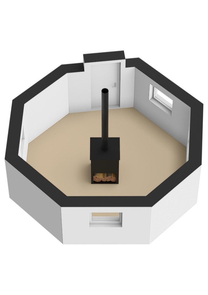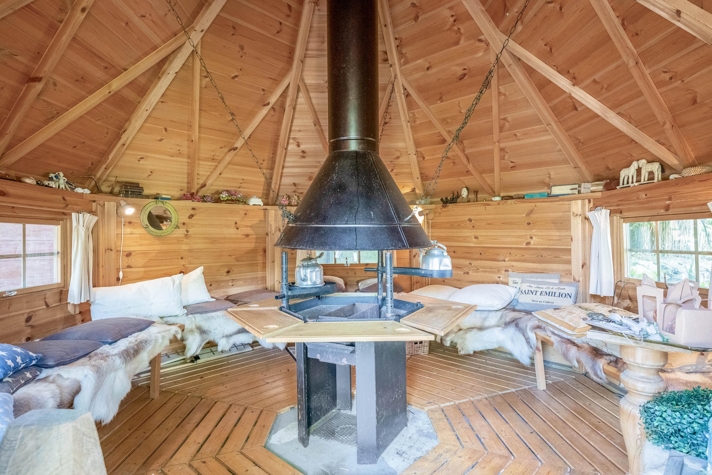 At the back of the garden, there’s a Finnish cottage with a fireplace — an ideal spot to relax or entertain guests.