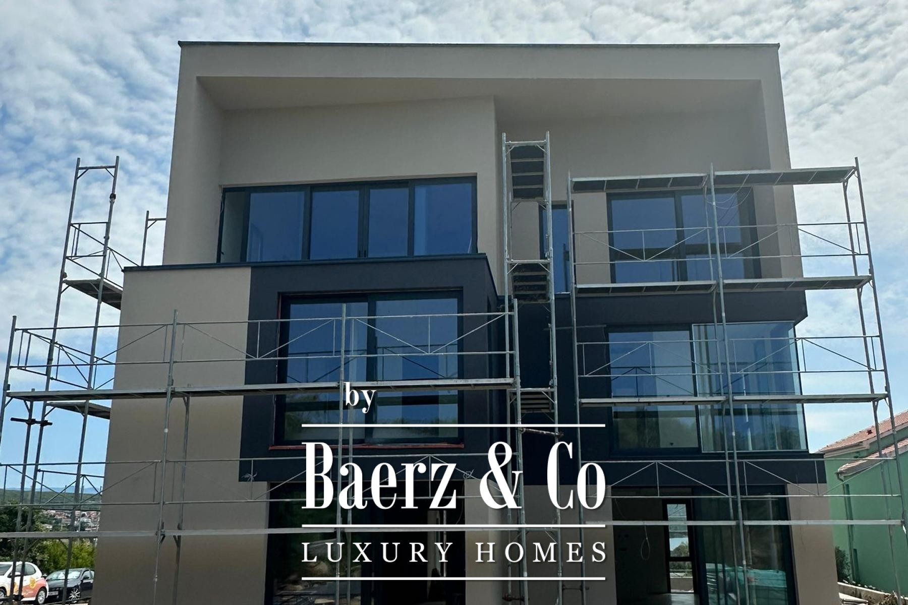 Apartment Krk is defined by its calm setting and refined architecture. Situated within a new building of only four residences, this 141 m² apartment balances privacy with access, providing a discreet retreat in a tranquil part of Krk. The property features a spacious living room seamlessly joined with a kitchen and dining area, three bedrooms, three bathrooms, and two walk-in closets. Every detail echoes thoughtful design and spatial clarity.