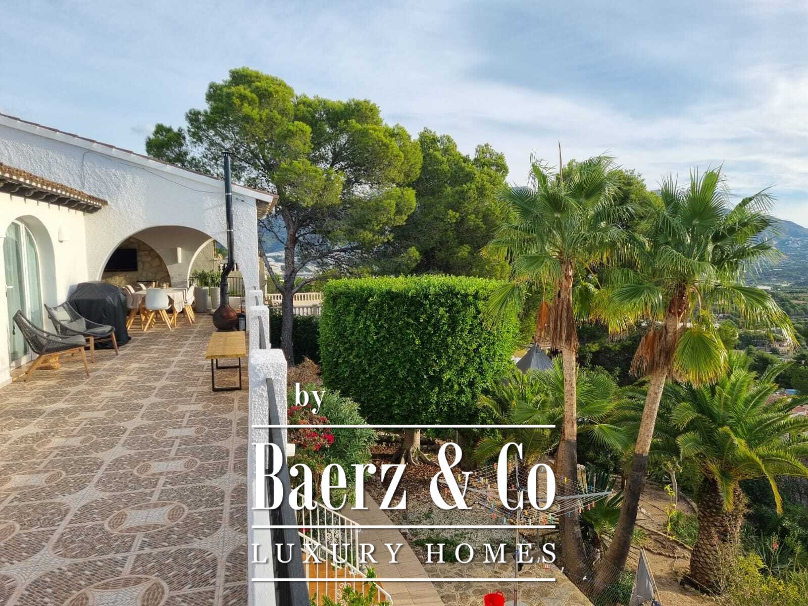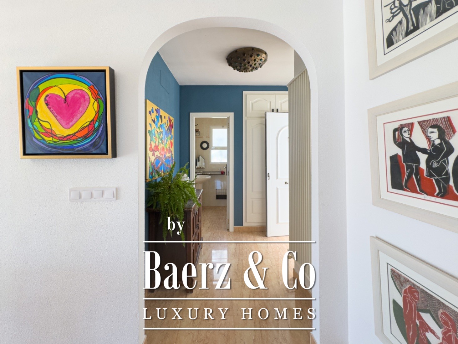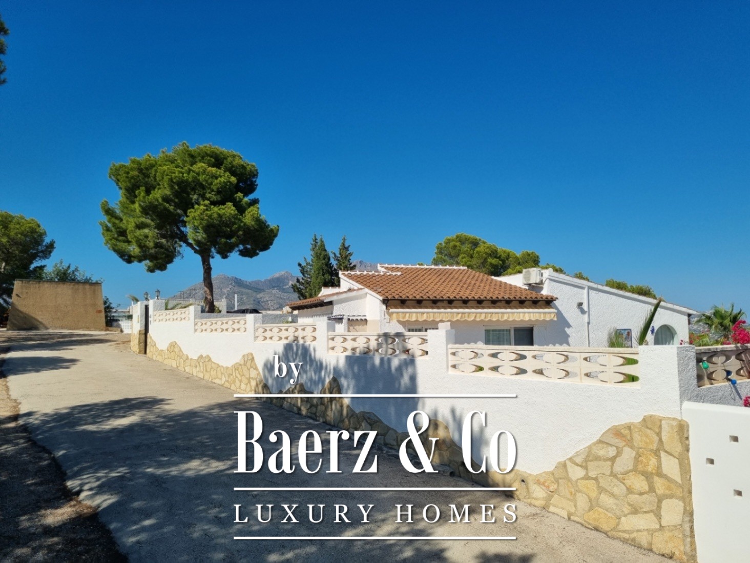 Villa La Nucía with panoramic sea and mountain views invites a measured appreciation of Mediterranean living. Set across 225 m² within a meticulously landscaped 1265 m² garden, this villa harmonizes privacy and spatial generosity, offering subtle luxury for those attuned to detail. The main residence presents a luminous living room and a fully equipped kitchen with uninterrupted vistas, alongside one bedroom with en-suite bathroom and a guest toilet. Designed for both comfort and function, the home’s flow opens seamlessly onto a generous terrace, where open and covered spaces invite morning light and tranquil evenings alike.