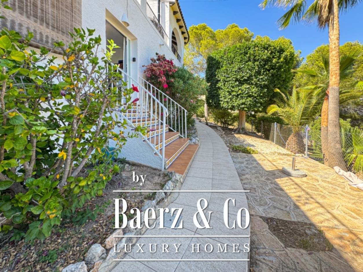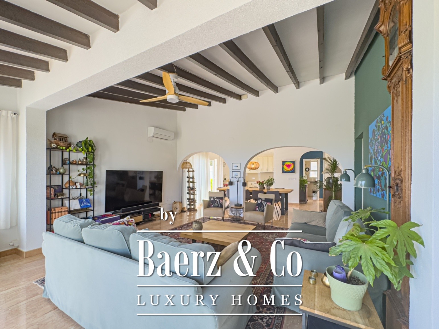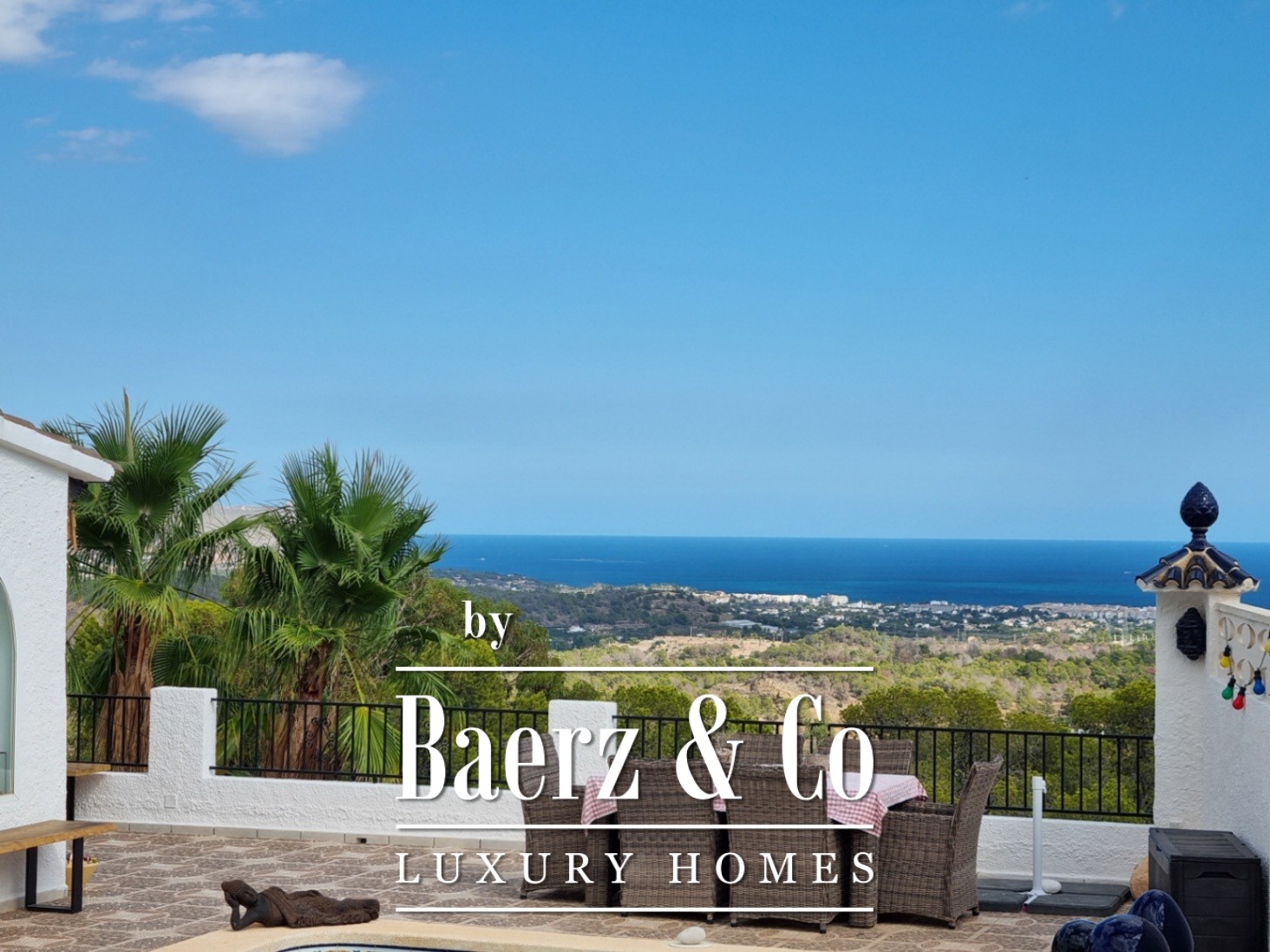 Villa La Nucía with panoramic sea and mountain views invites a measured appreciation of Mediterranean living. Set across 225 m² within a meticulously landscaped 1265 m² garden, this villa harmonizes privacy and spatial generosity, offering subtle luxury for those attuned to detail. The main residence presents a luminous living room and a fully equipped kitchen with uninterrupted vistas, alongside one bedroom with en-suite bathroom and a guest toilet. Designed for both comfort and function, the home’s flow opens seamlessly onto a generous terrace, where open and covered spaces invite morning light and tranquil evenings alike.