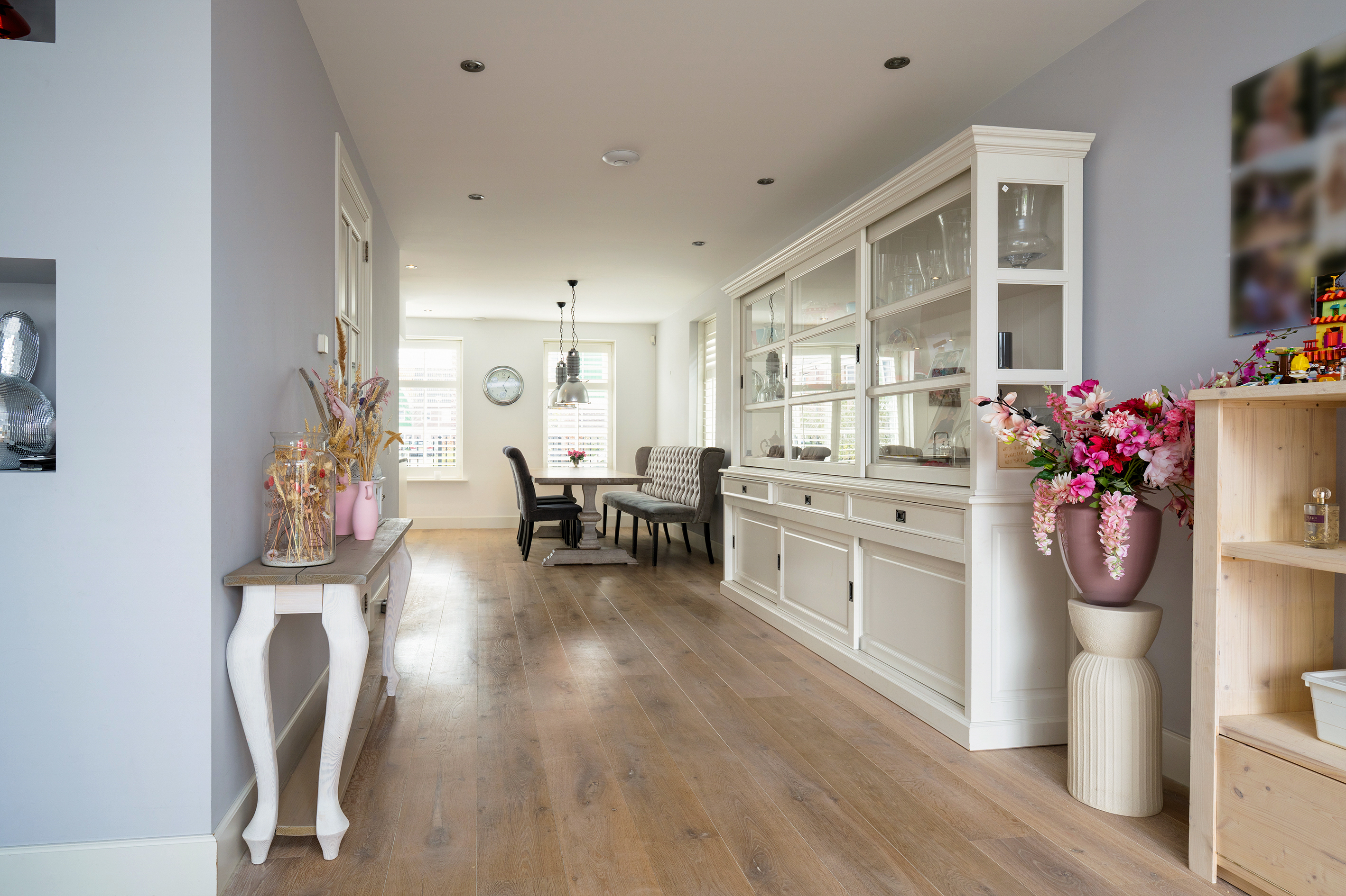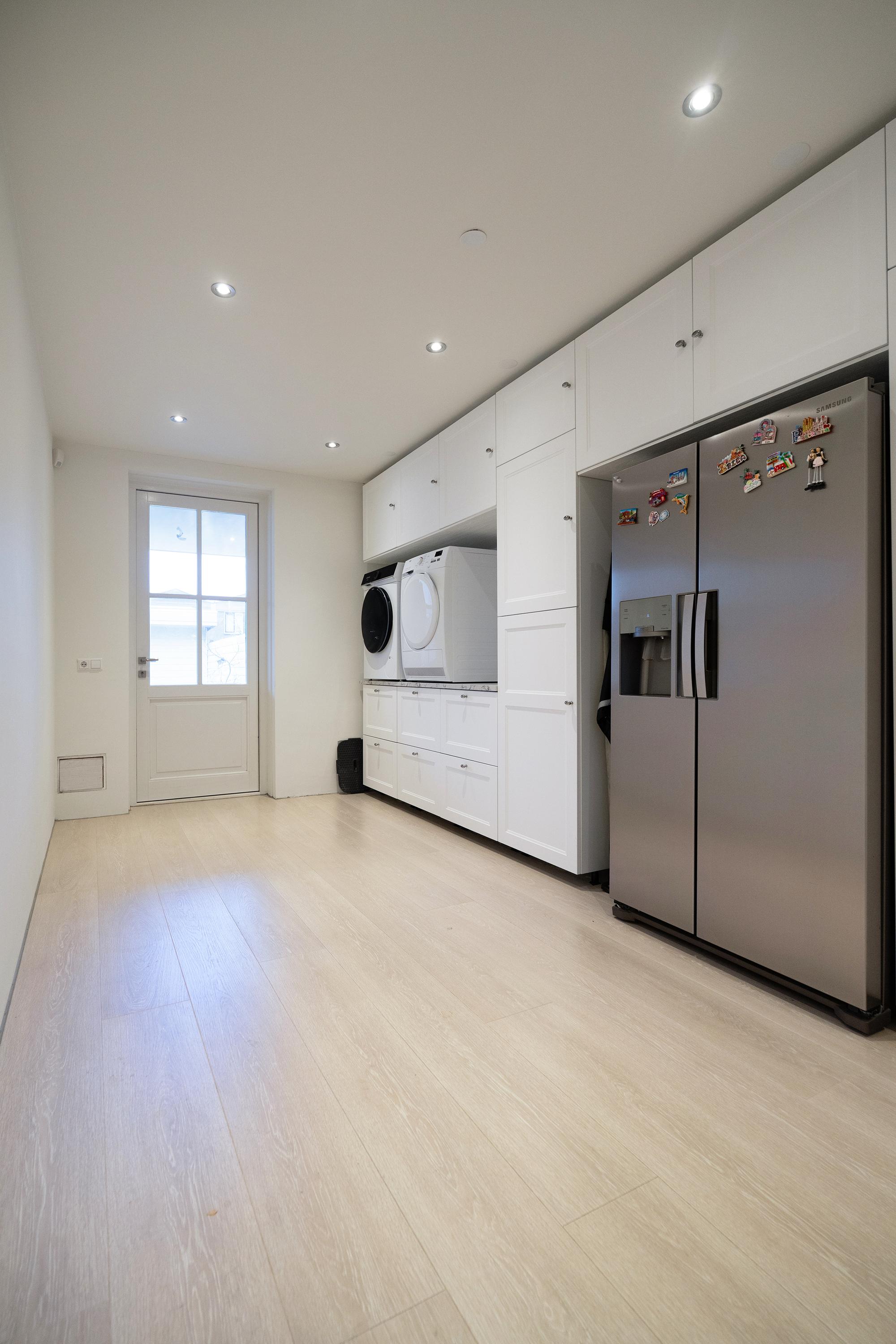 This richly detailed townhouse (2016) stands out with its high gutters, masonry pilasters, French balcony, and characteristic truncated hipped roof. Also striking is the space and pleasant layout on all floors, including 5 bedrooms and 2 bathrooms. Ideal for living with a (larger) family. This is also reflected on the ground floor in the generously sized kitchen-diner at the front of the house, featuring a large sink/cooking island and a wall with built-in appliances.