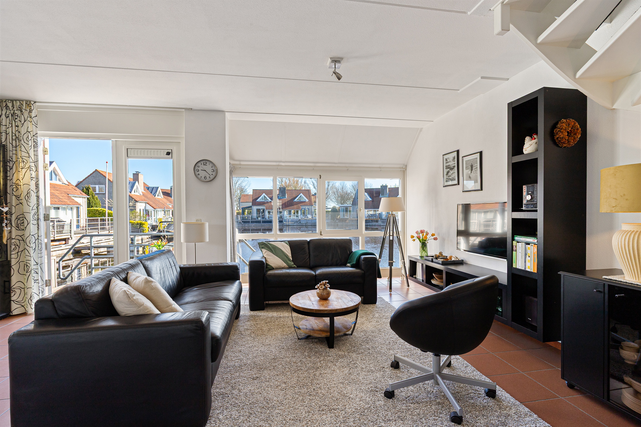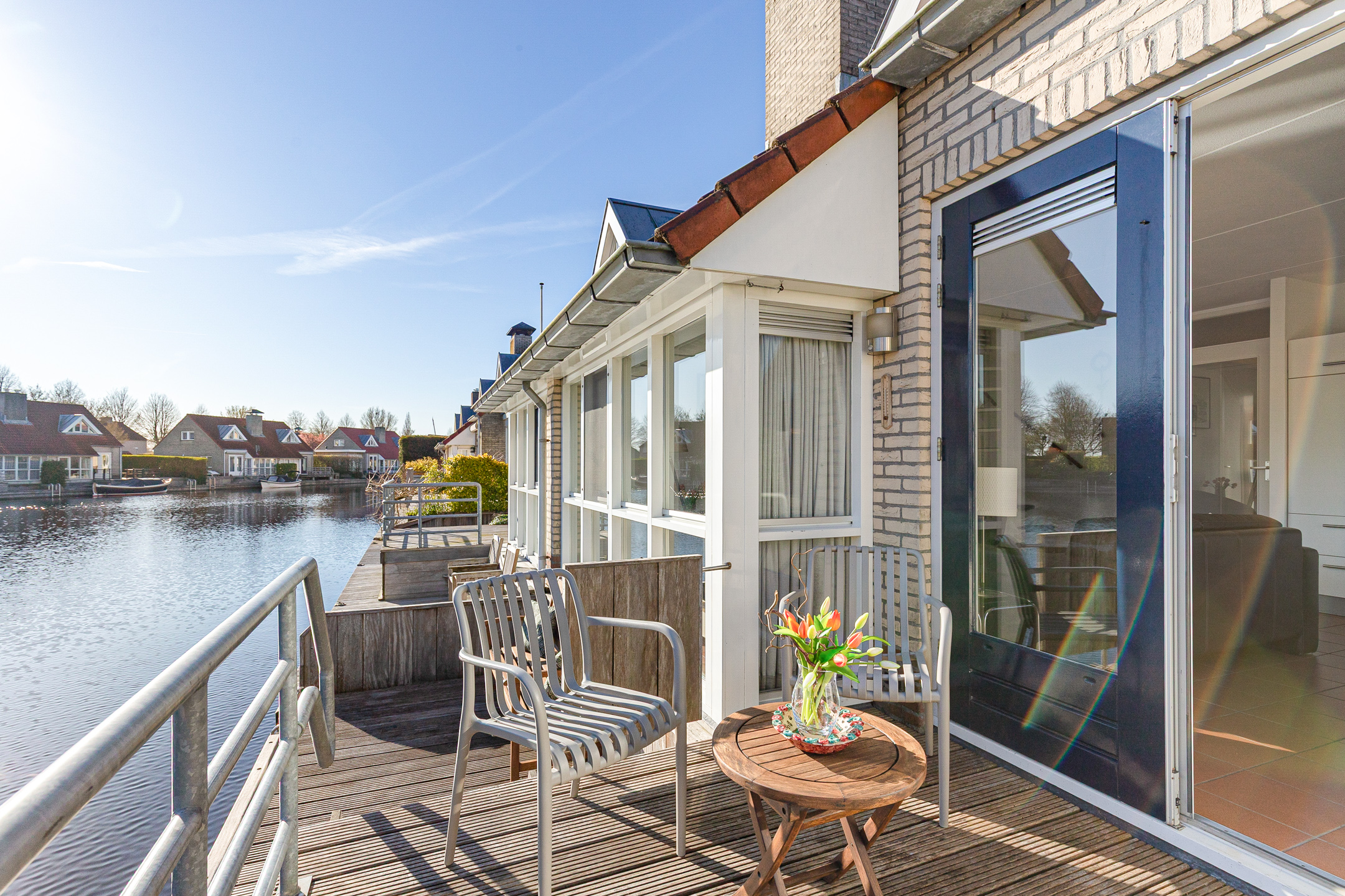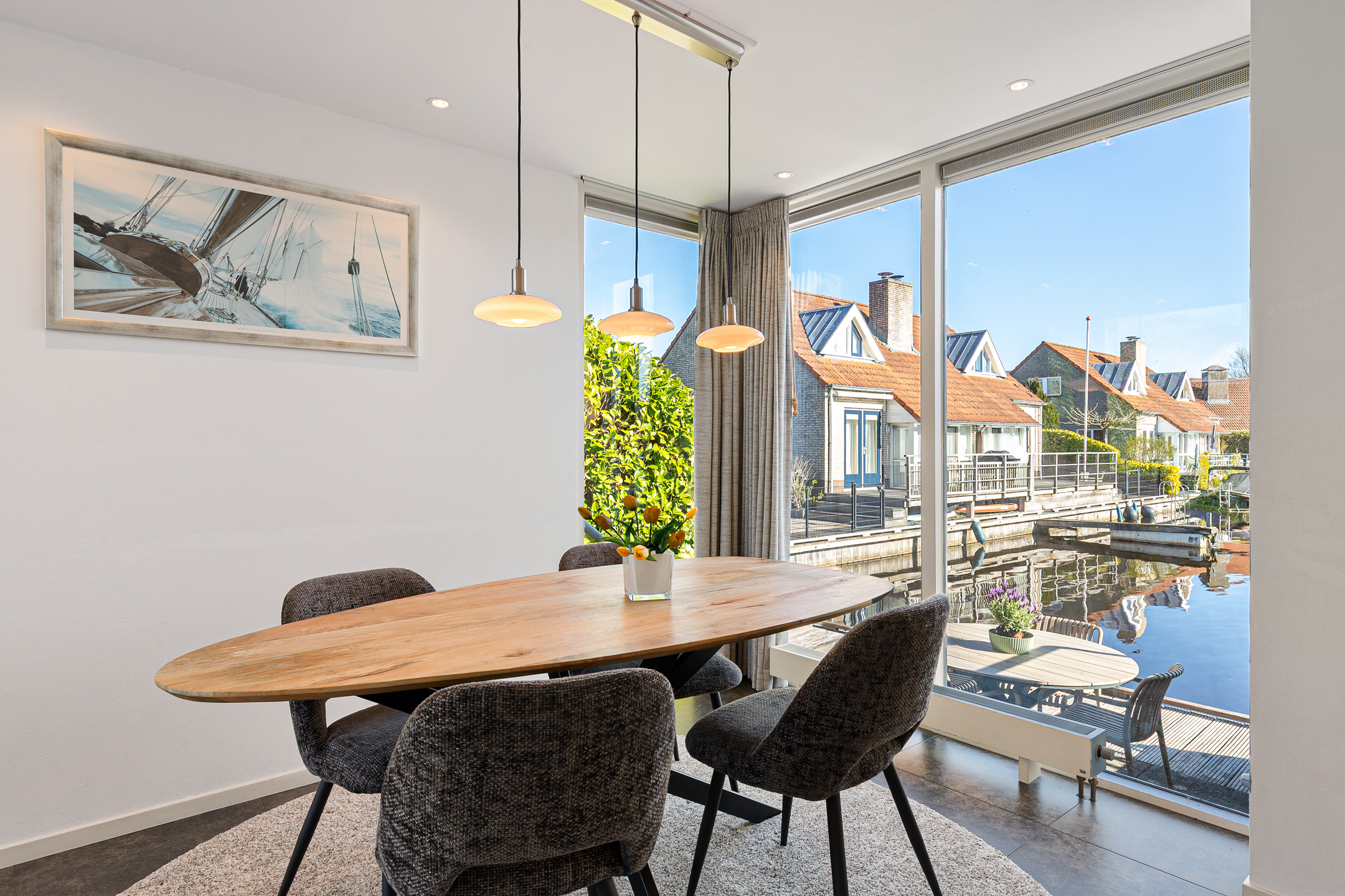 This waterfront house in Langweer captures the essence of waterside living—balancing discretion and ease with the freedom of direct water access, all in an atmosphere of understated luxury.
