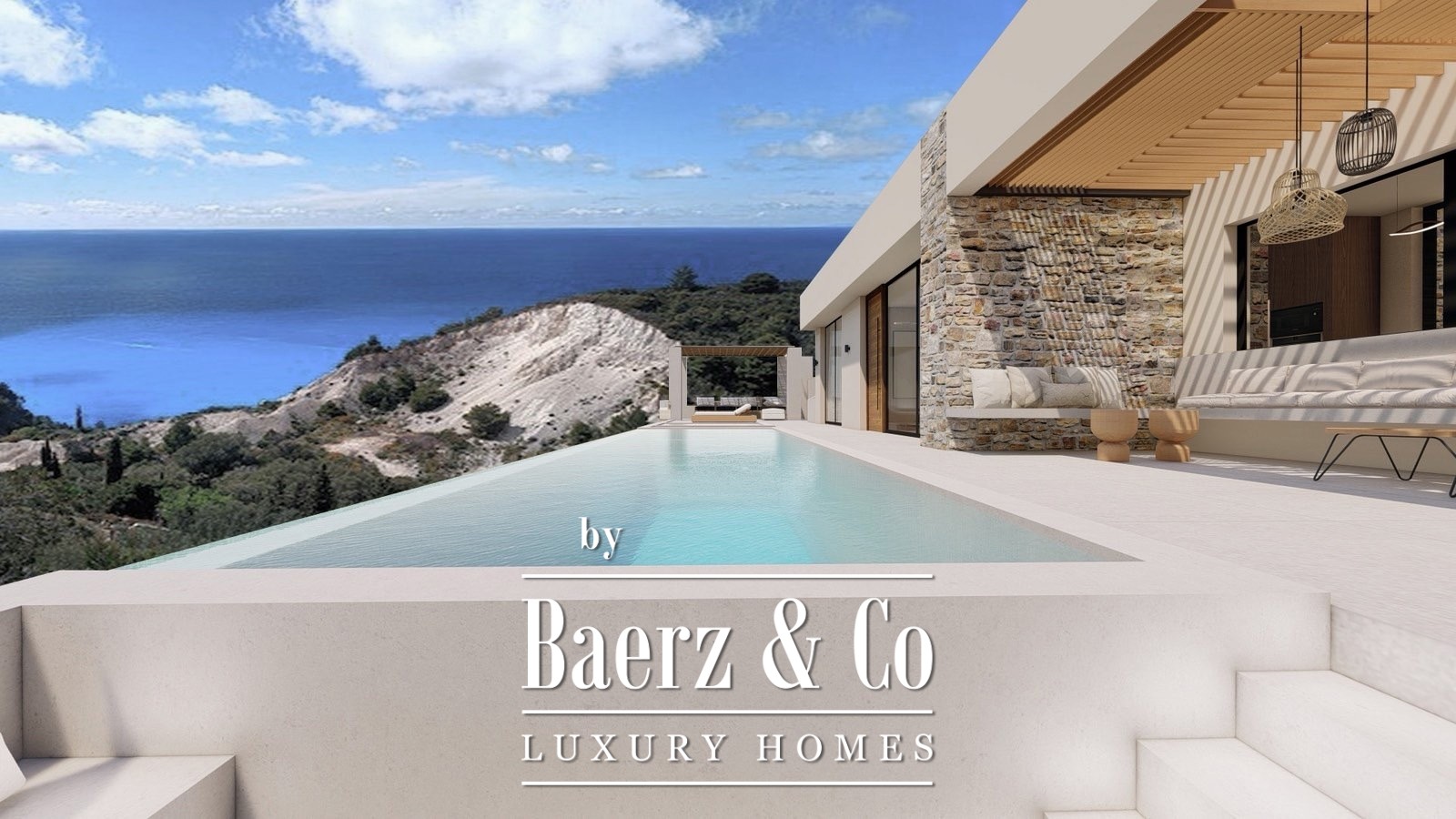 Luxury villa Lefkada sits on the dramatic cliffs of western Lefkada, commanding unobstructed views across the Ionian Sea just 400 meters from famed Kathisma Beach. Set at 150 meters above sea level on a private 1,000 m² plot, this under-construction villa combines privacy with refined contemporary design. The property offers a total living area of 170 m², arranged on one main level and a versatile basement, emphasizing clean lines and a harmonious palette of stone, glass, and wood for a fluid connection with the landscape.