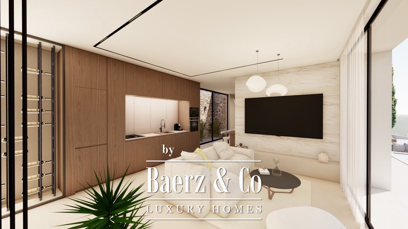 Built with reinforced concrete and featuring advanced insulation and an underground ventilation system, the villa ensures long-term durability and energy efficiency. Interior spaces include an open-plan living and dining area, expansive glass openings capturing natural light and panoramic views, and a modern kitchen with high-end appliances, wine cooler, and smart home technology. Four bathrooms complement the residence's thoughtful layout, providing functional elegance.