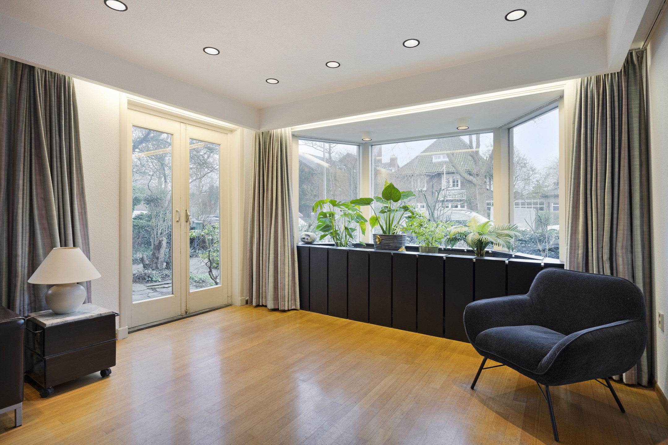Detached house Leiden embodies substantial living on Fruinlaan, one of the city's most distinctive avenues. This property offers 220 m² of living area, thoughtfully arranged over multiple levels, with a unique architectural profile and refined 1920s character. Set on a generous 358 m² plot, the home is surrounded by gardens on three sides, offering seamless transitions between indoor and outdoor spaces via several French doors and access points.