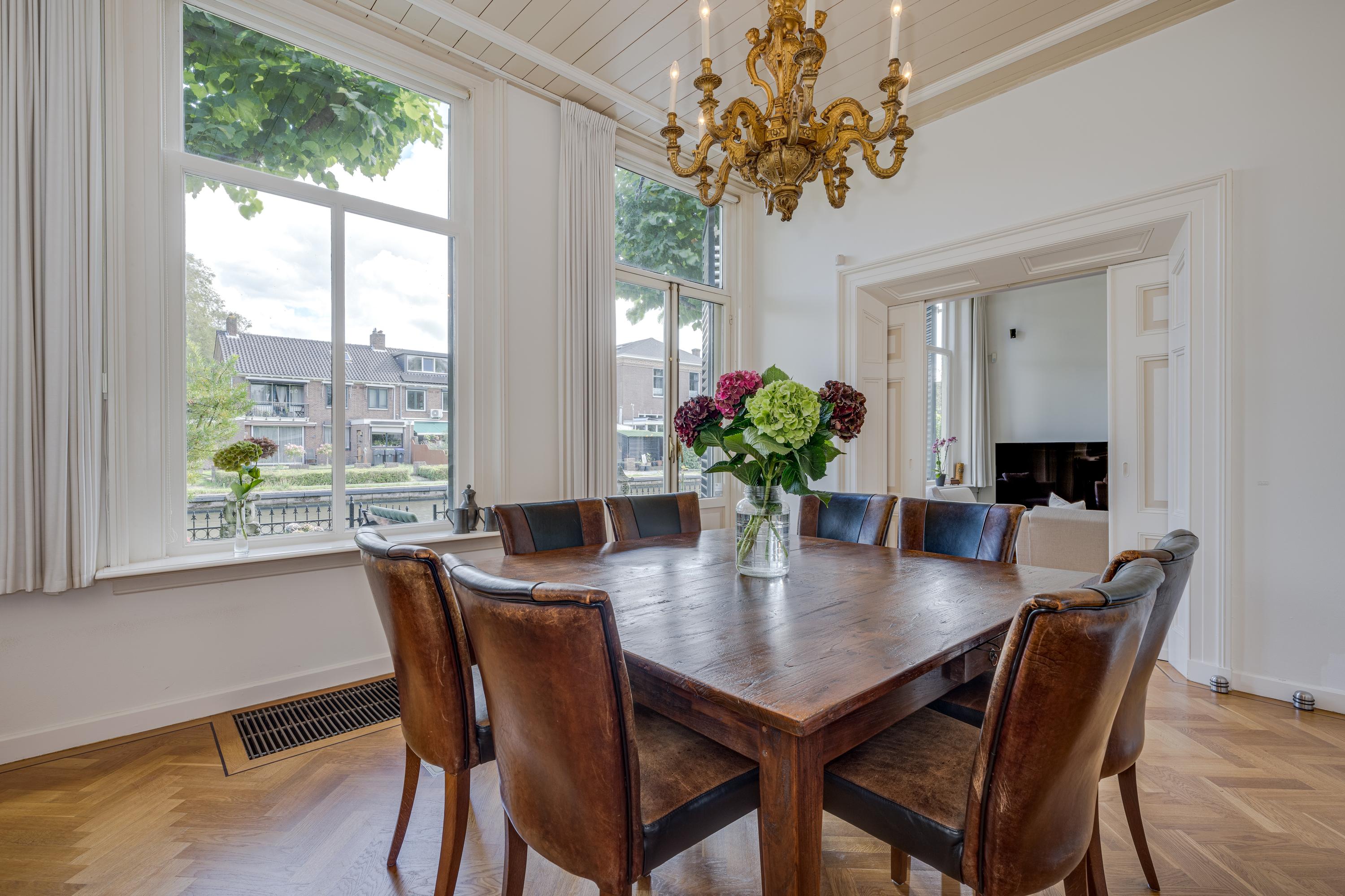 The main building from 1820 is characterised by the classic style elements from that period: a central entrance with two windows with shutters on either side and on the first floor the beginning of the roof with a central facade with three windows with shutters. The characteristics characteristic of this construction period are also present inside; high stately ceilings and windows on all sides provide beautiful light at any time of the day. On the ground floor there is an L-shaped living room en suite, fireplace with a conservatory on the garden side and a view of the Rhine on the water side. The central hall runs from front to back and has French doors to the garden with terrace on the water side. On the left side of the hall are the kitchen with utility room with a passage to the barn, the spacious basement and the formal dining room with again a beautiful view of the Rhine and the passing boats.