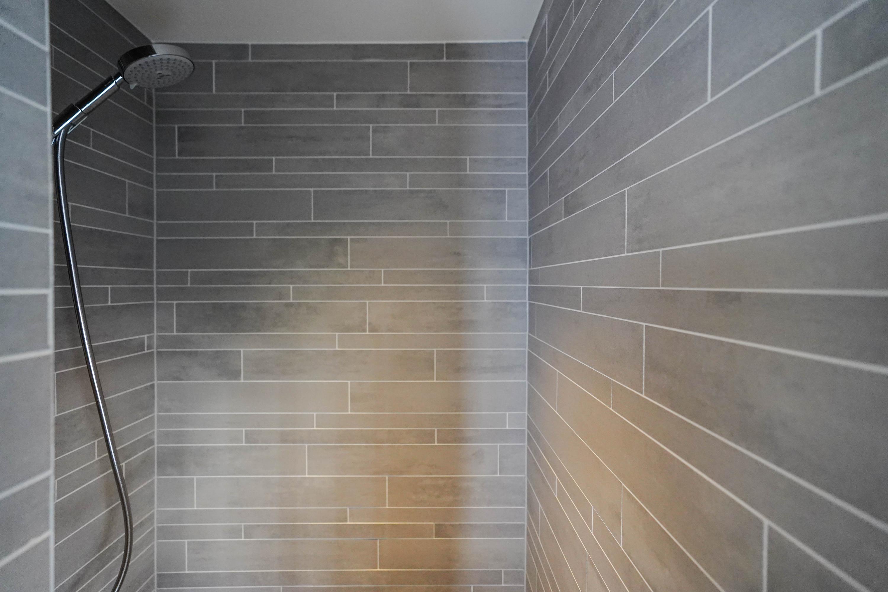Landing, bathroom with shower and toilet. At the front is a particularly spacious and attractive bedroom with a dormer window and built-in wardrobe. Here you'll also find the hatch with a loft ladder to the large attic space, where the central heating system is located, among other things. At the rear is another bedroom with a dormer window.