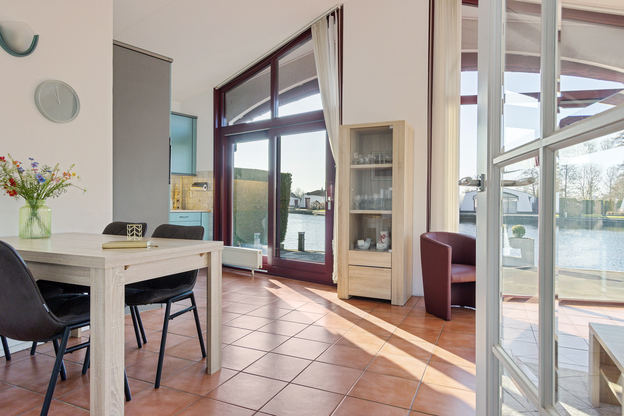 The garden is low-maintenance and features multiple terraces. Thanks to its south-facing position along the water, you benefit optimally from sunlight and natural light throughout the day. Whether you wish to enjoy a peaceful breakfast by the water in the morning or drinks in the sheltered evening sun, there is always a perfect spot to be found.