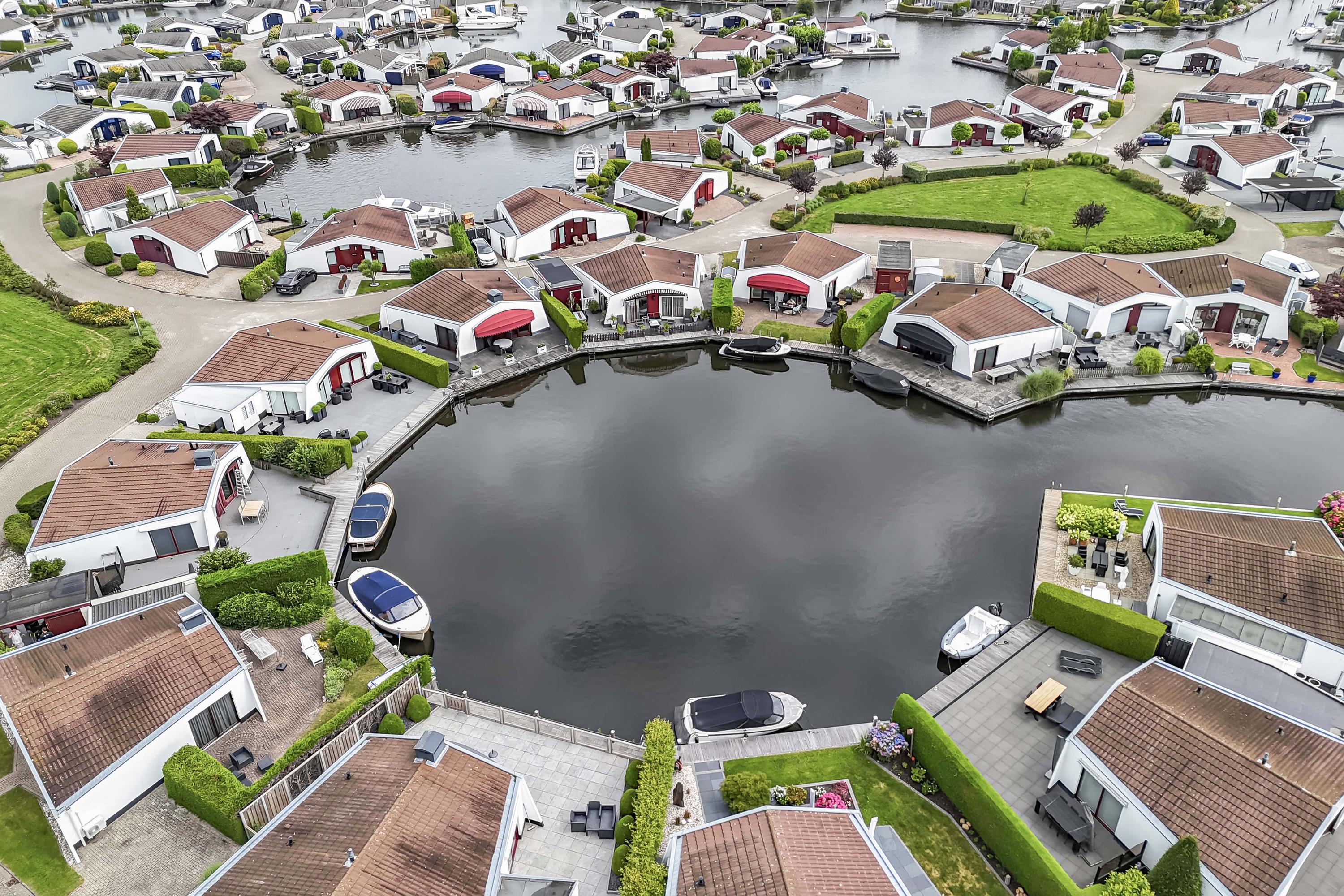 Bungalow park Aquaronde is renowned for its water-rich design, direct boating connections and the well-kept appearance of the homes and gardens. The park’s infrastructure is thoughtfully designed with quiet roads and a safe traffic layout, contributing to its family-friendly and relaxed atmosphere.