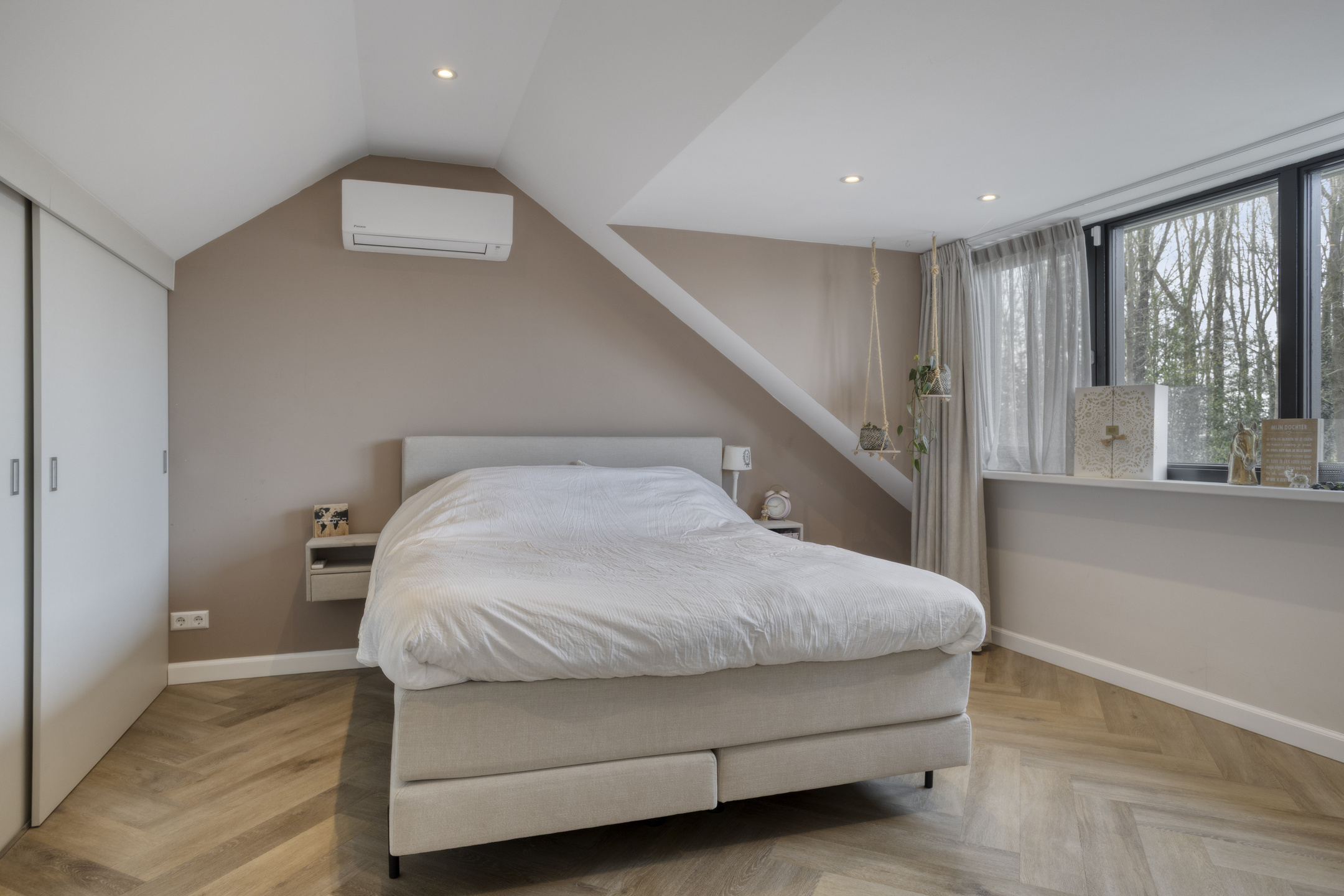 Extremely sustainable and energy-efficient (energy label A+++), this home is fully future-proof and equipped with every conceivable modern installation. Features include double wall insulation, floor and roof insulation, HR++ glazing in hardwood frames, an air-source heat pump with a 260-litre boiler tank, underfloor heating on both the ground and first floors, no fewer than 44 solar panels, and multiple air conditioning units.