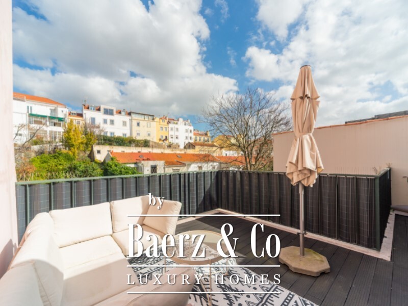 Apartment Príncipe Real Lisbon offers a refined top floor residence in one of the city’s most exclusive neighbourhoods. This large and exceptionally bright one bedroom property, spanning 80 m², occupies the upper level with lift access, creating an elevated sense of privacy and views. Sunlight moves through the space from east to west, matched by a spacious terrace and two balconies off the en-suite bedroom, inviting a luminous atmosphere throughout the day.