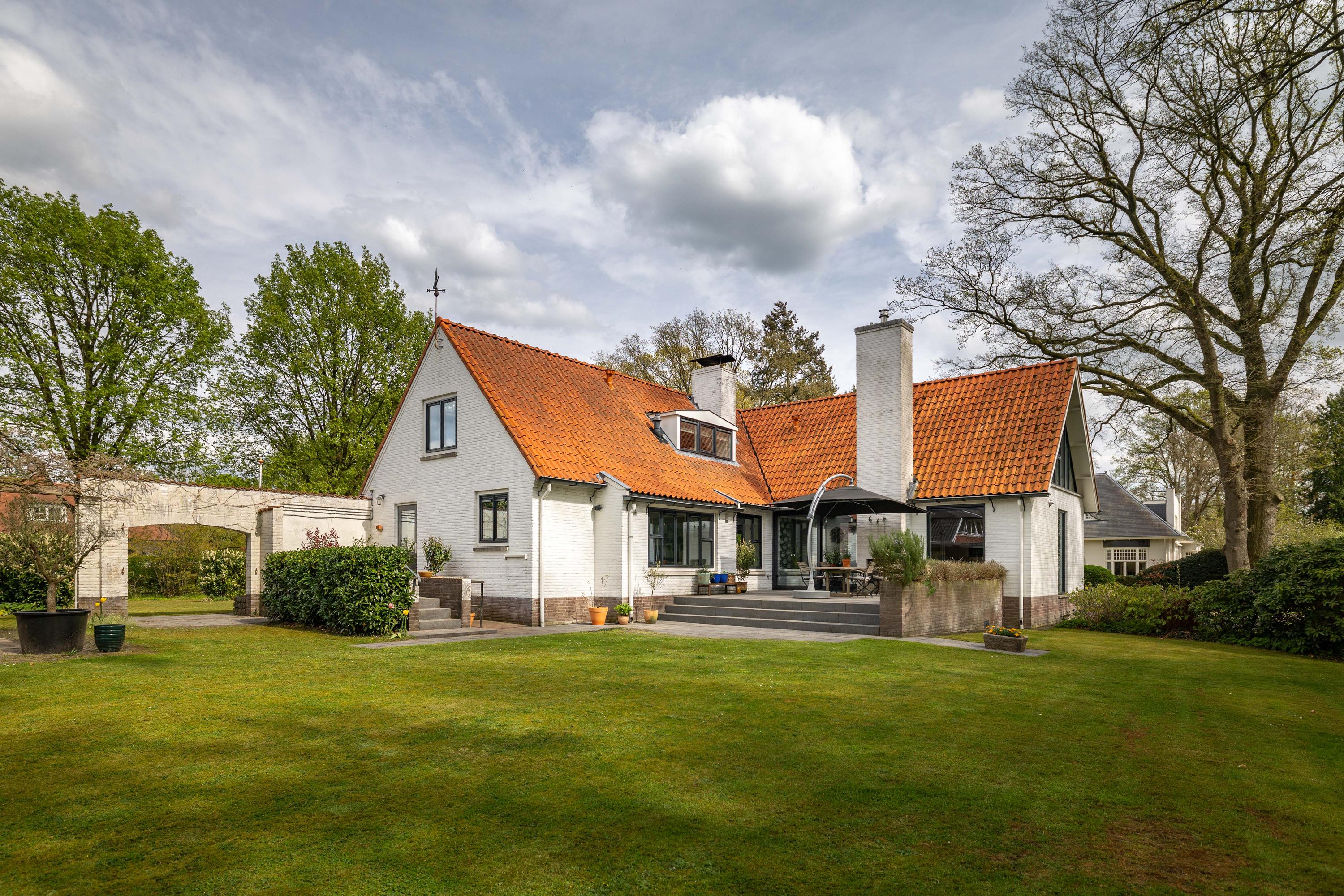 In the highly sought-after Berkeloord area, close to the Berkel river and within walking distance of the Hertenkamp, the Enk and the Lochemse Berg, you will find this impressive villa. Built in 1947, the house offers a generous living area of 215 m² and is set on a spacious plot of 1,755 m². The white façades and red tiled roof give the property a timeless, classic appearance.