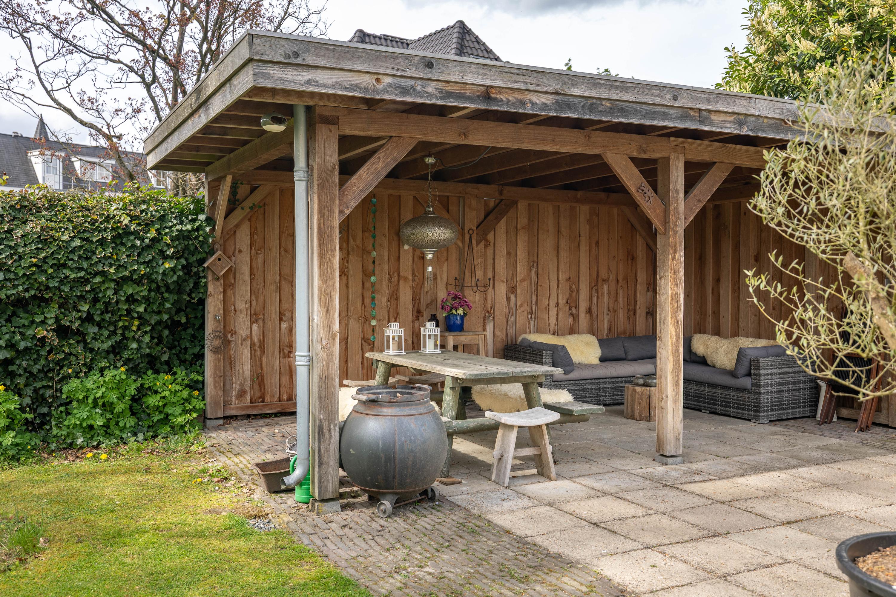The garden is a true haven. Thanks to its sheltered position and mature privet hedges, privacy is abundant. The garden design exudes tranquillity, with lawns, shrubs and two terraces (one directly adjoining the house, finished with Schellevis tiles) alternating harmoniously. Several seating areas invite you to enjoy the sun and greenery throughout the day.