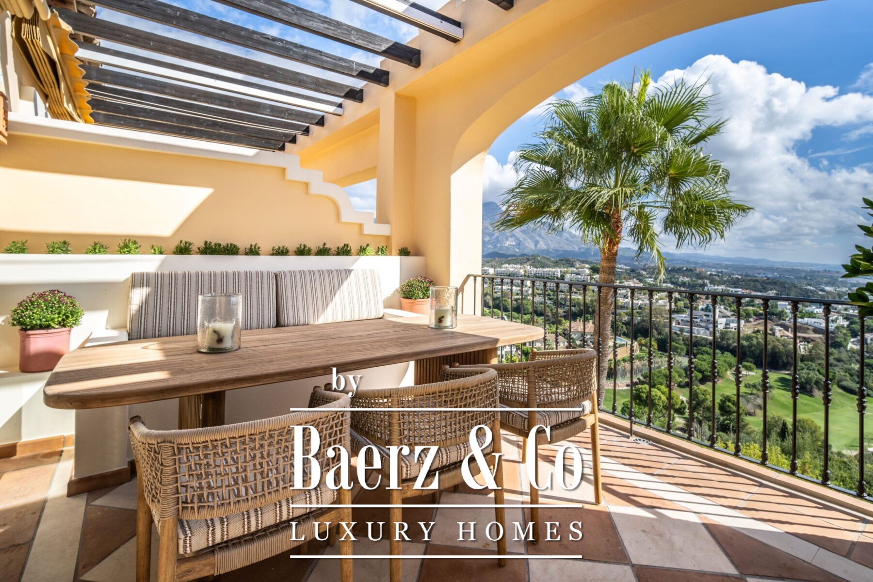 Discover the epitome of luxury living with this exceptional penthouse in La Quinta, perfectly situated to enjoy panoramic views of the sea, mountains and surrounding golf greens. This prime residence features terraces designed for all-season use, ideal for alfresco dining or relaxing in style.
