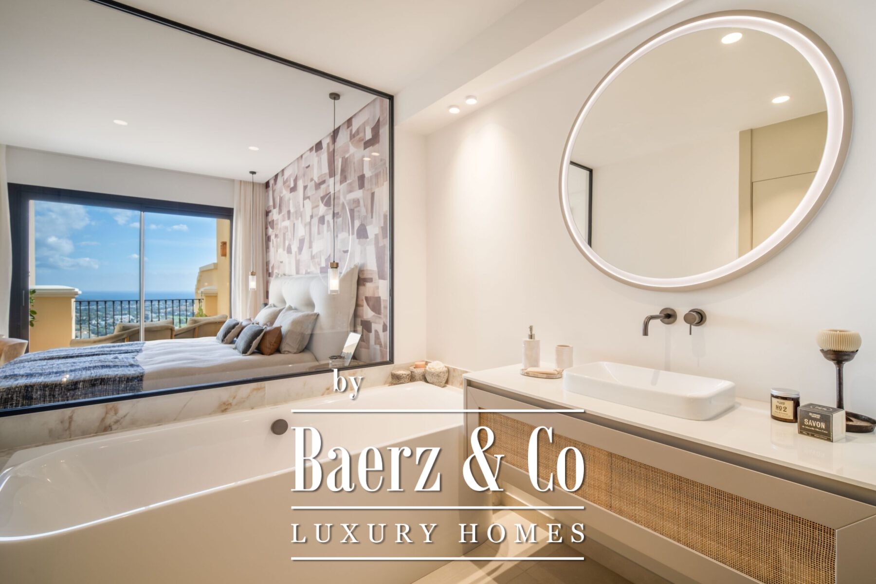 This penthouse Marbella La Quinta crowns the landscape with uninterrupted views over the sea, mountains, and emerald golf greens. Terraces invite year-round living, their orientation capturing both sunrise tranquility and the evening's gentle light, ideal for private dining or quiet retreat.