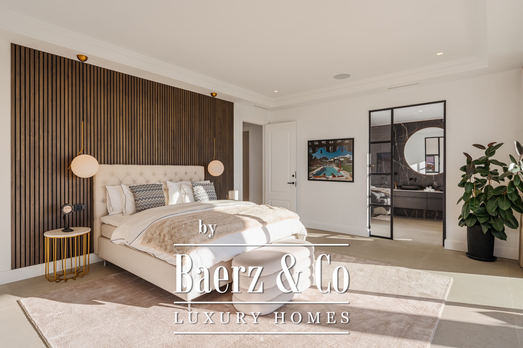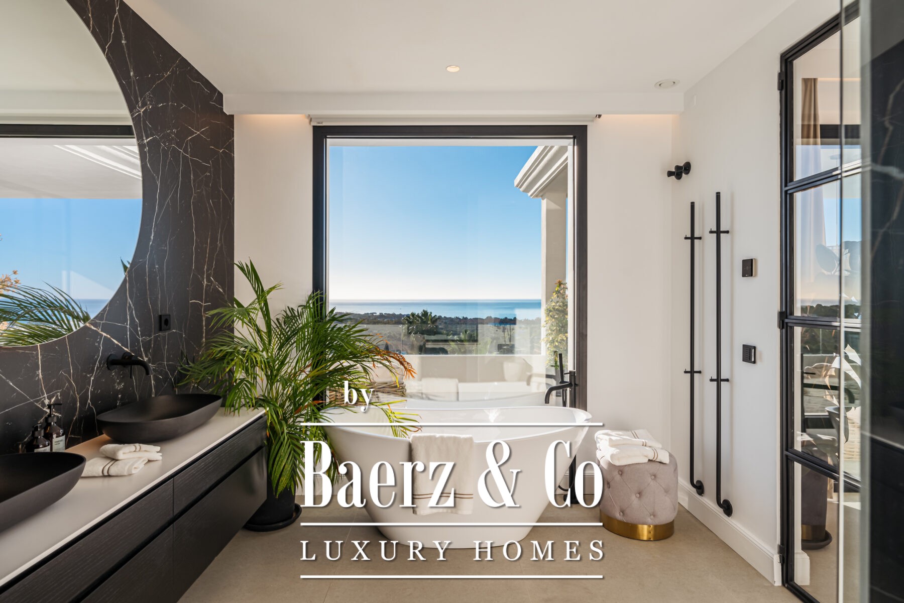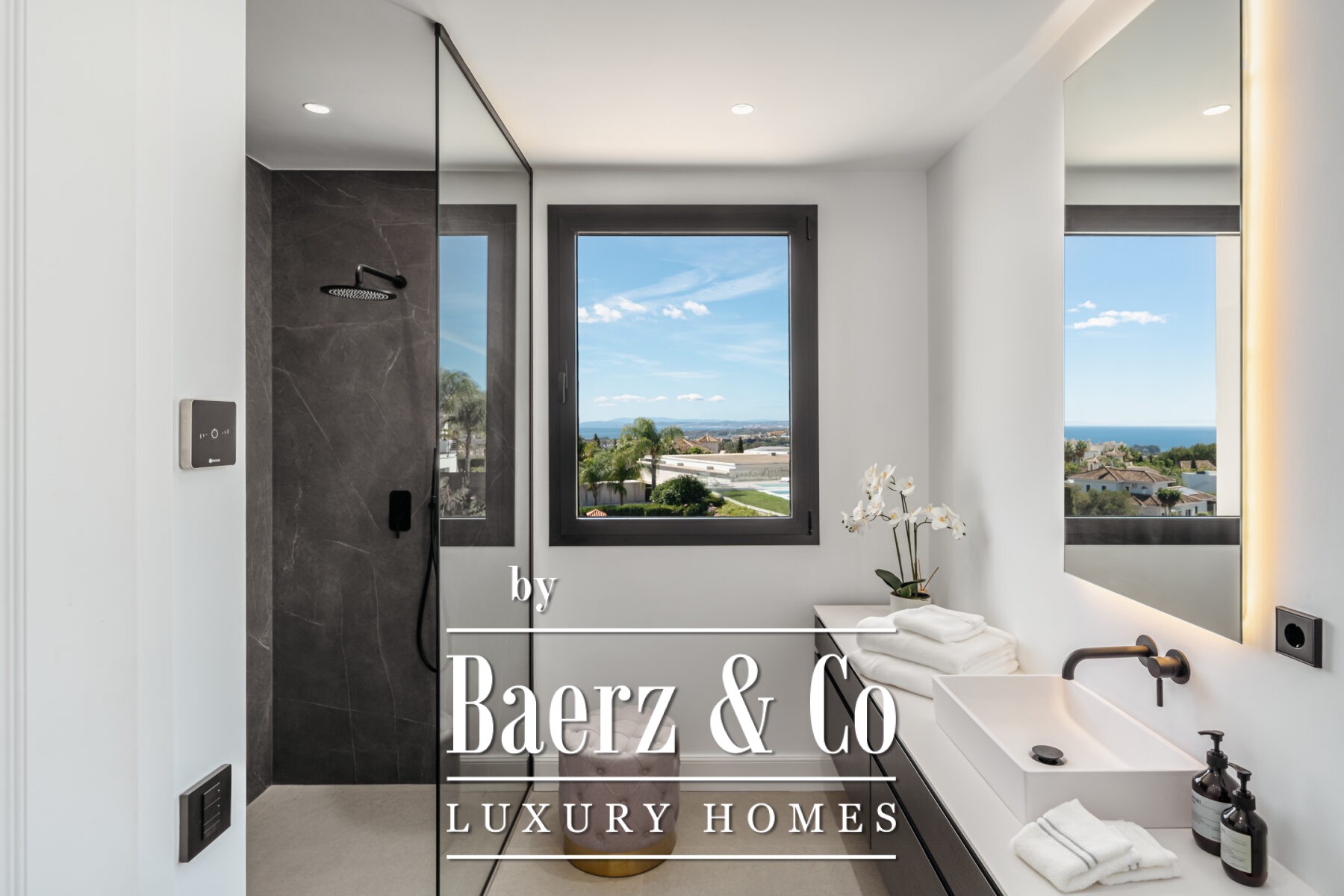 Upstairs, the master suite elevates the experience with a freestanding bathtub orientated towards the horizon, terrace access, and a generous walk-in wardrobe. Two additional en-suite bedrooms ensure absolute privacy for guests and family. On the rooftop, a plunge pool, dining spaces, and kitchen offer a vantage point over sweeping landscapes. The basement level redefines leisure with a wine cellar, cinema, gym, spa with plunge pool, laundry, and capacious garage. Amenities include advanced home automation, security, air conditioning, and proximity to Marbella’s beaches and vibrant social destinations. This luxury villa for sale in Marbella blends architectural finesse, lifestyle, and ease in every detail.