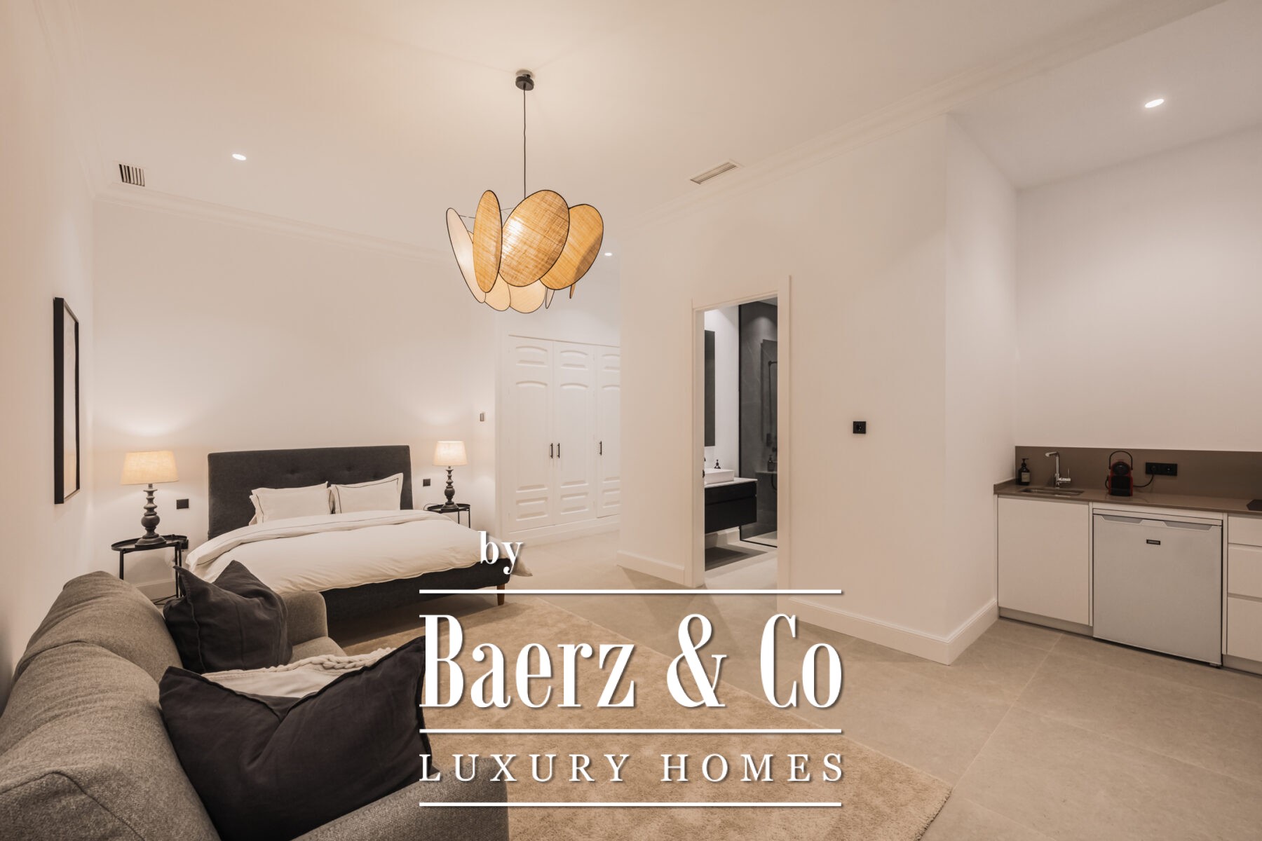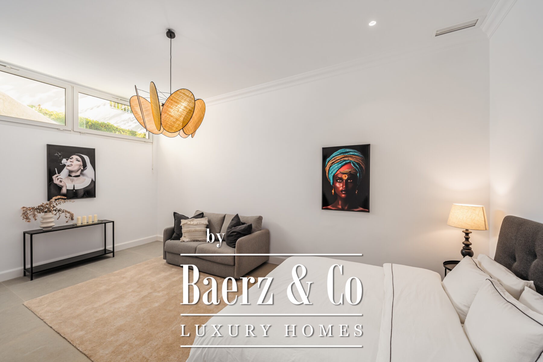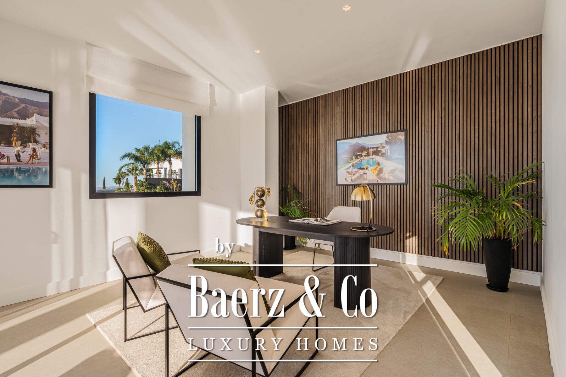 Upstairs, the master suite elevates the experience with a freestanding bathtub orientated towards the horizon, terrace access, and a generous walk-in wardrobe. Two additional en-suite bedrooms ensure absolute privacy for guests and family. On the rooftop, a plunge pool, dining spaces, and kitchen offer a vantage point over sweeping landscapes. The basement level redefines leisure with a wine cellar, cinema, gym, spa with plunge pool, laundry, and capacious garage. Amenities include advanced home automation, security, air conditioning, and proximity to Marbella’s beaches and vibrant social destinations. This luxury villa for sale in Marbella blends architectural finesse, lifestyle, and ease in every detail.