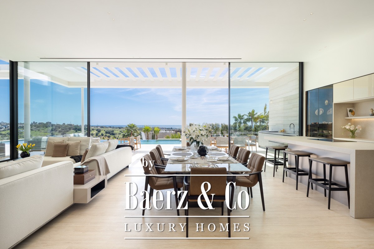 Introducing a brand-new modern villa located in the exclusive gated community of Los Flamingos, Benahavís. Set on an elevated plot, this home offers panoramic views and is part of a limited collection of four luxury properties. With its sleek geometric design and expansive terraces—partially covered for year-round enjoyment—this villa is built for stylish outdoor living. A striking zero-edge infinity pool adds to the home’s appeal, ideal for entertaining or relaxing under the sun.